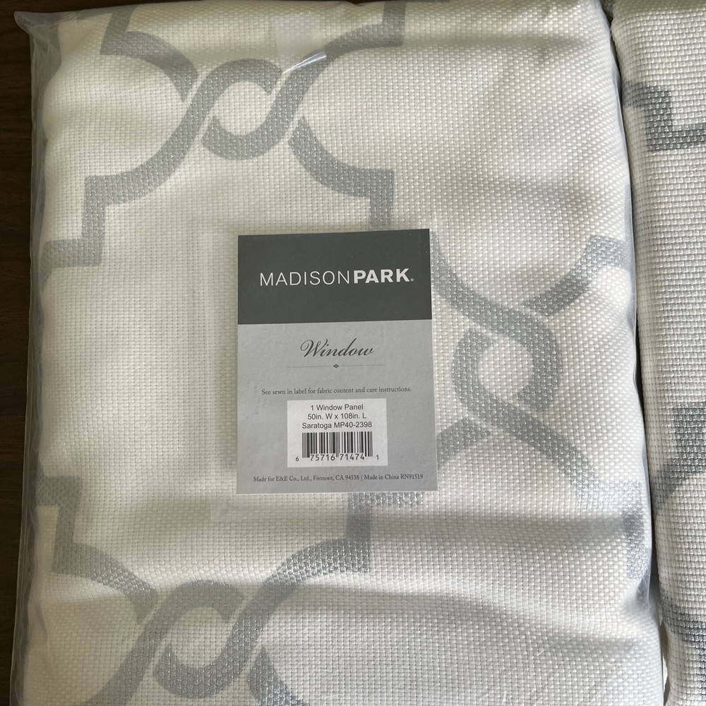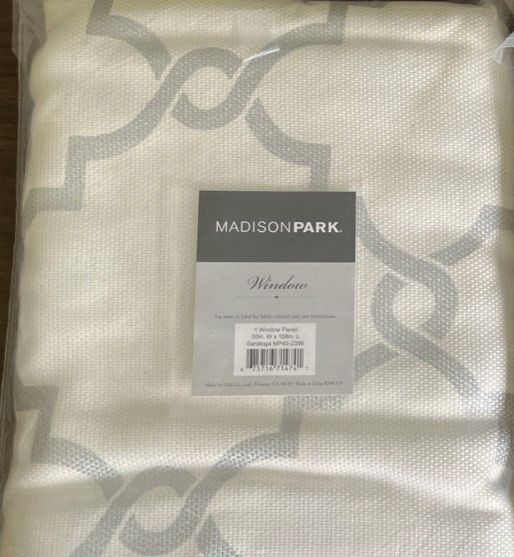 Add a touch of modern elegance to your window treatments with the Madison Park Pair, Grommet Panel Curtain. Featuring a beautiful Saratoga/geometric pattern in Ivory/Gray, these curtains are perfect for any room in your home. Measuring 50 inches each panel = 100" wide and 108 inches long, they are designed with light filtering transparency and wall mounted grommets for easy installation and maintenance. Crafted by Ellery Holdings and manufactured in 2022, these curtains are made with high-quality materials and designed to last. With a medium weight and a unit quantity of one pair, two panels, they are perfect for those who want to add a touch of sophistication to their home decor. Don't miss out on this opportunity to elevate your window treatments and create a beautiful and unique look.