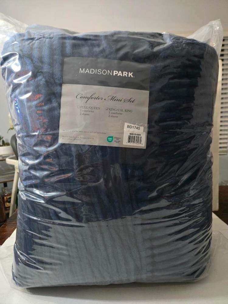Madison Park Parker Corduroy Plush Comforter Mini Set Blue King/Cal King The parker corduroy ultra soft luxury premium plush comforter mini bedding set in king/california king size, featuring a rich brown color, redefines the concept of cozy comfort and elegance in your bedroom. Brand: Madison Park Size: King / Cal King Set Includes: (104" x 90") and two king shams (20" x 36") Materials: Fabric: polyester 280 GSM, reverses to 170 GSM; polyester fill 200 grams per square meter Color: Blue Set includes: comforter (104" x 90") and two king shams (20" x 36") Wide corduroy pattern Weght: 12.1 Lbs Asian American & Pacific Islander Owned, Woman Owned Fabric: polyester 280 GSM, reverses to 170 GSM; polyester fill 200 grams per square meter Machine washable Imported Madison Park Parker Corduroy Plush King / Cal King 3-Pc Comforter Mini Set Blue Click images to enlarge Description Madison Park Parker Corduroy Plush 3-Pc Comforter Mini Set Blue King/Cal King The parker corduroy ultra soft luxury premium plush comforter mini bedding set in king/california king size, featuring a rich brown color, redefines the concept of cozy comfort and elegance in your bedroom. Brand: Madison Park Size: King / Cal King Set Includes: (104" x 90") and two king shams (20" x 36") Materials: Fabric: polyester 280 GSM, reverses to 170 GSM; polyester fill 200 grams per square meter Color: Blue Set includes: comforter (104" x 90") and two king shams (20" x 36") Wide corduroy pattern Weght: 12.1 Lbs Asian American & Pacific Islander Owned, Woman Owned Fabric: polyester 280 GSM, reverses to 170 GSM; polyester fill 200 grams per square meter Machine washable Imported Combined Shipping We charge full shipping & handling on the item with the highest shipping rate. Each additional items shipping & handling rate will be discounted 50% off. Please insert all items in the cart to show all applicable discounts. Items must be paid together to receive full discount Images sell! Get Supersized Images & Free Image Hosting Create your brand with Auctiva's Customizable Templates. Attention Sellers - Get Templates Image Hosting, Scheduling at Auctiva.com.