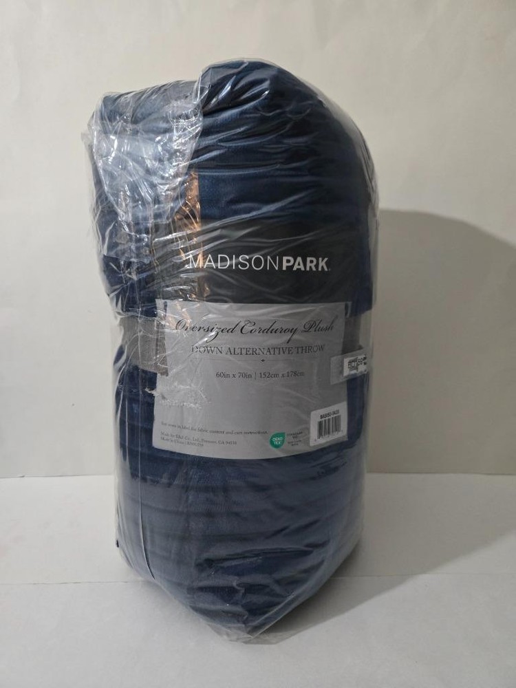 Madison Park Parker Luxury Corduroy Plush Down Alternative Throw Blue 60" x 70" This super cozy throw will keep you warm all winter. Made from an ultra soft plush and reversing to a thick Berber this throw is lofty and can be used as an additional layer for added warmth. Brand: Madison Park Dimensions: 60x70 Material: 100% Polyester Color: Blue 100% Polyester This super cozy throw will keep you warm all winter. Made from an ultra soft plush and reversing to a thick Berber this throw is lofty and can be used as an additional layer for added warmth. Set Include:1 Throw:60x70" Material Details: Face: 280gsm micro cord, solid, 100% polyester, end to end box quilting, knife edge Reverse: 170gsm microlight, solid, 100% polyester Filling: 6D brushed fiber fill, 80gsm; Package dimensions : 7.1 inches (H) x 14.6 inches (L) x 12.6 inches (W) Pattern:Solid Madison Park Parker Luxury Corduroy Plush Down Alternative Throw Blue 60" x 70" Click images to enlarge Description Madison Park Parker Luxury Corduroy Plush Down Alternative Throw Blue 60x70 This super cozy throw will keep you warm all winter. Made from an ultra soft plush and reversing to a thick Berber this throw is lofty and can be used as an additional layer for added warmth. Brand: Madison Park Dimensions: 60x70 Material: 100% Polyester Color: Blue 100% Polyester This super cozy throw will keep you warm all winter. Made from an ultra soft plush and reversing to a thick Berber this throw is lofty and can be used as an additional layer for added warmth. Set Include:1 Throw:60x70" Material Details: Face: 280gsm micro cord, solid, 100% polyester, end to end box quilting, knife edge Reverse: 170gsm microlight, solid, 100% polyester Filling: 6D brushed fiber fill, 80gsm; Package dimensions : 7.1 inches (H) x 14.6 inches (L) x 12.6 inches (W) Pattern:Solid Combined Shipping We charge full shipping & handling on the item with the highest shipping rate. Each additional items shipping & handling rate will be discounted 50% off. Please insert all items in the cart to show all applicable discounts. Items must be paid together to receive full discount Images sell! Get Supersized Images & Free Image Hosting Create your brand with Auctiva's Customizable Templates. Attention Sellers - Get Templates Image Hosting, Scheduling at Auctiva.com.