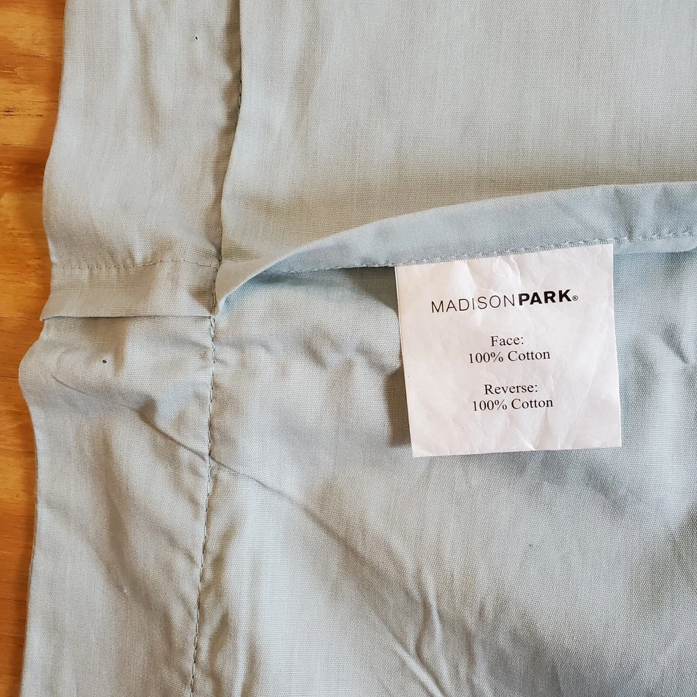 Add a touch of elegance to your bedroom with the Madison Park Pillow Sham Cases. These rectangular shams are made of 100% cotton with a solid pale blue color and white border. The shams are designed to fit a king size pillow and have a size of 20 inches in length and 30 inches in width. The pillow shams are machine washable and easy to care for. They are part of the Madison Park product line and have a cottage style. Made in Pakistan, the pillow shams are suitable for adults and perfect for your bedroom. J