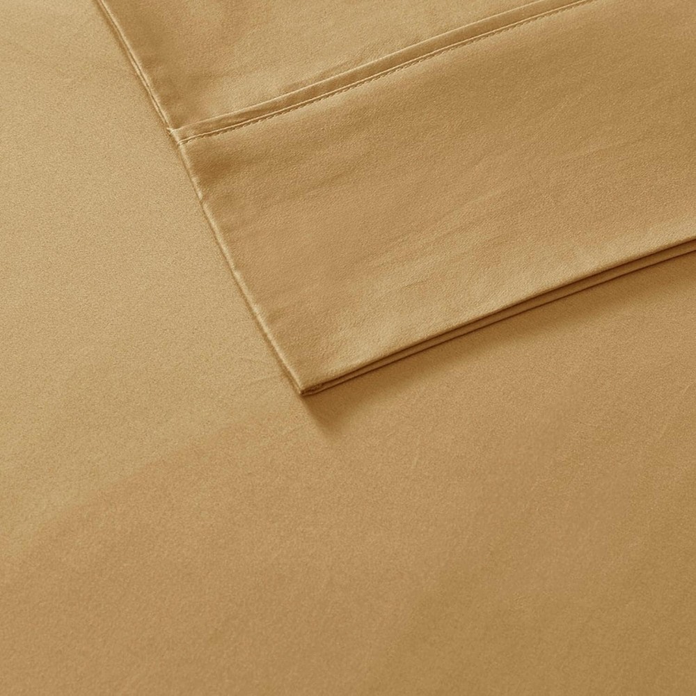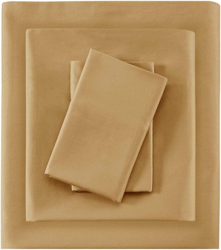 Size 110x104 Material Cotton Color Gold Pattern Solid Brand Madison Park About this item 100% Pima Cotton Give your bedroom a bold and fresh look with this bedding set. This silky, soft sheet offer a restful sleeping experience submerged in luxurious fabrics and colors. Give your bedroom the attention that it deserves with this bedding set. This bedding set enhance the beauty and functionality of your bedroom.FeaturesStyle: Casual Color: Gold Material: 100% Pima Cotton 600TC Sateen Product Size: Split King:110x104"/20x40"(4)/38x80+15"(2)