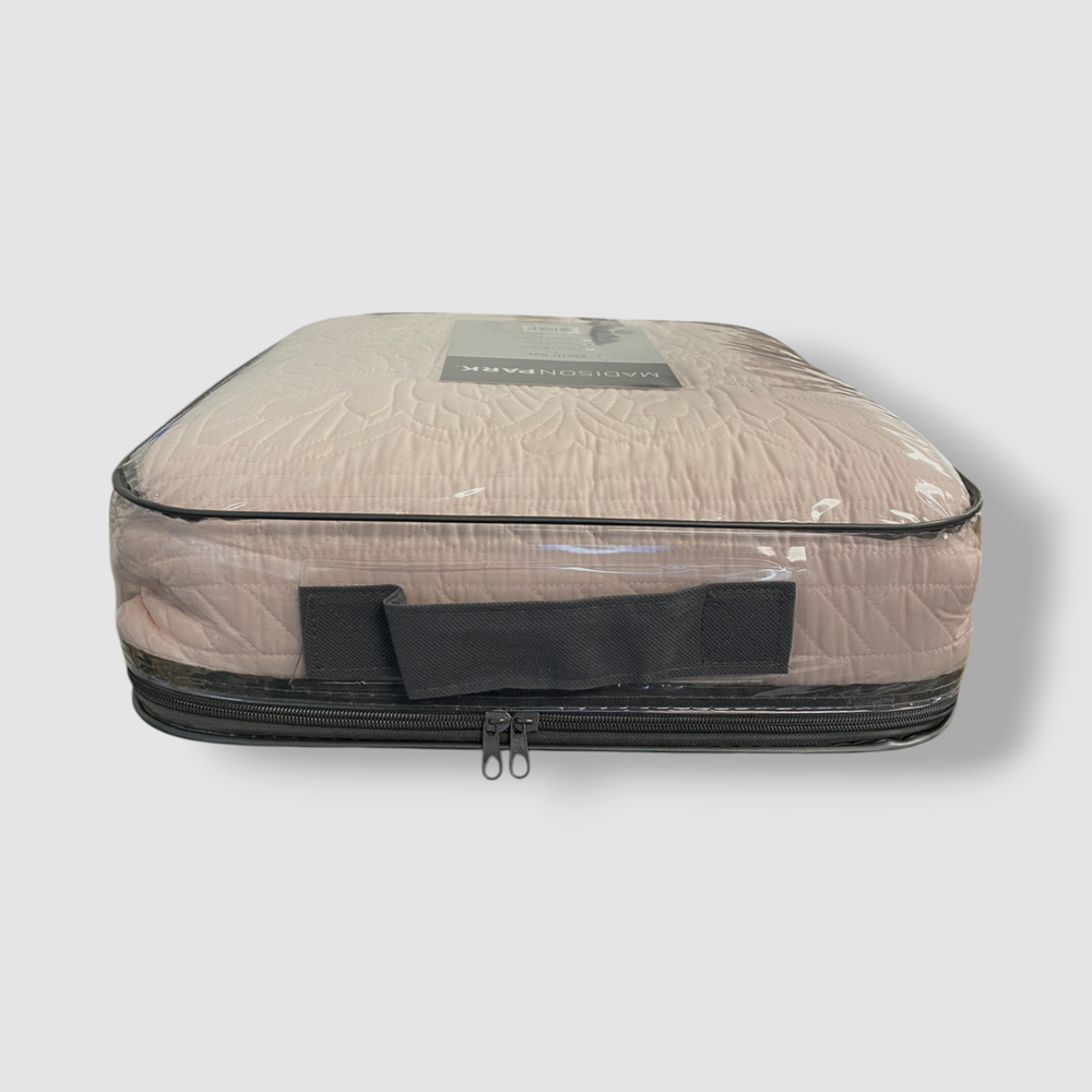 Madison Park Pink Blush Tuscany 3-Piece Coverlet Full/Queen Size Set. Description coverlet, 2 standard shams coverlet:94" x 96", standard sham (2):20" x 26" Microfiber from polyester; Coverlet fill: cotton, polyester Machine Washable, Spot Clean Pillows Imported About Us We sell only 100% authentic clothing from new with tags to gently used. We have a 100% authentic or money back guarantee on every item we sell. Items are listed daily so make sure to put us on your favorite! We have been in business for over 10 years selling tens of thousands of designer items. We strive to meet your designer needs at a quality price! Payment Shipping Returns Payment accepted via paypal, credit/debit card. Shipping is usually within 24 hours of purchase (M-F). Super fast service. Tracked delivery. 100% satisfaction guaranteed. Please review our eBay return policy for more details.