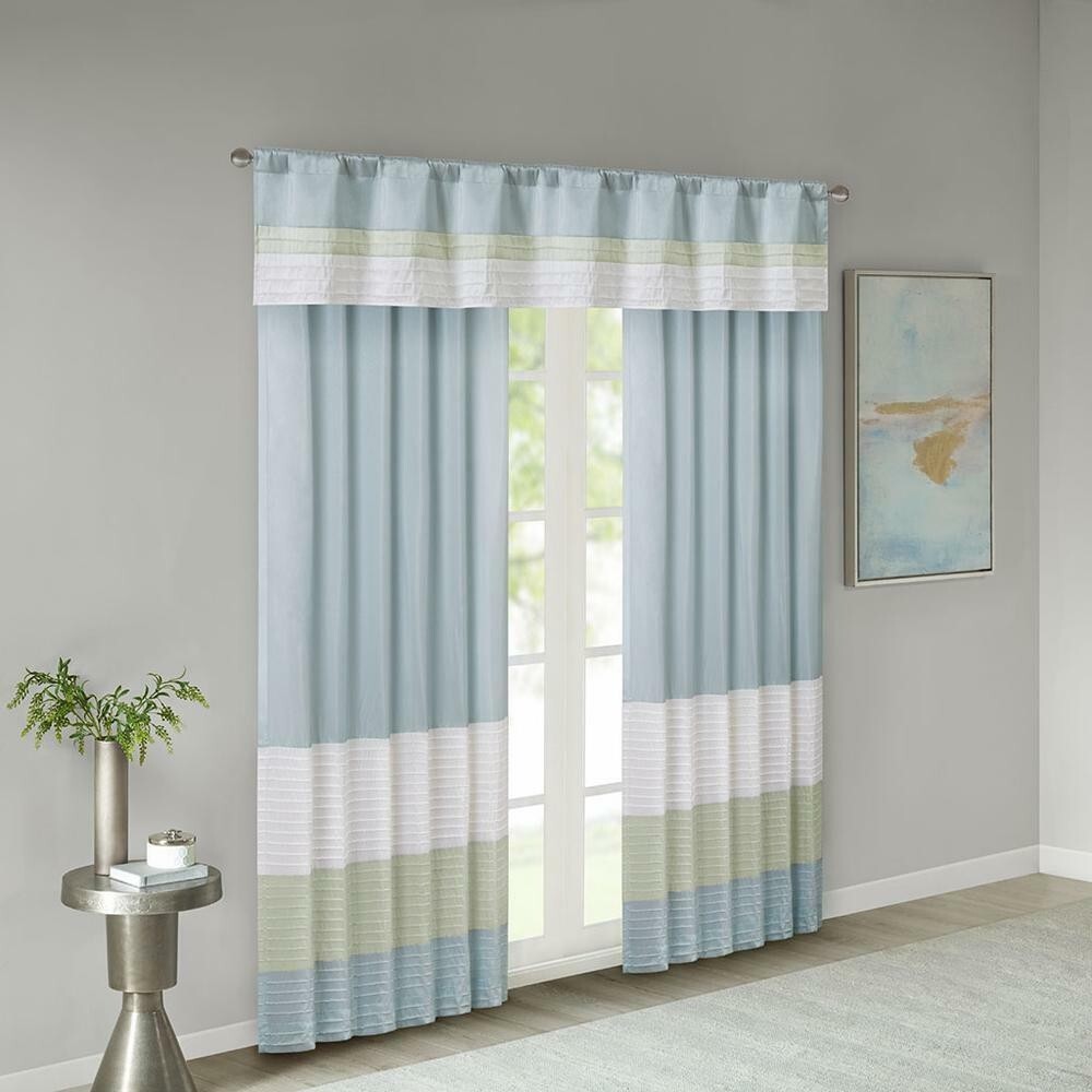 MADISON PARK AMHERST SINGLE PANEL FAUX SILK ROAD POCKET CURTAIN New received from Macy's, but was not in original packaging but in a plastic bag. Excellent Condition FEATURES 50'' x 84'' Color block design Pintuck detailing Rod pocket or back tabs Fits up to 1.25-inch diameter rod Fully lined GENERAL INFORMATION Polyester polyoni Polyester lining Machine wash Number of Panels: 1 Features: Energy Saving Top Construction: Rod Pocket Top Opening: 3" Rod Pocket Fabric Content: 100% Polyester Fabric Description: Microfiber Lining: Fully Lined Lining Material: Polyester Light Filtration: Light-Filtering Care: Machine Wash NOTE: I always try to be as accurate in details as possible. However, colors may appear slightly different as because computer monitors are set differently. The true color of these curtains are a seafoam green, light lime green and ivory, not white. The panel also has a light shimmer as in a semi-satin material. When I tried to take pictures of the panels, it also turned out blue as the stock pictures show and no matter how I adjusted the colors/lightness it still turned out blow. So I posted color swatches as close to the colors as possible. Again, it depends on your monitor settings. If you have any questions, please don't hesitate to contact me. FEEDBACK Your Satisfaction Is My #1 Priority! If you are satisfied with your item, please provide positive feedback. But, if you are not fully happy with with the item you received, such as item damaged during shipping, delayed delivery, etc. PLEASE CONTACT ME FIRST before leaving feedback and we will work together to resolve the problem. Thank You! Tina