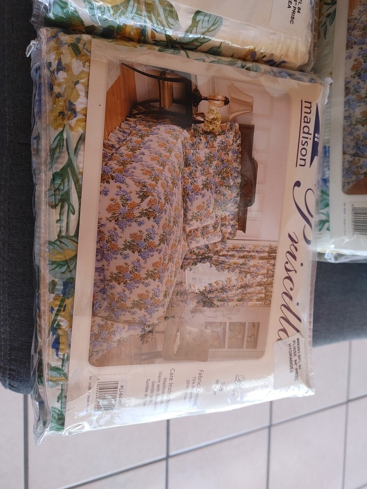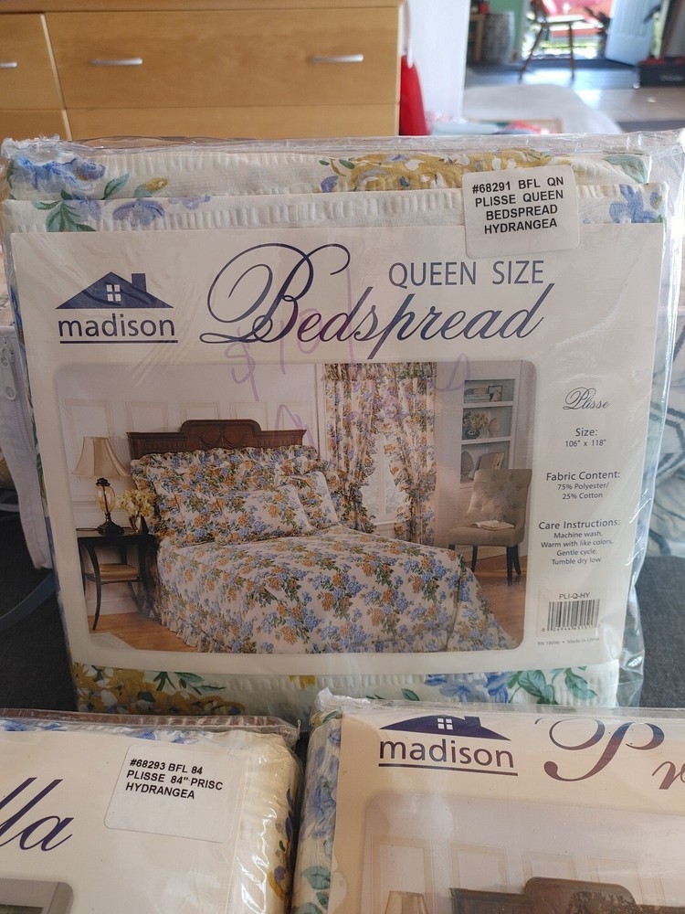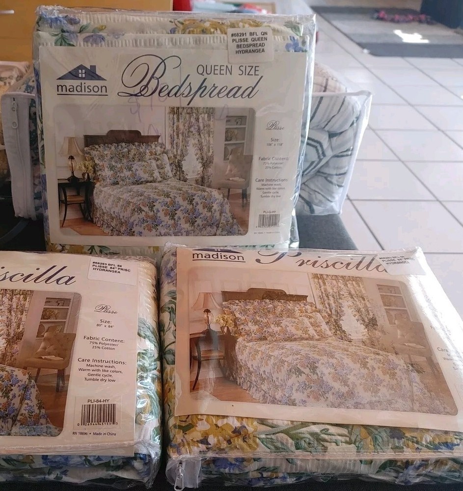 Madison Park Priscilla Plisse Queen 106x118" Bedspread And 2/80x84" Curtains Vintage PLEASE LOOK AT ALL PICTURES SMOKE FREE HOME ASK QUESTIONS