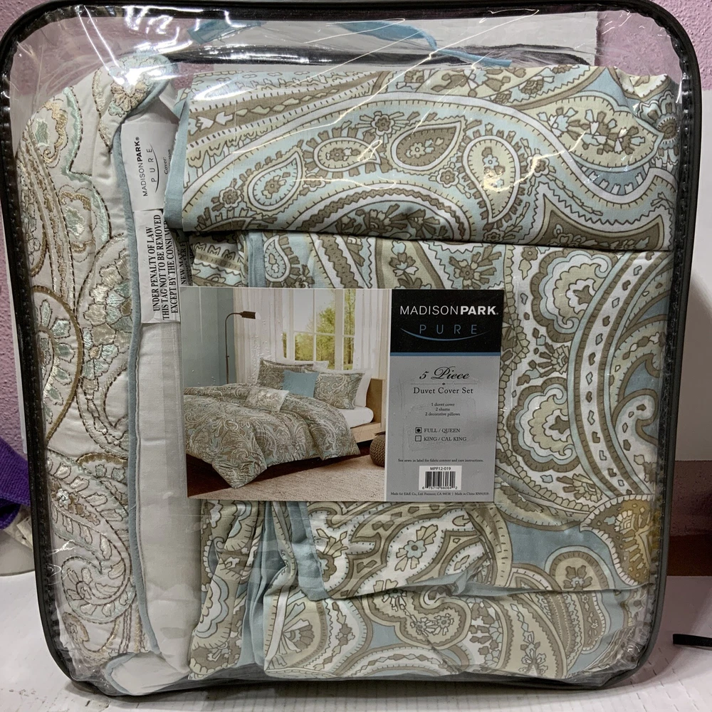 SM📀 Madison Park Pure : 5 Piece Duvet Cover Set (Full/Queen)- Blue. Shipped with USPS Priority Mail. ??any offer please let us know we offer you 5% discount please let us know before buy it???thank