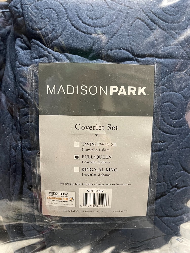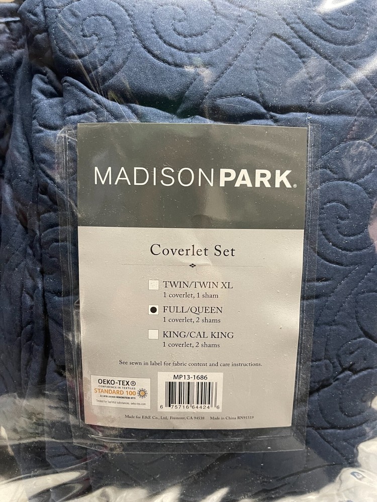 Madison Park Quebec 3 Piece Coverlet Set, Full/Queen, Navy Blue New Brand: Madison Park Color: Navy Blue Size: Full/Queen New