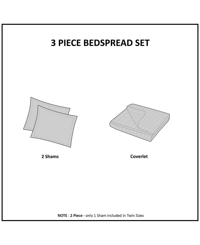 Quebec is the perfect coverlet to use as a layering piece or an alternative to your comforter for a new solid look. The classic stitch pattern pairs easily with your existing décor and will be sure to add a new decorative element to your bedroom. The coverlet has 100% cotton fill and the face and the reverse of the coverlet are a super soft brushed fabric. Set includes: 1 coverlet and 2 king shams. Dimensions: coverlet 104" x 94", king shams 20" x 36" Madison Park Quebec 3-Piece Coverlet Set Retail Price $240.00 On Sale Now $ 40.00 #Madison Park, #Comforter, #King/California King, #Sale Quebec is the perfect coverlet to use as a layering piece or an alternative to your comforter for a new solid look. The classic stitch pattern pairs easily with your existing décor and will be sure to add a new decorative element to your bedroom. The coverlet has 100% cotton fill and the face and the reverse of the coverlet are a super soft brushed fabric. Set includes: 1 coverlet and 2 king shams. Dimensions: coverlet 104" x 94", king shams 20" x 36" 100% Authentic - New with tags Color: Blue Size: King/California King Fabric Composition: 100% Polyester, with cotton fill Number: MP13-367 Origin: China Care: Machine wash