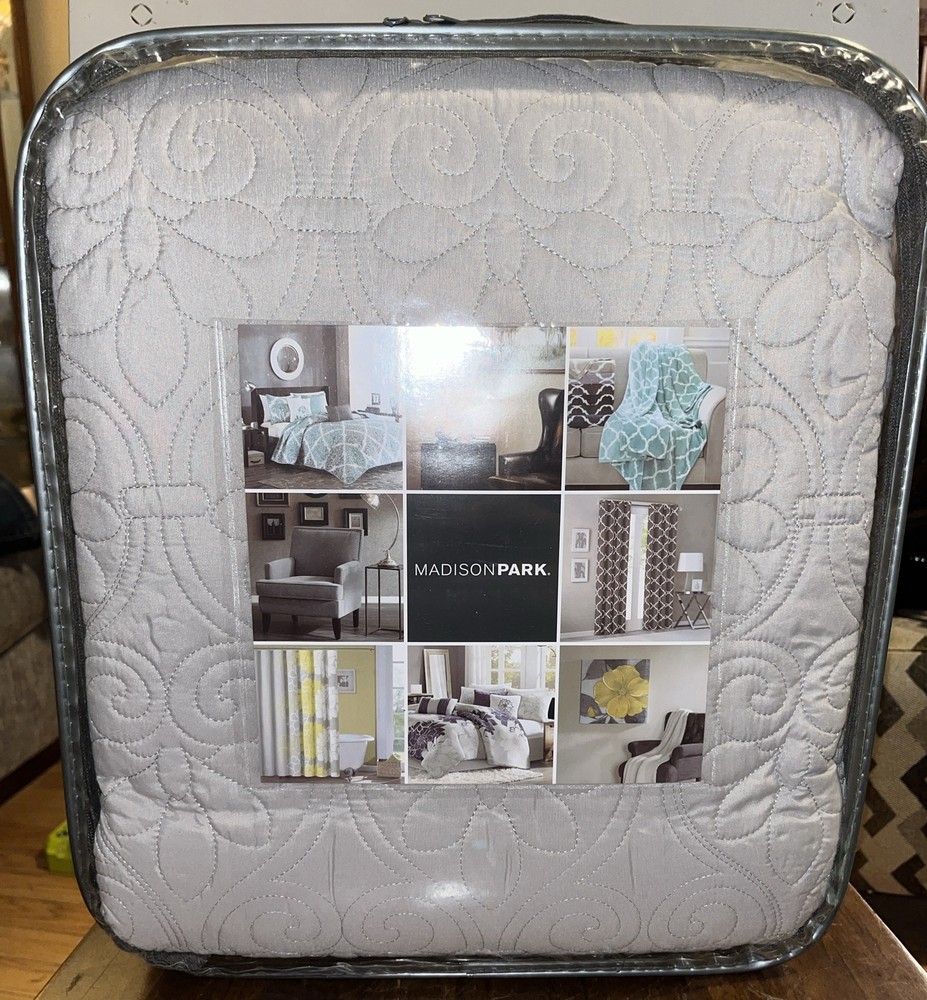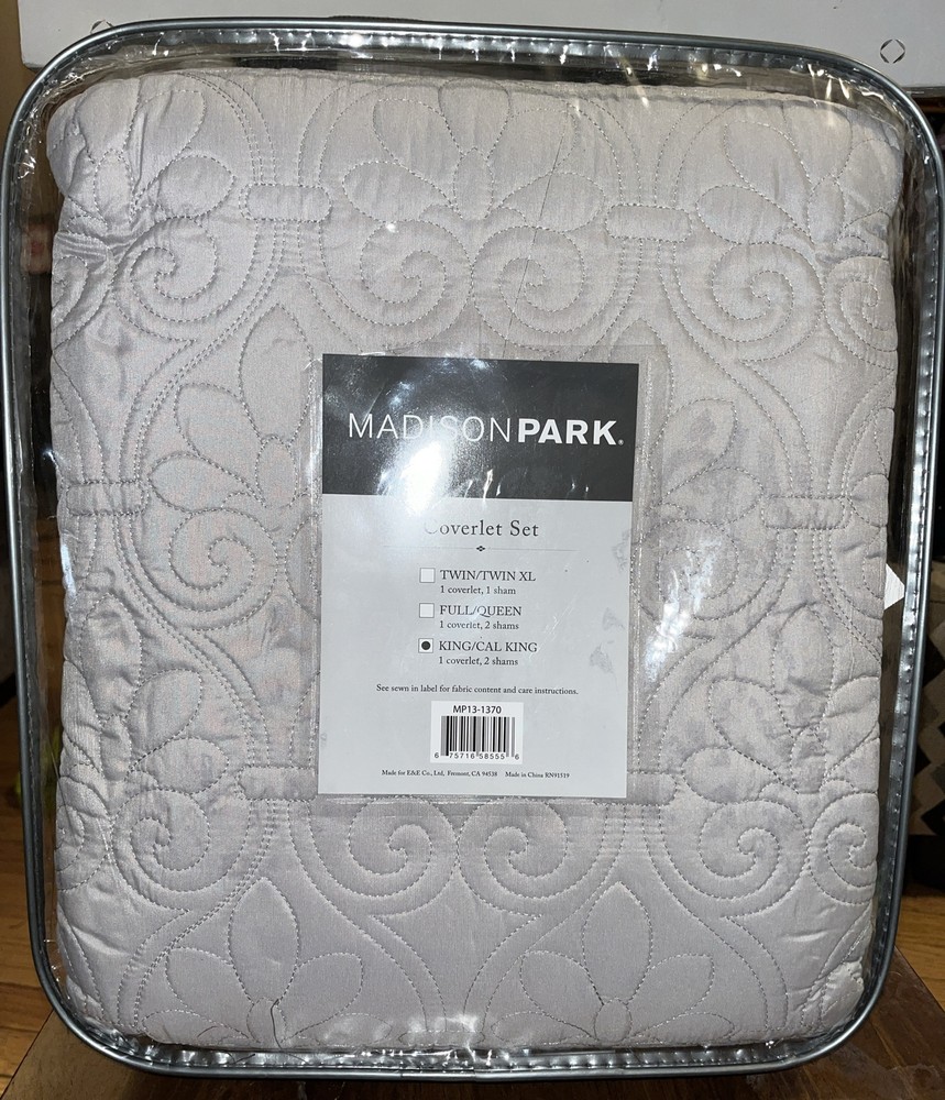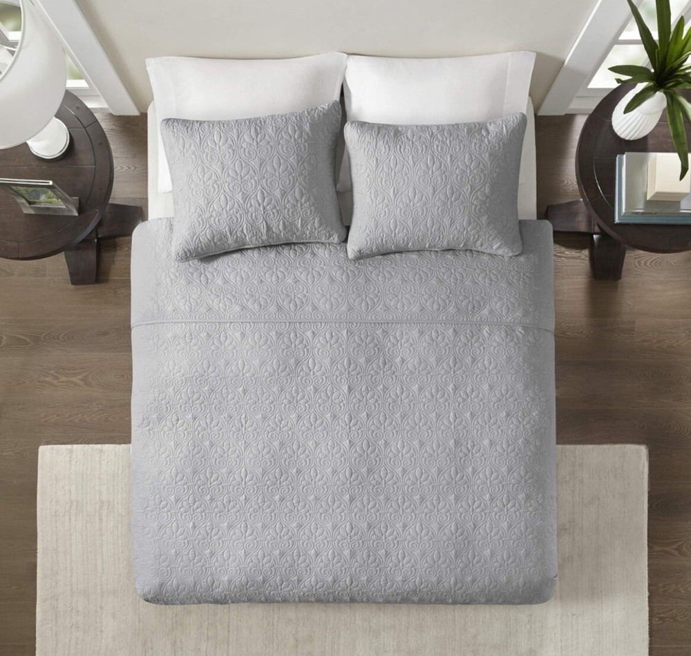 Introducing the Madison Park Quebec 3-piece Coverlet Set in the luxurious shade of Grey. This set is designed to add a modern touch to your bedroom decor. The set includes a King/California King sized coverlet and two matching pillow shams. Crafted from a blend of high-quality Polyester and Cotton, the coverlet features a solid pattern with a comfortable cotton fill. The coverlet is machine washable, making it easy to maintain and care for. Its modern style and luxury theme make it a perfect addition to any bedroom.