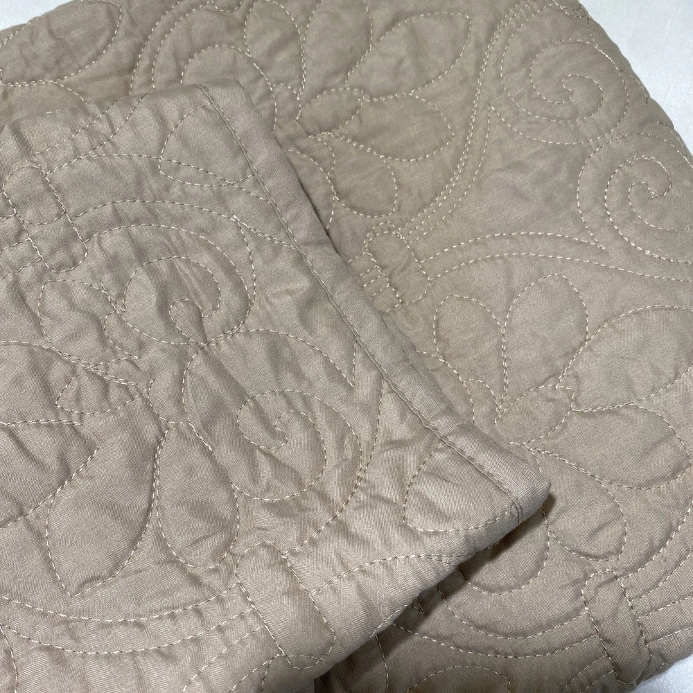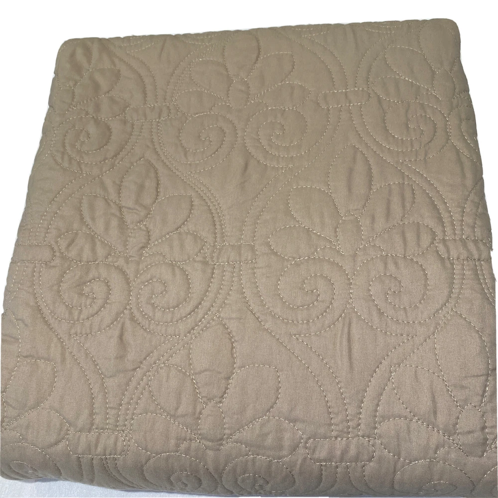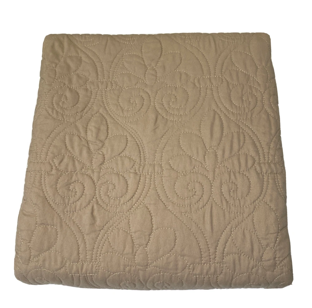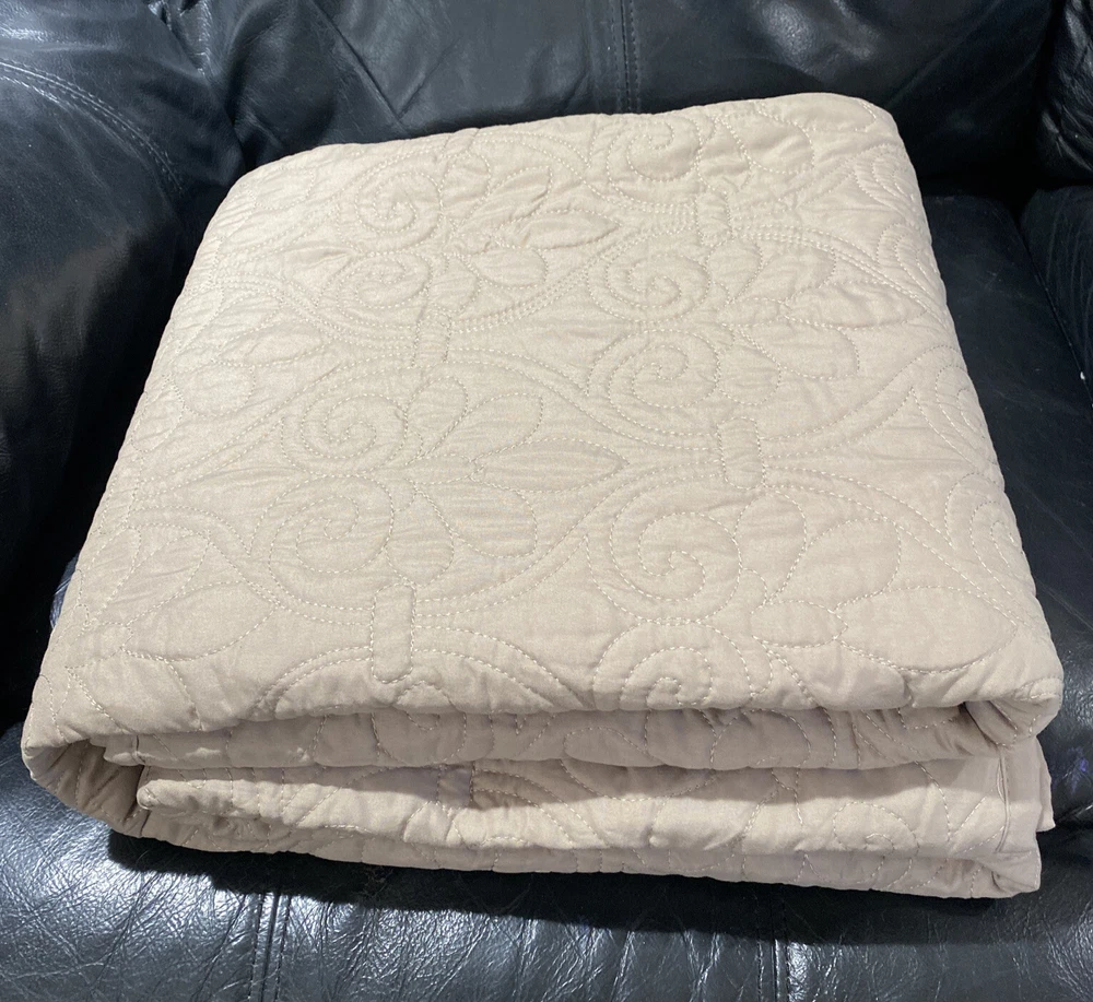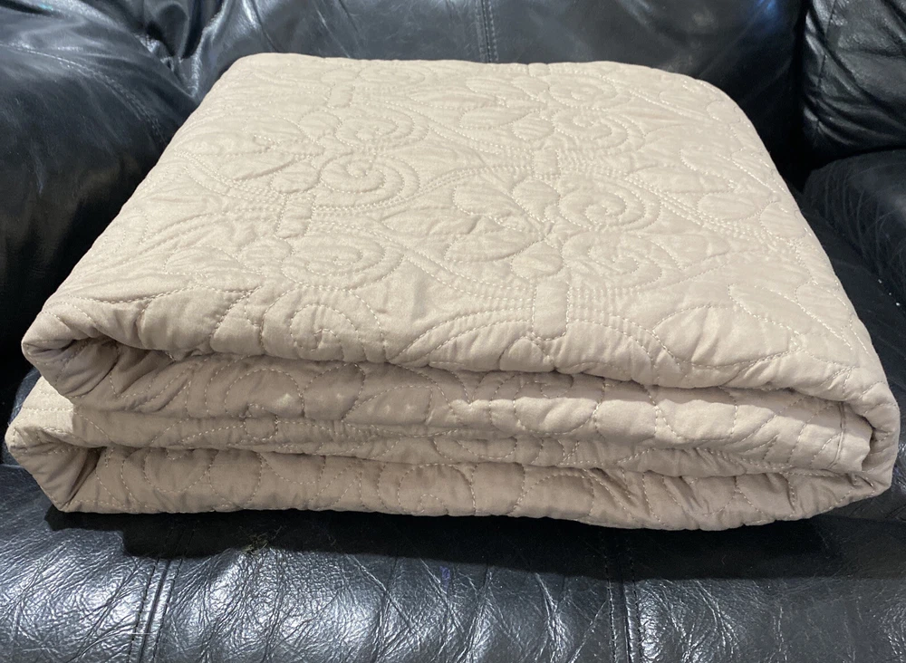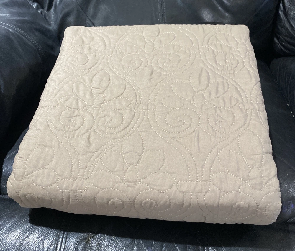 Madison Park Quebec Khaki Beige Polyester Quilted Oversized Throw "Quebec" classic stitch pattern Super soft throw features 90% Cotton fill Dimensions: 60" x 70" Face and Reverse: 100% polyester microfiber quilted Filling: cotton 200gsm Pre-wash finish Machine wash/dry MSRP: $70 Condition: New, never used without original packaging.