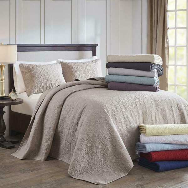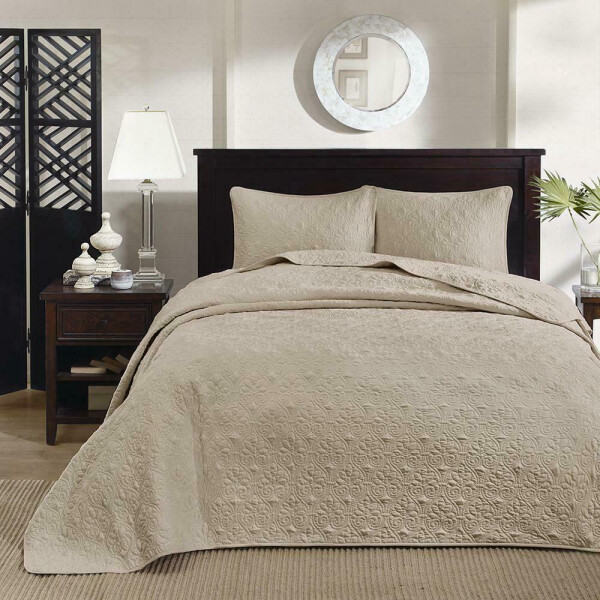 MADISON PARK - QUEBEC KING SIZE BEDSPREAD SET Color: BEIGE Retail: 220 Description Madison Park Quebec King Size BEDSPREAD BEIGE COLOR INCLUDES BEDSPREAD AND TWO KING SIZE PILOWSHAMS Quebec is the perfect bedspread to use as a layering piece or an alternative to your comforter for a new solid lookThe classic stitch pattern pairs easily with your existing décor and will sure to add a new decorative element to your bedroomThe bedspread has 100% cotton fill while the face and reverse are a super soft brushed fabric. Set Include: 1 Bedspread: 120x118 2 King shams: 20x36(2) Material Details: 100% polyester microfiber, all over quilting, 100% brushed polyester reverse, 90% cotton 10% other fibers 240gsm filling The bedspread has 100% cotton fill while the face and reverse are a super soft brushed fabric The classic stitch pattern pairs easily with your existing decor and will sure to add a new decorative element to your bedroom Materials: 100% POLYESTER Shipping to Hawaii, Puerto Rico and Alaska is not free. We offer a 30 days refund policy only if the items sold are found to be incorrectly described. We are not responsible for pictures showing incorrectly on your monitor. The refunds will only be made if the following return guidelines are followed: The item must be returned in all the original packaging, including cartons, boxes and must not have been cleaned or laundered. All returns must be boxed and packed securely for shipping. Refunds are within 30 days from the day the customer received the original item. We will send you a prepaid label to send the item back. If the item is found to be as described you will receive a refund of your winning bid minus shipping both ways and a 20% restocking fee. We may except returns that do not qualify under our return policy. These returns will only be accepted at our discretion and a restocking fee may apply. Refund will be made within 5 days of getting the item back.