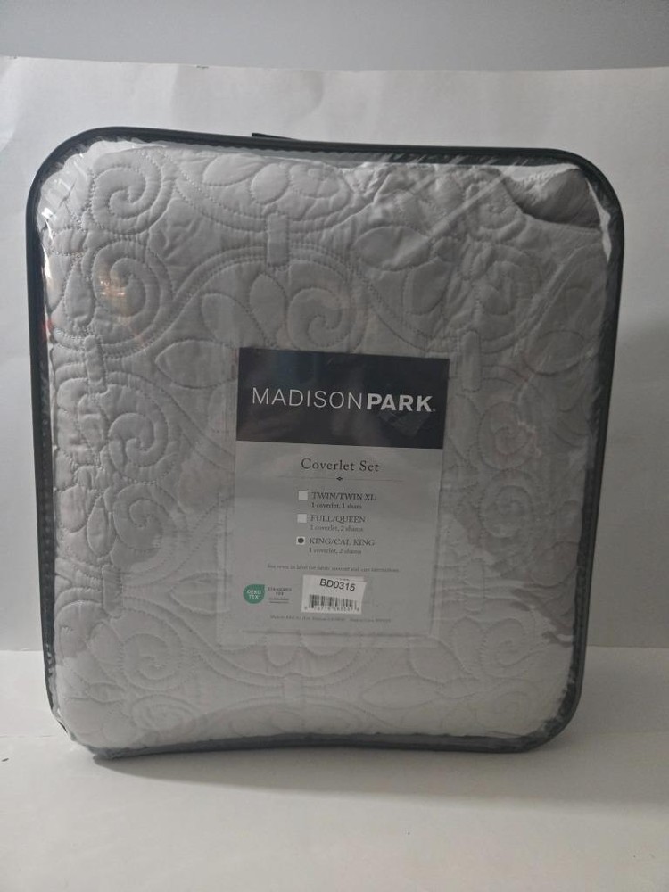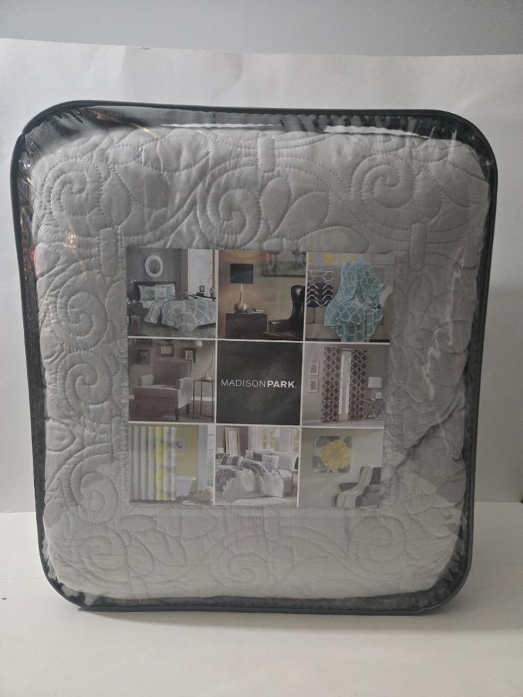 Madison Park Quebec King/Cal King Gray Coverlet Mini Set Quebec is the perfect coverlet to use as a layering piece or an alternative to your comforter for a new solid look. The classic stitch pattern pairs easily with your existing decor and will sure to add a new decorative element to your bedroom. The coverlet has 100% cotton fill and the face and the reverse of the coverlet are a super soft brushed fabric. Brand: Madison Park Size: King/California King Set Includes: 1 Coverlet (104" x 94"), 2 King Shams (20" x 36") Material: Polyester Microfiber Color: Gray Condition: Classic Life Style 100% Polyester Microfiber, Quilted , Prewash Finish, 19% Cotton/81% Polyester Filling 2 King Shams:20x36" (2) 1 Coverlet:104x94" Approximate Weight: 10.13 lbs. Madison Park Quebec King/Cal King Gray Coverlet Mini Set Click images to enlarge Description Madison Park Quebec King/Cal King Gray Coverlet Mini Set Quebec is the perfect coverlet to use as a layering piece or an alternative to your comforter for a new solid look. The classic stitch pattern pairs easily with your existing decor and will sure to add a new decorative element to your bedroom. The coverlet has 100% cotton fill and the face and the reverse of the coverlet are a super soft brushed fabric. Brand: Madison Park Size: King/California King Set Includes: 1 Coverlet (104" x 94"), 2 King Shams (20" x 36") Material: Polyester Microfiber Color: Gray Classic Life Style 100% Polyester Microfiber, Quilted , Prewash Finish, 19% Cotton/81% Polyester Filling 2 King Shams:20x36" (2) 1 Coverlet:104x94" Approximate Weight: 10.13 lbs. Combined Shipping We charge full shipping & handling on the item with the highest shipping rate. Each additional items shipping & handling rate will be discounted 50% off. Please insert all items in the cart to show all applicable discounts. Items must be paid together to receive full discount Get images that make Supersized seem small. Showcase your items with Auctiva's Listing Templates! THE simple solution for eBay sellers.