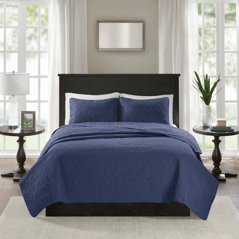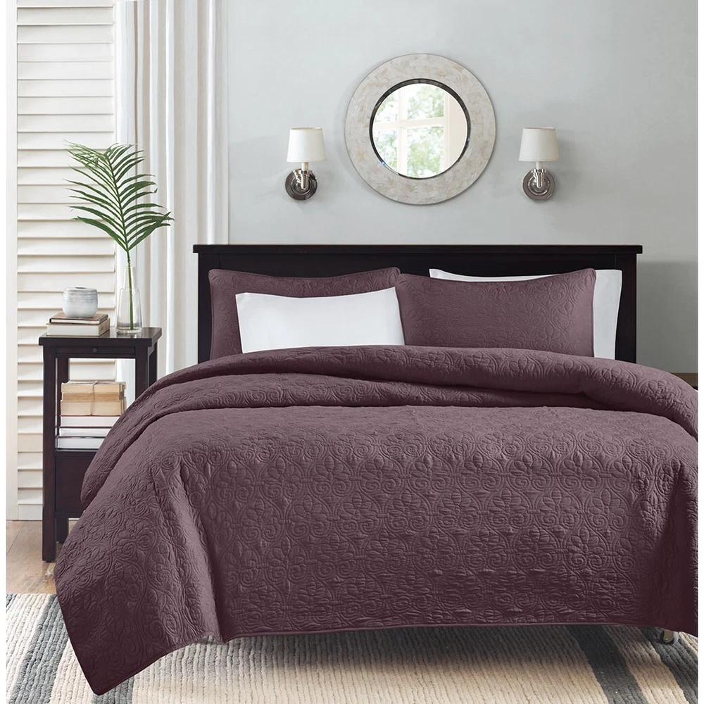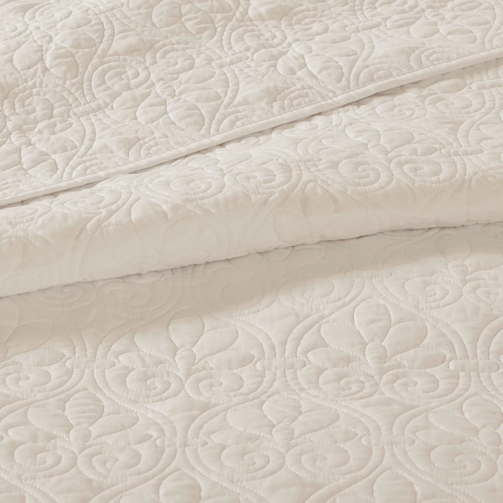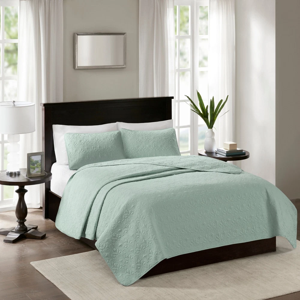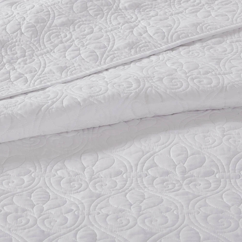 Store Categories Store Categories Bedding Comforters Decorative Pillows Duvet Covers Quilts & Coverlets Sheets Blankets & Throws Mattress Pads Pillows Home Decor Window Treatments Wall Art Home Accents Furniture Beds Dining Seating Ottomans & Benches Accent Chairs Accent Tables Dining Tables Sofas Bath Bath Robes Shower Curtains Towels Bath Rugs Bath Accessories Apparel Pajama Sets Nightgowns Rugs Rugs & Carpets Lighting Lamp Pendant Other Product Overview Details DESCRIPTION The Madison Park Quebec Reversible Coverlet Set offers a charming cottage-inspired update to your bedroom. The coverlet and shams (1 in Twin/TwinXL) flaunt a classic stitch pattern that creates a rich depth and texture on the face of the bedding set. Prewashed cotton filling provides added comfort and durability making it the perfect for use in the summer or as a layering piece in the winter. This coverlet also has an antimicrobial treatment that provides built-in freshness protection, reducing the growth of odor causing bacteria to keep fabric lasting longer. FEATURES • Casual bedding set that is perfect for summer use or layer it on for warmth • 3 piece reversible coverlet set with patterned quilting • Pre-washed cotton filling for comfort and stability • Set includes coverlet and two matching shams (1 for Twin/TwinXL) • Anti-microbial treatment for health and wellness - provides odor control, prevents bacteria buildup, enhances hygiene, and extends product life by keeping linen fresh • Machine washable MATERIAL Soft brushed Microfiber Face and Back, 90% Cotton, 10% other Fibers fill, prewash finish. Avaiable Sizes: Twin/Twin XL Quilt Set includes: 1 Quilt: 68"W x 90"L 1 Standard Sham :20"W x 26"L Full/Queen Quilt Set includes: 1 Quilt: 90"W x 90"L 2 Standard Shams: 20"W x 26"L King/Cal King Quilt Set includes: 1 Quilt: 104"W x 94"L 2 King Shams: 20"W x 36"L Bedding Comforters Decorative Pillows Duvet Covers Quilts & Coverlets Sheets Blankets & Throws Mattress Pads Pillows Home Decor Window Treatments Wall Art Home Accents Furniture Beds Dining Seating Ottomans & Benches Accent Chairs Accent Tables Dining Tables Sofas Bath Bath Robes Shower Curtains Towels Bath Rugs Bath Accessories Rugs Rugs & Carpets Lighting Lamp Pendant Product Overview Product Details DESCRIPTION The Madison Park Quebec Reversible Coverlet Set offers a charming cottage-inspired update to your bedroom. The coverlet and shams (1 in Twin/TwinXL) flaunt a classic stitch pattern that creates a rich depth and texture on the face of the bedding set. Prewashed cotton filling provides added comfort and durability making it the perfect for use in the summer or as a layering piece in the winter. This coverlet also has an antimicrobial treatment that provides built-in freshness protection, reducing the growth of odor causing bacteria to keep fabric lasting longer. FEATURES • Casual bedding set that is perfect for summer use or layer it on for warmth • 3 piece reversible coverlet set with patterned quilting • Pre-washed cotton filling for comfort and stability • Set includes coverlet and two matching shams (1 for Twin/TwinXL) • Anti-microbial treatment for health and wellness - provides odor control, prevents bacteria buildup, enhances hygiene, and extends product life by keeping linen fresh • Machine washable MATERIAL Soft brushed Microfiber Face and Back, 90% Cotton, 10% other Fibers fill, prewash finish. Avaiable Sizes: Twin/Twin XL Quilt Set includes: 1 Quilt: 68"W x 90"L 1 Standard Sham :20"W x 26"L Full/Queen Quilt Set includes: 1 Quilt: 90"W x 90"L 2 Standard Shams: 20"W x 26"L King/Cal King Quilt Set includes: 1 Quilt: 104"W x 94"L 2 King Shams: 20"W x 36"L