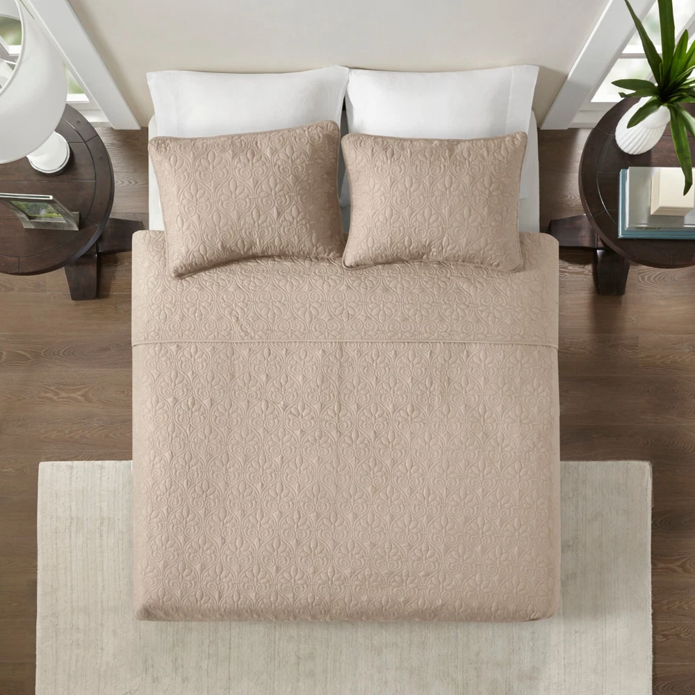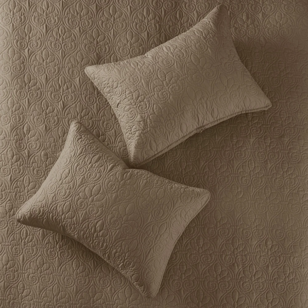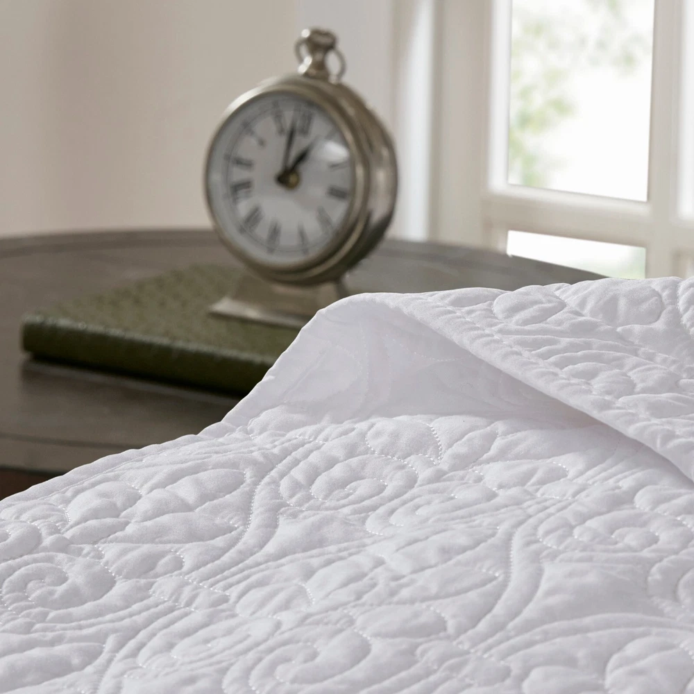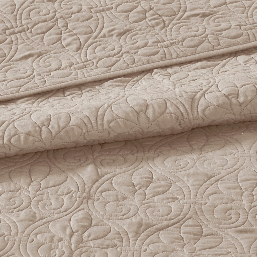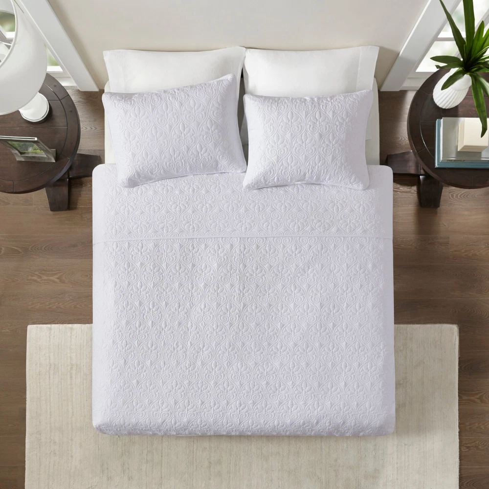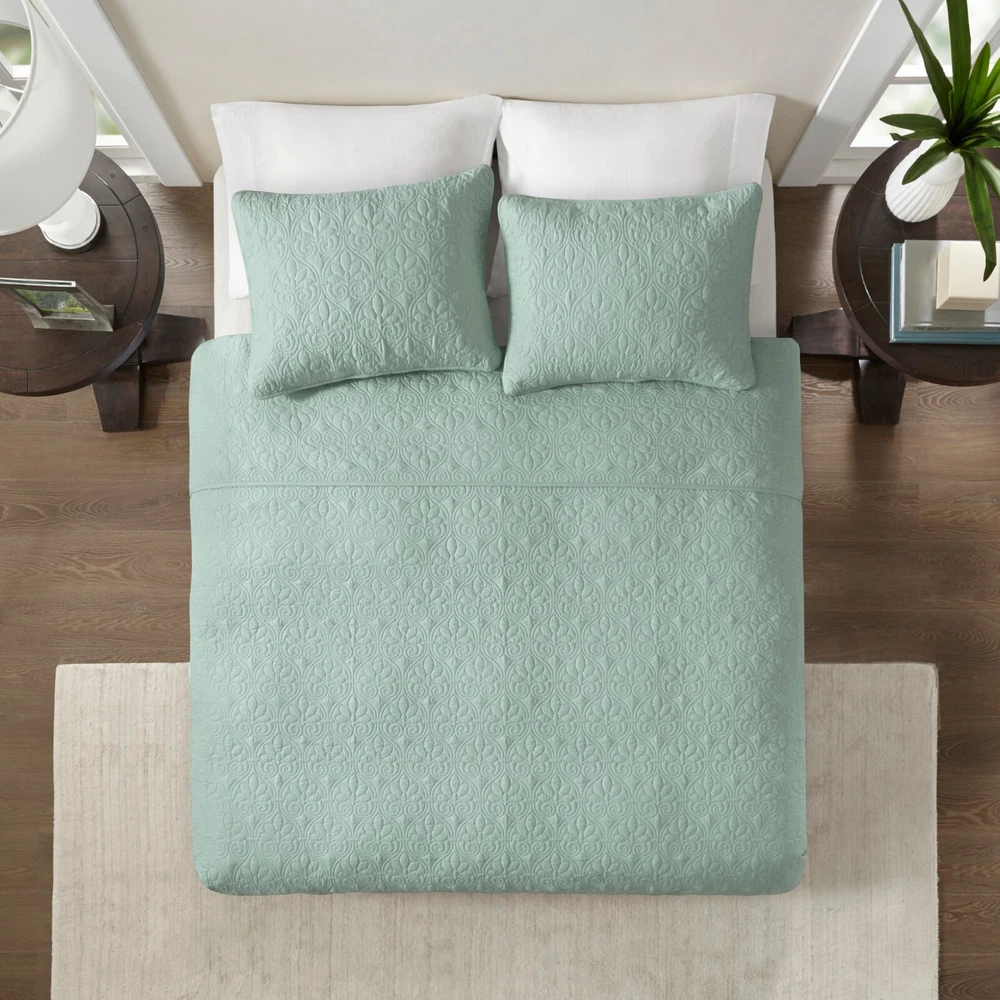 Store Categories Store Categories Bedding Comforters Decorative Pillows Duvet Covers Quilts & Coverlets Sheets Blankets & Throws Mattress Pads Pillows Home Decor Window Treatments Wall Art Home Accents Furniture Beds Dining Seating Ottomans & Benches Accent Chairs Accent Tables Dining Tables Sofas Bath Bath Robes Shower Curtains Towels Bath Rugs Bath Accessories Apparel Pajama Sets Nightgowns Rugs Rugs & Carpets Lighting Lamp Pendant Other Product Overview Details DESCRIPTION The Madison Park Quebec Reversible Coverlet Set offers a charming cottage-inspired update to your bedroom. The coverlet and shams (1 in Twin/TwinXL) flaunt a classic stitch pattern that creates a rich depth and texture on the face of the bedding set. Prewashed cotton filling provides added comfort and durability making it the perfect for use in the summer or as a layering piece in the winter. This coverlet also has an antimicrobial treatment that provides built-in freshness protection, reducing the growth of odor causing bacteria to keep fabric lasting longer. FEATURES • Casual bedding set that is perfect for summer use or layer it on for warmth • 3 piece reversible coverlet set with patterned quilting • Pre-washed cotton filling for comfort and stability • Set includes coverlet and two matching shams (1 for Twin/TwinXL) • Anti-microbial treatment for health and wellness - provides odor control, prevents bacteria buildup, enhances hygiene, and extends product life by keeping linen fresh • Machine washable MATERIAL Soft brushed Microfiber Face and Back, 90% Cotton, 10% other Fibers fill, prewash finish. Avaiable Sizes: Twin/Twin XL Quilt Set includes: 1 Quilt: 68"W x 90"L 1 Standard Sham :20"W x 26"L Full/Queen Quilt Set includes: 1 Quilt: 90"W x 90"L 2 Standard Shams: 20"W x 26"L King/Cal King Quilt Set includes: 1 Quilt: 104"W x 94"L 2 King Shams: 20"W x 36"L Bedding Comforters Decorative Pillows Duvet Covers Quilts & Coverlets Sheets Blankets & Throws Mattress Pads Pillows Home Decor Window Treatments Wall Art Home Accents Furniture Beds Dining Seating Ottomans & Benches Accent Chairs Accent Tables Dining Tables Sofas Bath Bath Robes Shower Curtains Towels Bath Rugs Bath Accessories Rugs Rugs & Carpets Lighting Lamp Pendant Product Overview Product Details DESCRIPTION The Madison Park Quebec Reversible Coverlet Set offers a charming cottage-inspired update to your bedroom. The coverlet and shams (1 in Twin/TwinXL) flaunt a classic stitch pattern that creates a rich depth and texture on the face of the bedding set. Prewashed cotton filling provides added comfort and durability making it the perfect for use in the summer or as a layering piece in the winter. This coverlet also has an antimicrobial treatment that provides built-in freshness protection, reducing the growth of odor causing bacteria to keep fabric lasting longer. FEATURES • Casual bedding set that is perfect for summer use or layer it on for warmth • 3 piece reversible coverlet set with patterned quilting • Pre-washed cotton filling for comfort and stability • Set includes coverlet and two matching shams (1 for Twin/TwinXL) • Anti-microbial treatment for health and wellness - provides odor control, prevents bacteria buildup, enhances hygiene, and extends product life by keeping linen fresh • Machine washable MATERIAL Soft brushed Microfiber Face and Back, 90% Cotton, 10% other Fibers fill, prewash finish. Avaiable Sizes: Twin/Twin XL Quilt Set includes: 1 Quilt: 68"W x 90"L 1 Standard Sham :20"W x 26"L Full/Queen Quilt Set includes: 1 Quilt: 90"W x 90"L 2 Standard Shams: 20"W x 26"L King/Cal King Quilt Set includes: 1 Quilt: 104"W x 94"L 2 King Shams: 20"W x 36"L