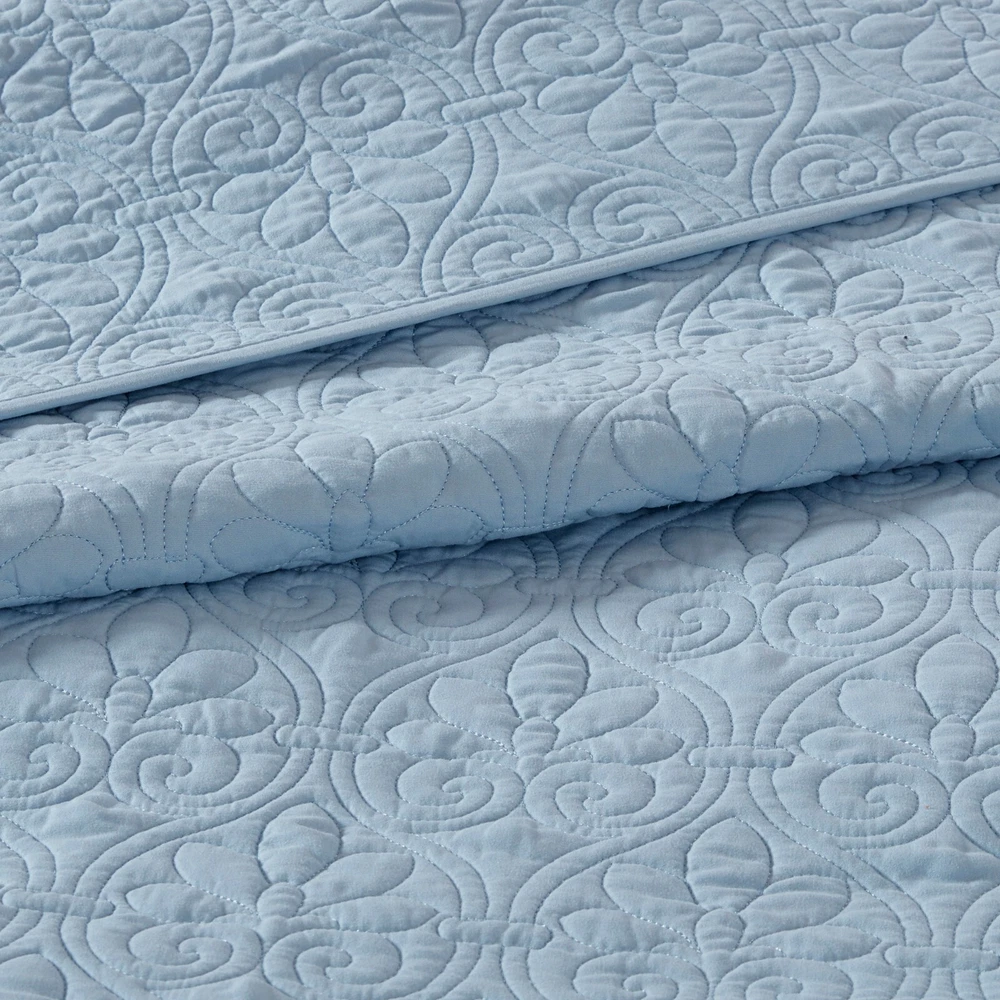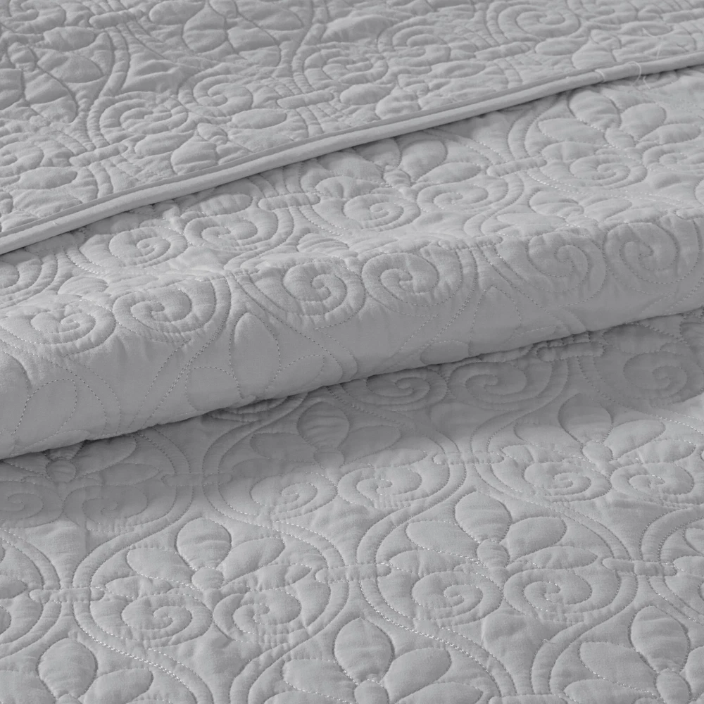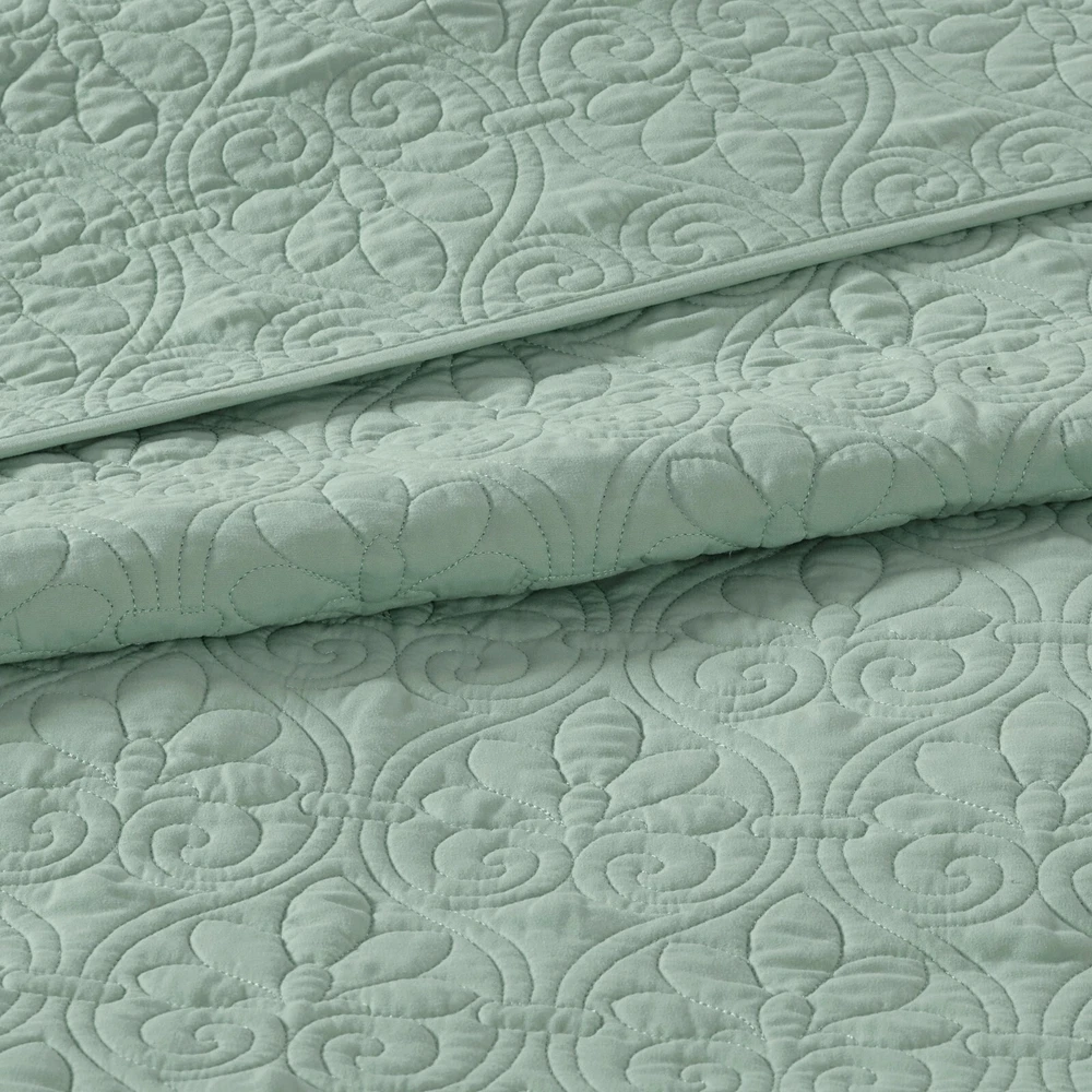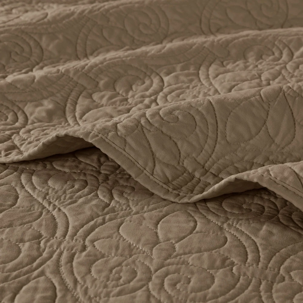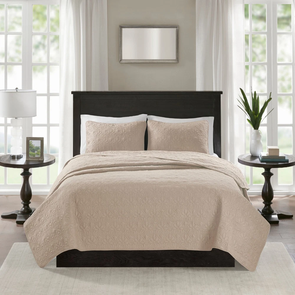 Store Categories Store Categories Bedding Comforters Decorative Pillows Duvet Covers Quilts & Coverlets Sheets Blankets & Throws Mattress Pads Pillows Home Decor Window Treatments Wall Art Home Accents Furniture Beds Dining Seating Ottomans & Benches Accent Chairs Accent Tables Dining Tables Sofas Bath Bath Robes Shower Curtains Towels Bath Rugs Bath Accessories Apparel Pajama Sets Nightgowns Rugs Rugs & Carpets Lighting Lamp Pendant Other Product Overview Details DESCRIPTION The Madison Park Quebec Reversible Coverlet Set offers a charming cottage-inspired update to your bedroom. The coverlet and shams (1 in Twin/TwinXL) flaunt a classic stitch pattern that creates a rich depth and texture on the face of the bedding set. Prewashed cotton filling provides added comfort and durability making it the perfect for use in the summer or as a layering piece in the winter. This coverlet also has an antimicrobial treatment that provides built-in freshness protection, reducing the growth of odor causing bacteria to keep fabric lasting longer. FEATURES • Casual bedding set that is perfect for summer use or layer it on for warmth • 3 piece reversible coverlet set with patterned quilting • Pre-washed cotton filling for comfort and stability • Set includes coverlet and two matching shams (1 for Twin/TwinXL) • Anti-microbial treatment for health and wellness - provides odor control, prevents bacteria buildup, enhances hygiene, and extends product life by keeping linen fresh • Machine washable MATERIAL Soft brushed Microfiber Face and Back, 90% Cotton, 10% other Fibers fill, prewash finish. Avaiable Sizes: Twin/Twin XL Quilt Set includes: 1 Quilt: 68"W x 90"L 1 Standard Sham :20"W x 26"L Full/Queen Quilt Set includes: 1 Quilt: 90"W x 90"L 2 Standard Shams: 20"W x 26"L King/Cal King Quilt Set includes: 1 Quilt: 104"W x 94"L 2 King Shams: 20"W x 36"L Bedding Comforters Decorative Pillows Duvet Covers Quilts & Coverlets Sheets Blankets & Throws Mattress Pads Pillows Home Decor Window Treatments Wall Art Home Accents Furniture Beds Dining Seating Ottomans & Benches Accent Chairs Accent Tables Dining Tables Sofas Bath Bath Robes Shower Curtains Towels Bath Rugs Bath Accessories Rugs Rugs & Carpets Lighting Lamp Pendant Product Overview Product Details DESCRIPTION The Madison Park Quebec Reversible Coverlet Set offers a charming cottage-inspired update to your bedroom. The coverlet and shams (1 in Twin/TwinXL) flaunt a classic stitch pattern that creates a rich depth and texture on the face of the bedding set. Prewashed cotton filling provides added comfort and durability making it the perfect for use in the summer or as a layering piece in the winter. This coverlet also has an antimicrobial treatment that provides built-in freshness protection, reducing the growth of odor causing bacteria to keep fabric lasting longer. FEATURES • Casual bedding set that is perfect for summer use or layer it on for warmth • 3 piece reversible coverlet set with patterned quilting • Pre-washed cotton filling for comfort and stability • Set includes coverlet and two matching shams (1 for Twin/TwinXL) • Anti-microbial treatment for health and wellness - provides odor control, prevents bacteria buildup, enhances hygiene, and extends product life by keeping linen fresh • Machine washable MATERIAL Soft brushed Microfiber Face and Back, 90% Cotton, 10% other Fibers fill, prewash finish. Avaiable Sizes: Twin/Twin XL Quilt Set includes: 1 Quilt: 68"W x 90"L 1 Standard Sham :20"W x 26"L Full/Queen Quilt Set includes: 1 Quilt: 90"W x 90"L 2 Standard Shams: 20"W x 26"L King/Cal King Quilt Set includes: 1 Quilt: 104"W x 94"L 2 King Shams: 20"W x 36"L