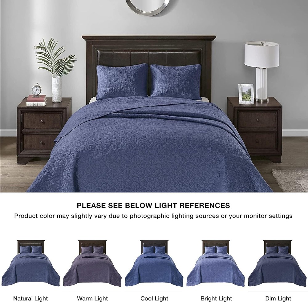 View More Madison Park Items Madison Park Quebec Quilted 3-Pc. Bedspread Set, Queen, Navy Quebec is the perfect bedspread to use as a layering piece or an alternative to your comforter for a new solid look. The classic stitch pattern pairs easily with your existing décor and will be sure to add a new decorative element to your bedroom. Dimensions: bedspread 102" x 118", standard shams 20" x 26" Bedspread is oversized to drape better on high depth mattresses Set includes: 1 bedspread and 2 standard shams Polyester with cotton fill Machine washable Imported Shipping Details Payment Information Customer Service Shipping Cost We generally ship FREE in USA, otherwise please look item shipping info. For international buyers we welcome combining. Delivery Time We generally ship same business day, expedite shipping if otherwise stated. International Buyers Import duties, taxes, and charges are not included in the item price or shipping cost. These charges are the buyer's responsibility. Please check with your country's customs office to determine what these additional costs will be prior to bidding or buying. We accept the PayPal Please contact us if you have any questions. Product Information Feel free to ask for more photos & info Product photos are assumed to be part of the description. Contact Information You can contact us anytime before & after purchase We wil reply your message in 24h. FAST'N FREE shipping to USA EASY RETURNS in 30 days 100% AUTHENTIC large inventory 100% CUSTOMER satisfaction guarantee Private Sellers Network Our aim is; To serve best products of famous brands with reasonable prices to our customers. All our products are authentic. Please take a look our other merchandise and follow us. "Your happiness is our joy..." Visit Store Sign Up for Newsletter View Reviews