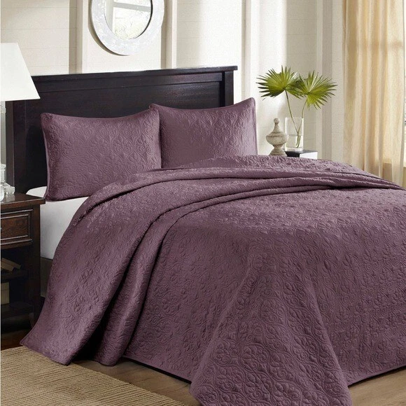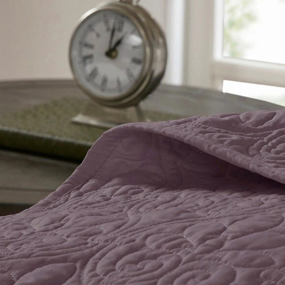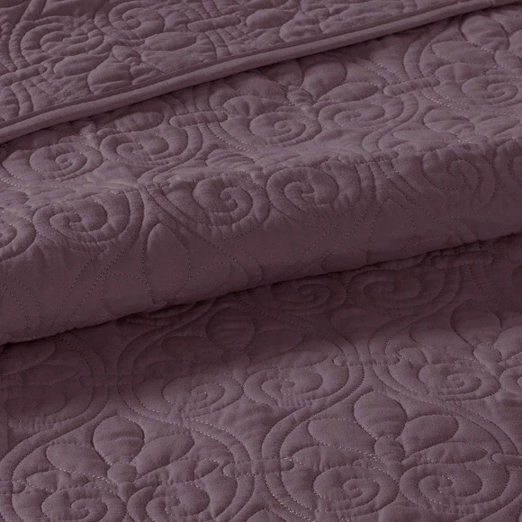 Madison Park - Quebec Quilted 3-Pc. Bedspread Set, Queen - Purple Quebec is the perfect bedspread to use as a layering piece or an alternative to your comforter for a new solid look • Dimensions: bedspread 102" x 118", standard shams 20" x 26" • Bedspread is oversized to drape better on high depth mattresses • Set includes: 1 bedspread and 2 standard shams • Polyester with cotton fill • Machine washable