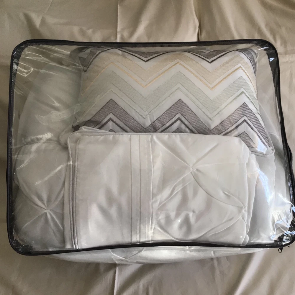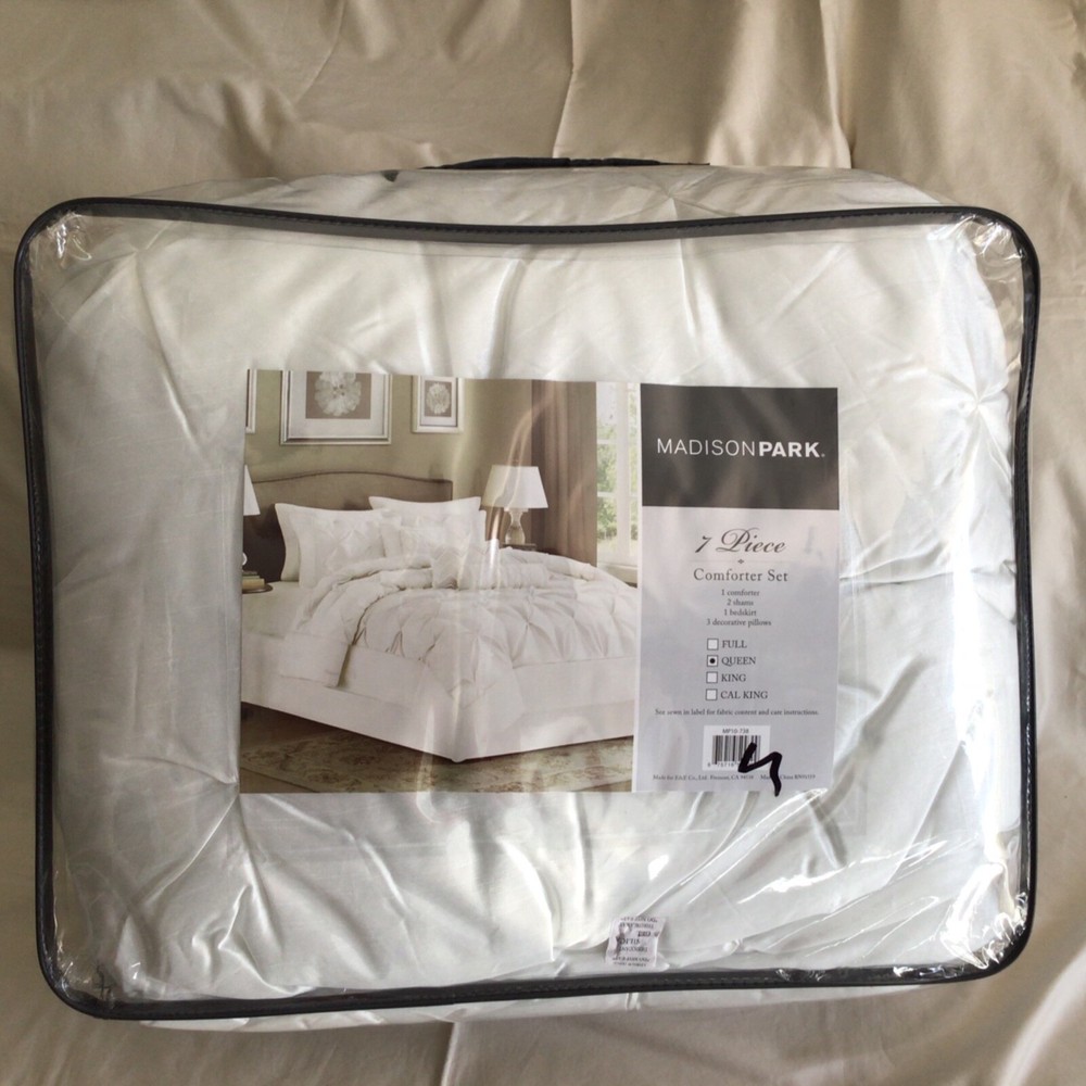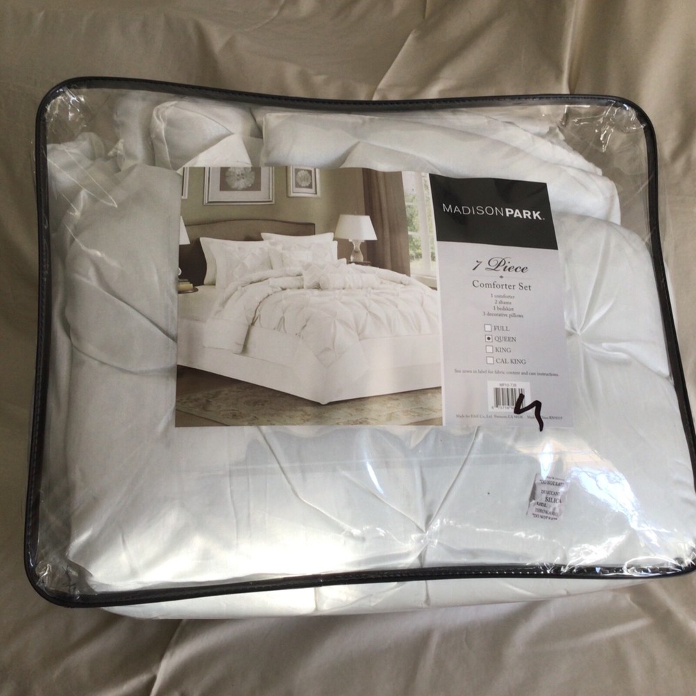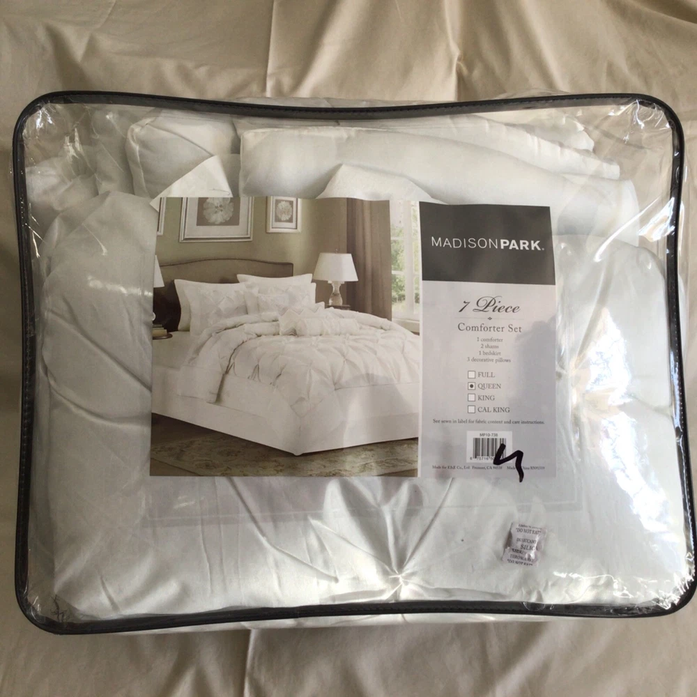 The Wilma comforter set from Madison Park features the comfort of polyester polyoni with a classic pleated design, making it a distinguished addition to any room. Set includes: comforter (90" x 90"), bed skirt (60" x 80" + 15"), two standard shams (20" x 26") and One decorative pillows ( 6.5" x 18") Pleated design Comforter: polyester; polyester fill Sham: polyester Bedskirt: polyester Pillow: polyester cover; polyester fill Polyester Machine washable Imported Included: 5 PCs Please feel free to message us anytime. Contact us before any negative feedback; I will do my best to resolve any issues as quickly as possible. We ship our items Monday - Friday Only Most items have been purchased at an Overstocked/Liquidated/Returned retail store. Labels may be marked to prevent store returns. Original packaging may be missing or distressed. Refunds will be issued on items that are not as described or defective only. International Buyers – Please Note: Import duties, taxes, and charges are not included in the item price or shipping cost. The charges are the buyer's responsibility Please check with your country's customs office to determine what these additional costs will be prior to bidding or buying Thank you for looking. Visit My Store For Other Items