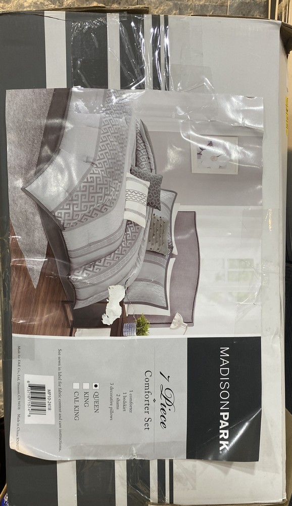 Madison Park Queen 7 Piece Comforter Set In Grey Finish MP102418 Damaged Box New.
