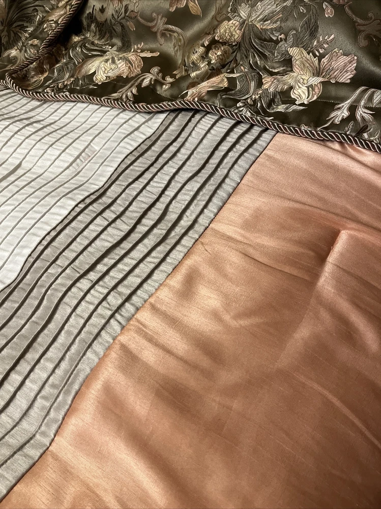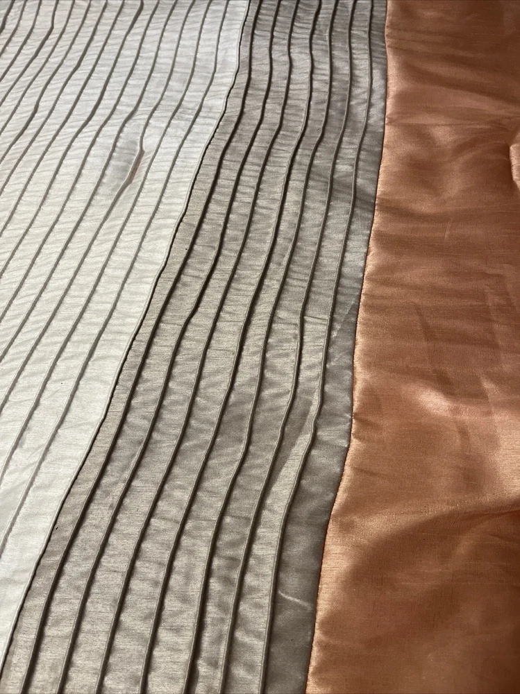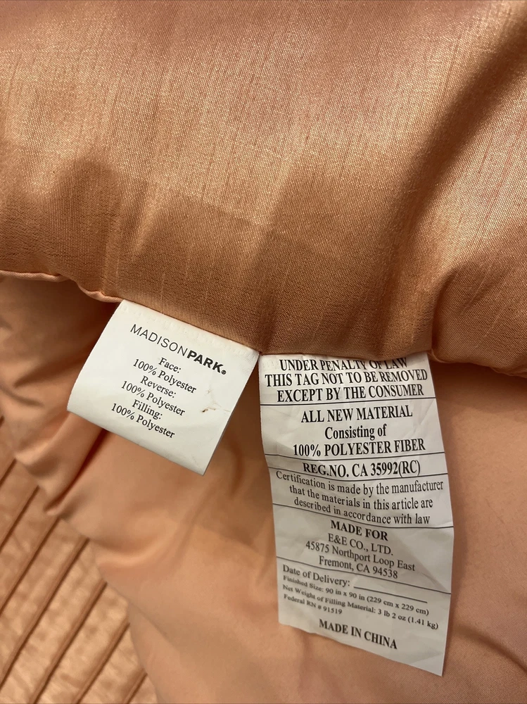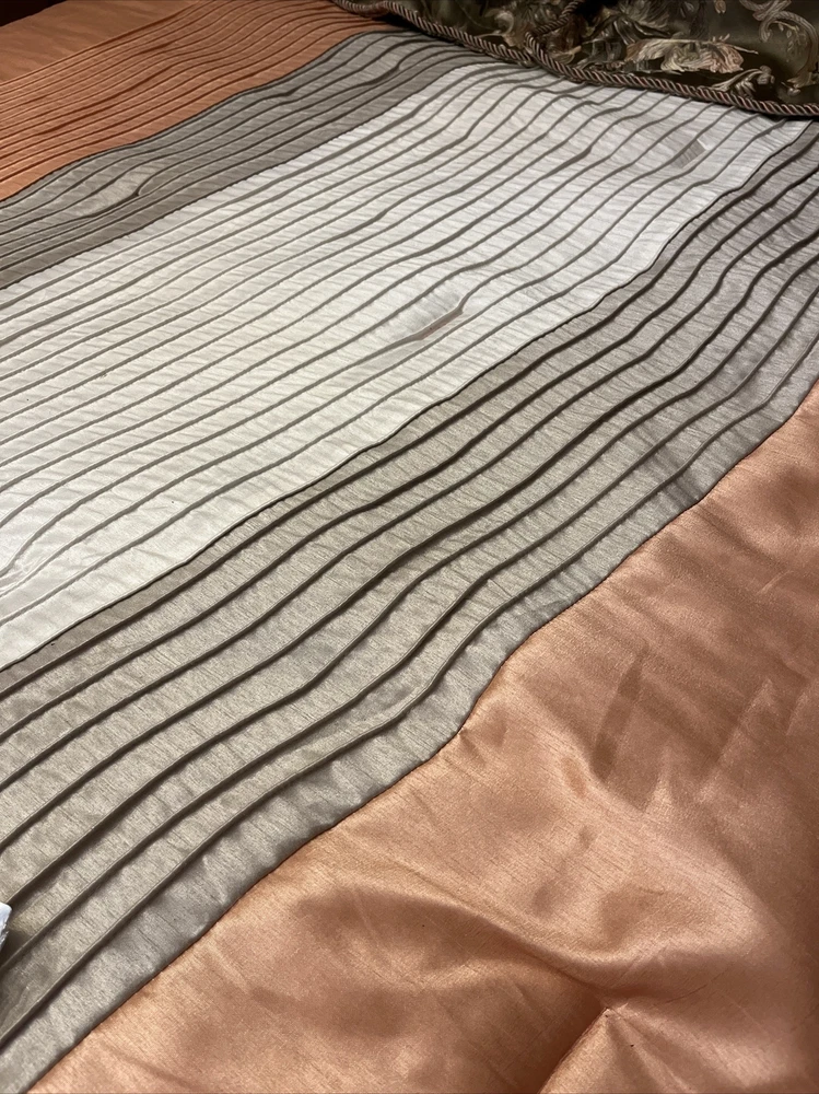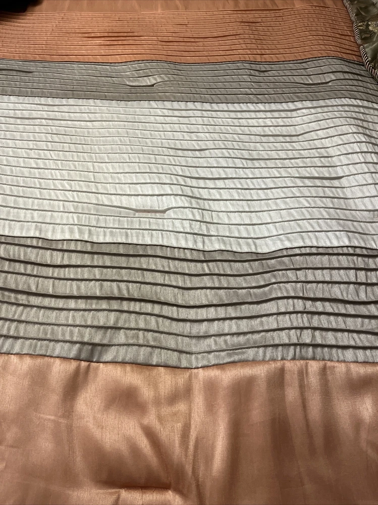 Enhance your bedroom decor with this Madison Park Queen Comforter. The pleated design in peach, tan, and white colors is perfect for a fall flare. The comforter is made of durable polyester material, and it comes with one comforter in the set. The size is perfect for a queen bed, and it is easy to machine wash as per the care instructions. This Color Block comforter set is perfect for your bedroom in any season. I will try and get shipping as low as I can . 😉