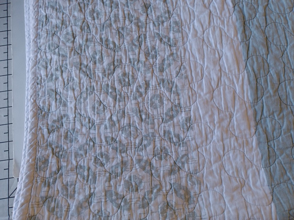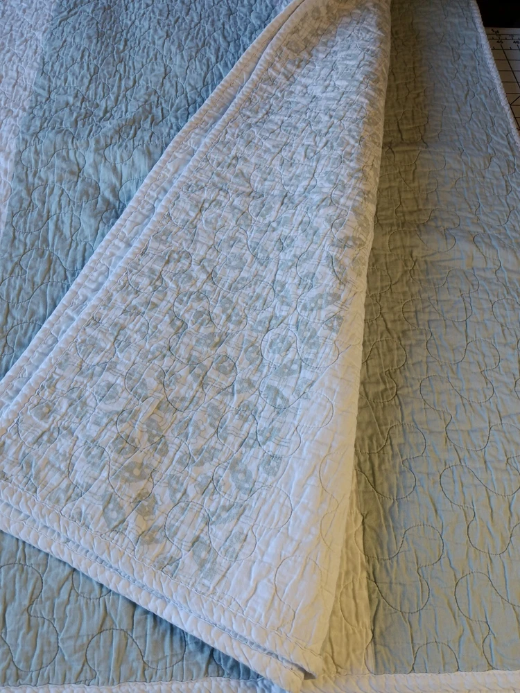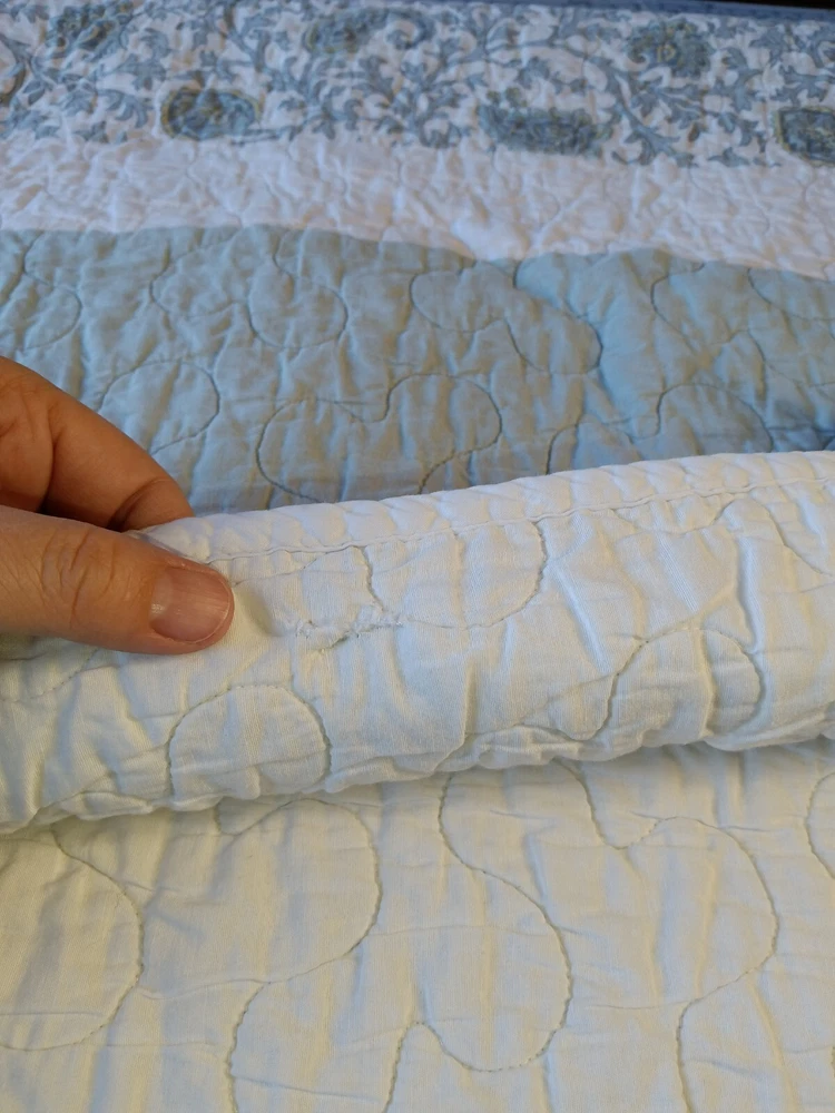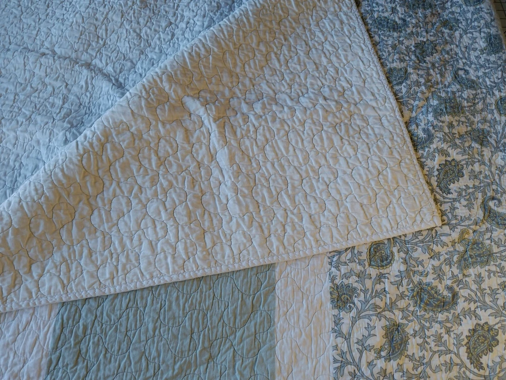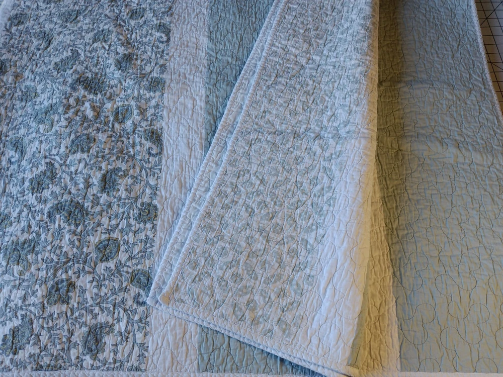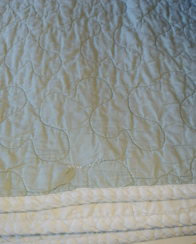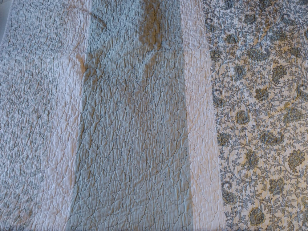 The Madison Park Quilted Blanket is a reversible cotton blanket featuring a country-inspired design in shades of blues, gray, and white. Measuring 88 x 86 inches, this rectangular blanket is suitable for adults and adds a touch of floral charm to any bedroom decor. With its all-season insulation, it is perfect for keeping you cozy and comfortable year-round. Easy to care for, this blanket can be machine washed to maintain its quality and style. Perfect for adding a cozy and stylish element to your bedding collection. In Good Condition. There is one small tear on this blanket. The tear has been repaired. Please see photos for more detail information. No Other Tears and No Stains found on this reversible blanket. The blanket is very nice quality and heavy. This blanket has been washed and ready for use.