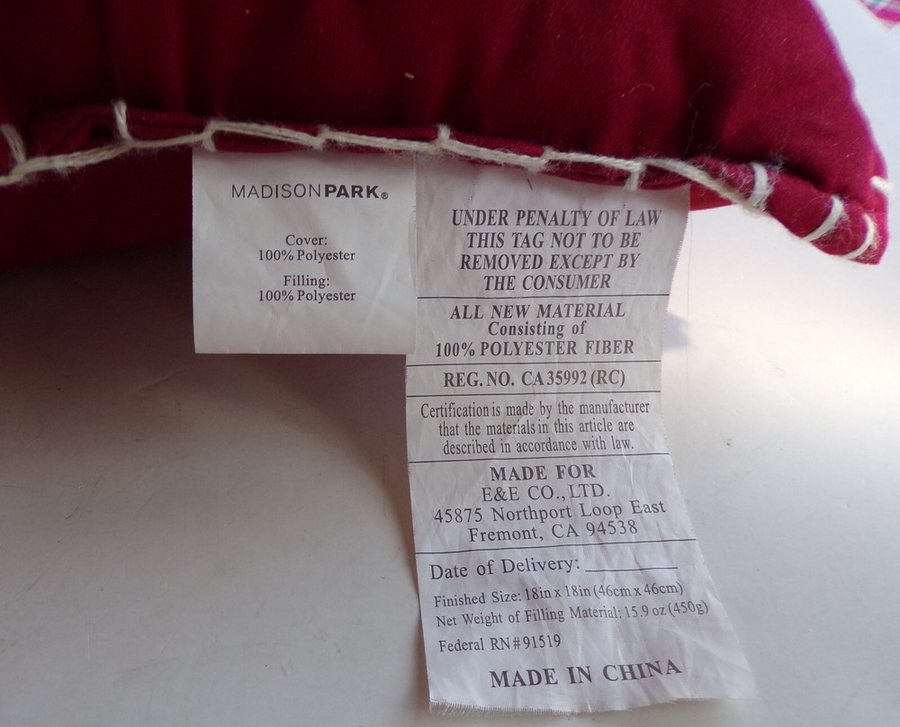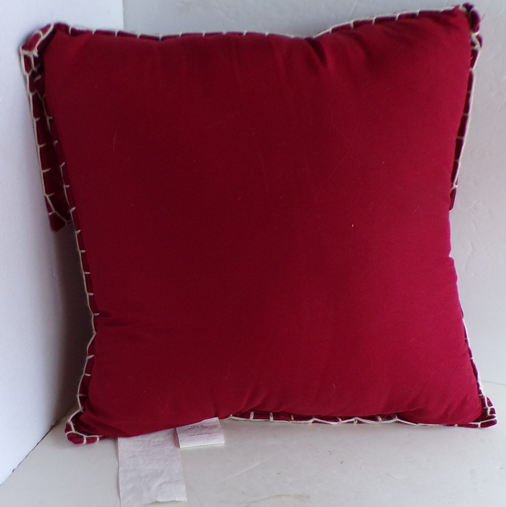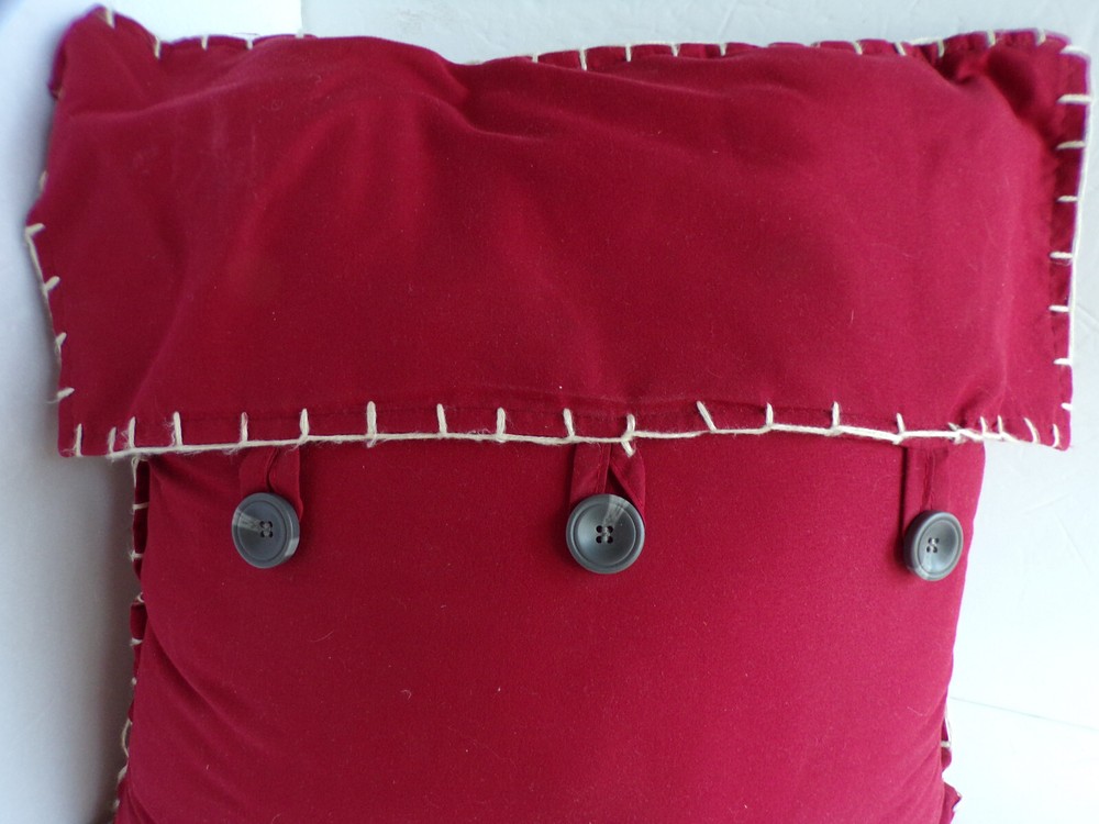 ENVELOPE PILLOW Red Cream edge stitching 3 button and loop trim Size: 18" x 18" It is in excellent condition. My items come from a smoke free home. I combine shipping, see below. Please ask any questions. Please check all photo to assess condition. COMBINED SHIPPING : I am happy to combine items to save you shipping. However in order to combine shipping, all items need to be paid for from one combined invoice. So, if you are buying more than 1 item, don't pay till I send you a combined invoice. Just let me know when you're done shopping. RETURNS: I do not accept returns unless the items is not as presented. However, if there is a problem, please let me know as I am always interested in working out any problem.