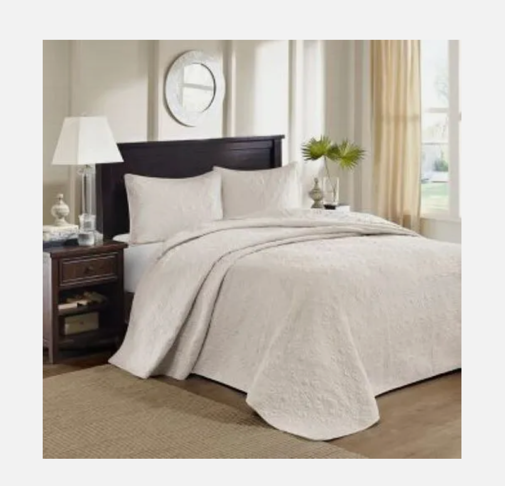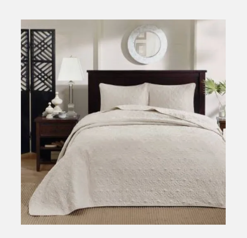 The Vancouver Reversible Bedspread Set offers a charming cottage-inspired update to your bedroom. The reversible bedspread and shams (1 in Twin/Twin XL) flaunt a classic stitch pattern that creates a rich depth and texture on the face of the bedding set. Dimensions: 17.72 in (L) x 15.55 in (W) x 7.87 in (H) Pre-washed cotton filling provides added comfort and durability, while the oversized dimensions allow the bedspread to drape better. This bedspread also has an antimicrobial treatment that provides built-in freshness protection, reducing the growth of odor causing bacteria to keep fabric lasting longer. Law Label: UNDER PENALTY OF LAW THIS TAG NOT TO BE REMOVED EXCEPT BY THE CONSUMER ALL NEW MATERIAL Consisting of 90% COTTON FIBER 8.1% POLYESTER 1.9% RAYON FIBER REG. NO. CA 45447 (CN) Certification is made by the manufacturer that the materials in this article are described in accordance with law. MADE FOR E&E CO., LTD 45875 Northport Loop East, Fremont, CA 94538 Federal RN#91519 MADE IN CHINA.