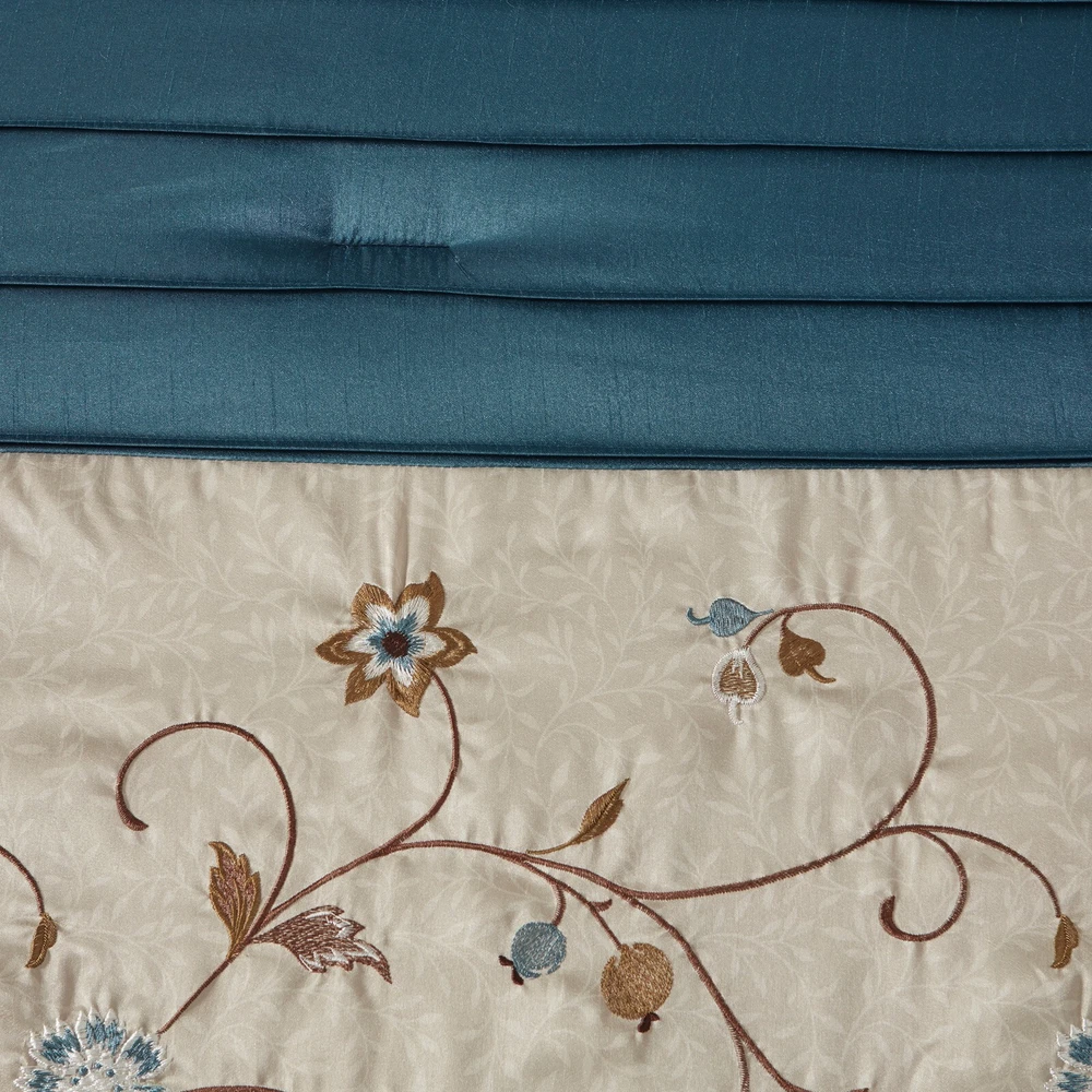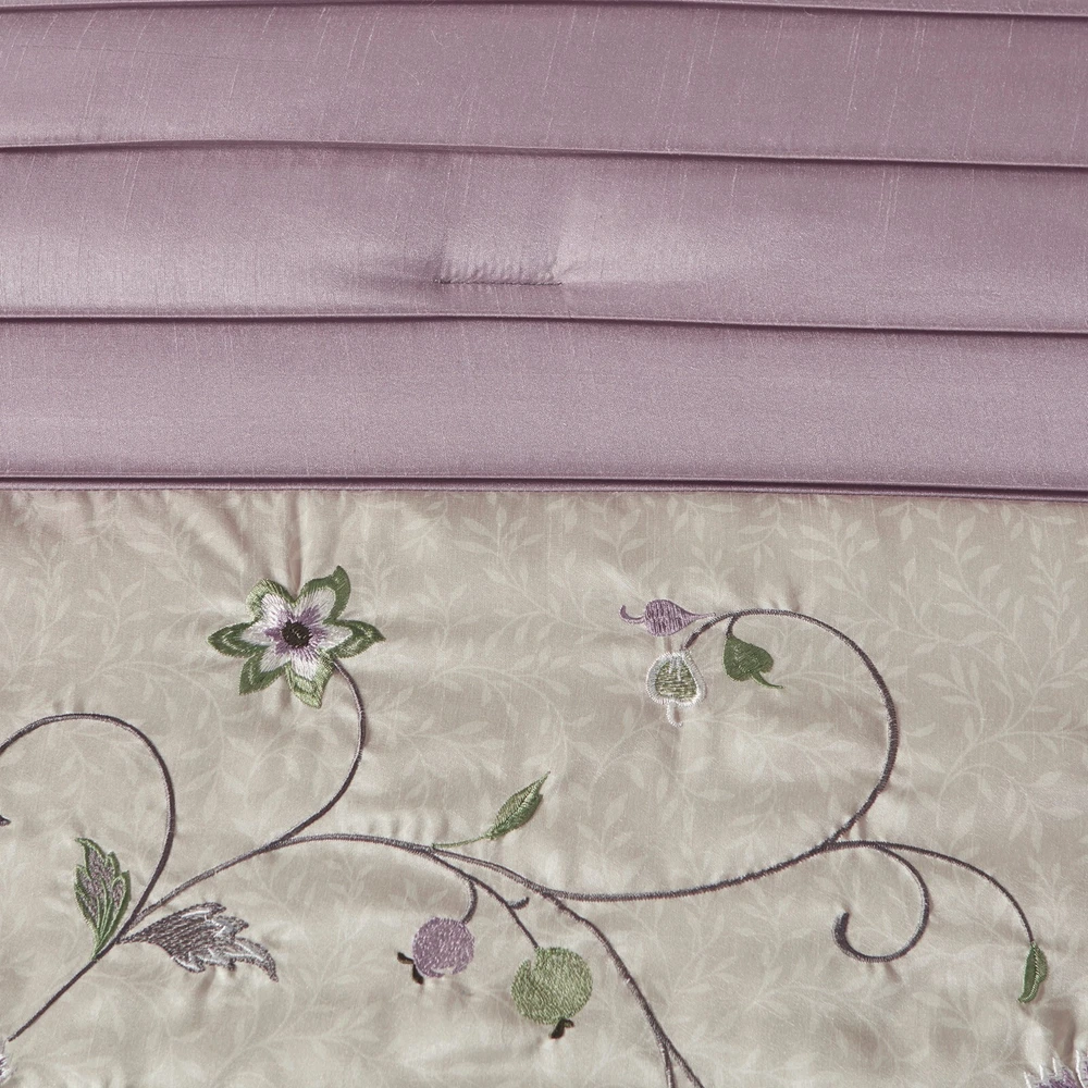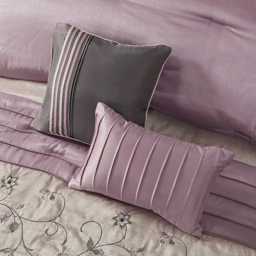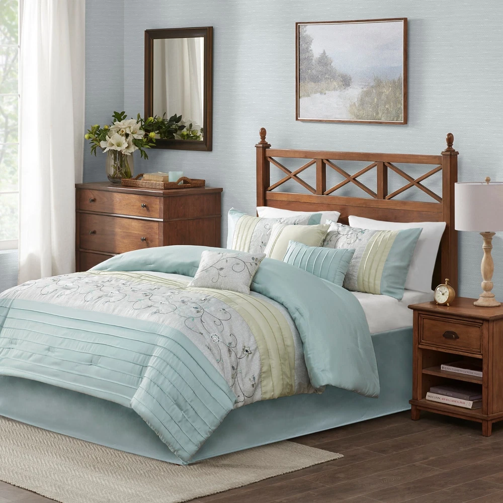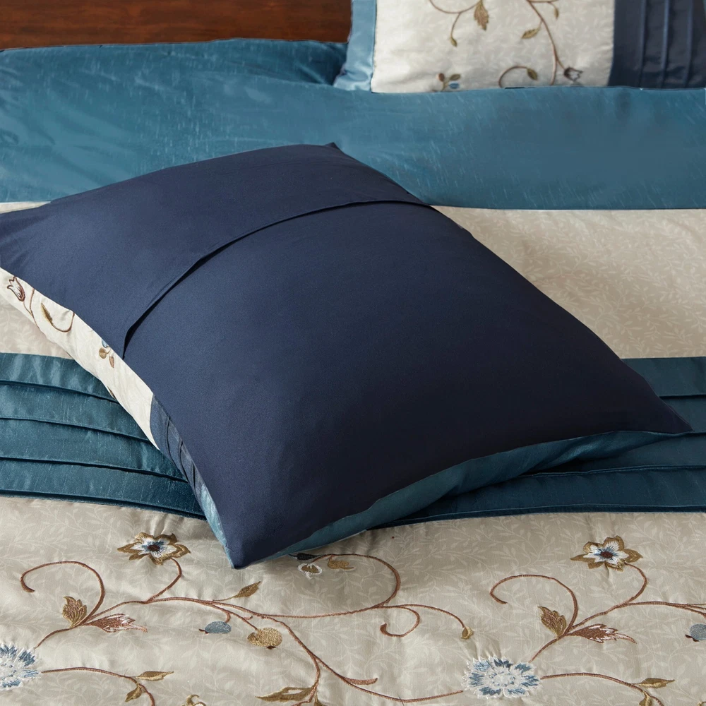 Store Categories Store Categories Bedding Comforters Decorative Pillows Duvet Covers Quilts & Coverlets Sheets Blankets & Throws Mattress Pads Pillows Home Decor Window Treatments Wall Art Home Accents Furniture Beds Dining Seating Ottomans & Benches Accent Chairs Accent Tables Dining Tables Sofas Bath Bath Robes Shower Curtains Towels Bath Rugs Bath Accessories Apparel Pajama Sets Nightgowns Rugs Rugs & Carpets Lighting Lamp Pendant Other Product Overview Details DESCRIPTION Elegantly update your bedroom with the Madison Park Serene 7 Piece Comforter Set. A beautifully embroidered floral pattern is showcased on the faux silk comforter. The pieced design, in yellow and grey hues, adds a lovely contrast and texture to the ensemble. The solid dark grey reverse complements the enticing design seen on the top of the comforter and continues gracefully down to the bed skirt. Matching shams bring the unique style of the comforter to the head of the bed, giving it a truly luxurious look. Three decorative pillows with intricate embroidery, pleating, and piecing, complete this exquisite comforter set. Items in the set may come in a rolled or compressed packaging, which will need to be fluffed up or steam ironed before use to remove wrinkles. FEATURES • Elegant transitional style 7 piece comforter set • Piecing and embroidery details on top of comforter • Made from 100% polyester polyoni, the fabric produce a shine • Set includes 1 comforter, 2 matching shams, 3 decorative pillows and 1 bed skirt • Hypoallergenic polyester filling in the comforter and decorative pillows • Machine washable and steam iron for wrinkle removal • Items in this set may come in rolled or compressed packaging and will need to be fluffed up MATERIAL Polyester faux silk, embroidered, pieced, 8oz/sq yard polyester filling, faux silk bedskirt and pillows; Available Sizes: Queen Comforter Set includes: 1 Comforter: 90"W x 90"L 2 Standard Shams: 20"W x 26"L 1 Bedskirt: 60"W x 80"L + 15"D 1 Decorative Pillow: 18"W x 18"L 1 Decorative Pillow: 12"W x 18"L 1 Decorative Pillow: 12"W x 16"L King Comforter Set includes: 1 Comforter: 104"W x 92"L 2 King Shams: 20"W x 36"L 1 Bedskirt: 78"W x 80"L + 15"D 1 Decorative Pillow: 12"W x 16"L 1 Decorative Pillow: 12"W x 18"L 1 Decorative Pillow: 18"W x 18"L California King Comforter Set includes: 1 Comforter: 104"W x 92"L 2 King Shams: 20"W x 36"L 1 Bedskirt: 72"W x 84"L + 15"D 1 Decorative Pillow: 12"W x 16"L 1 Decorative Pillow: 12"W x 18"L 1 Decorative Pillow: 18"W x 18"L Bedding Comforters Decorative Pillows Duvet Covers Quilts & Coverlets Sheets Blankets & Throws Mattress Pads Pillows Home Decor Window Treatments Wall Art Home Accents Furniture Beds Dining Seating Ottomans & Benches Accent Chairs Accent Tables Dining Tables Sofas Bath Bath Robes Shower Curtains Towels Bath Rugs Bath Accessories Rugs Rugs & Carpets Lighting Lamp Pendant Product Overview Product Details DESCRIPTION Elegantly update your bedroom with the Madison Park Serene 7 Piece Comforter Set. A beautifully embroidered floral pattern is showcased on the faux silk comforter. The pieced design, in yellow and grey hues, adds a lovely contrast and texture to the ensemble. The solid dark grey reverse complements the enticing design seen on the top of the comforter and continues gracefully down to the bed skirt. Matching shams bring the unique style of the comforter to the head of the bed, giving it a truly luxurious look. Three decorative pillows with intricate embroidery, pleating, and piecing, complete this exquisite comforter set. Items in the set may come in a rolled or compressed packaging, which will need to be fluffed up or steam ironed before use to remove wrinkles. FEATURES • Elegant transitional style 7 piece comforter set • Piecing and embroidery details on top of comforter • Made from 100% polyester polyoni, the fabric produce a shine • Set includes 1 comforter, 2 matching shams, 3 decorative pillows and 1 bed skirt • Hypoallergenic polyester filling in the comforter and decorative pillows • Machine washable and steam iron for wrinkle removal • Items in this set may come in rolled or compressed packaging and will need to be fluffed up MATERIAL Polyester faux silk, embroidered, pieced, 8oz/sq yard polyester filling, faux silk bedskirt and pillows; Available Sizes: Queen Comforter Set includes: 1 Comforter: 90"W x 90"L 2 Standard Shams: 20"W x 26"L 1 Bedskirt: 60"W x 80"L + 15"D 1 Decorative Pillow: 18"W x 18"L 1 Decorative Pillow: 12"W x 18"L 1 Decorative Pillow: 12"W x 16"L King Comforter Set includes: 1 Comforter: 104"W x 92"L 2 King Shams: 20"W x 36"L 1 Bedskirt: 78"W x 80"L + 15"D 1 Decorative Pillow: 12"W x 16"L 1 Decorative Pillow: 12"W x 18"L 1 Decorative Pillow: 18"W x 18"L California King Comforter Set includes: 1 Comforter: 104"W x 92"L 2 King Shams: 20"W x 36"L 1 Bedskirt: 72"W x 84"L + 15"D 1 Decorative Pillow: 12"W x 16"L 1 Decorative Pillow: 12"W x 18"L 1 Decorative Pillow: 18"W x 18"L
