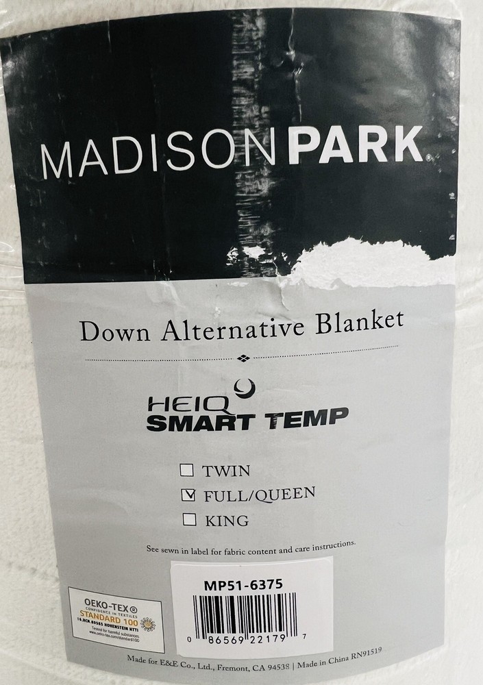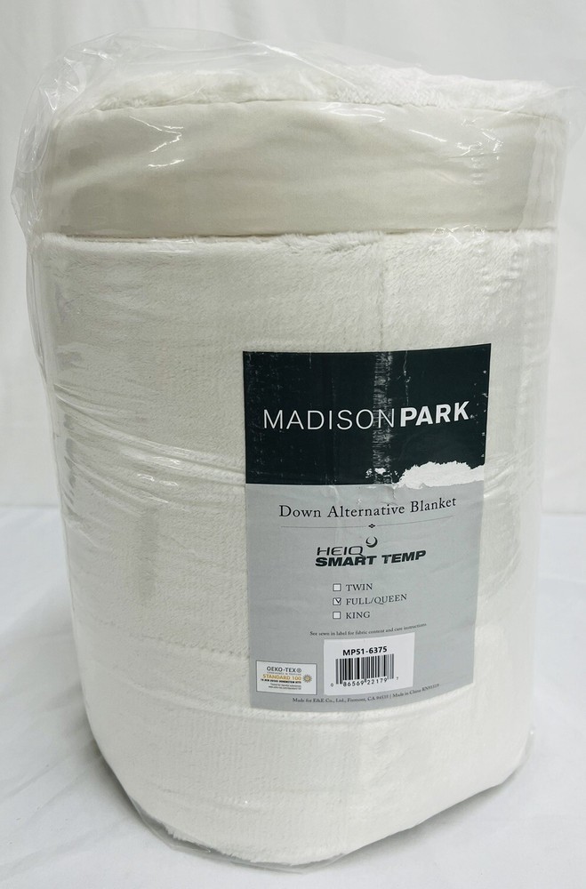 This Madison Park Reversible Plush HeiQ Smart Temperature Alternative Blanket. R12 is a must-have for anyone looking for a comfortable and cozy blanket. It features a solid color pattern and is made of high-quality materials including down, polyester, and microfiber. The blanket is hypoallergenic and perfect for all seasons. The rectangular blanket is available in full/queen size and can be machine washed for easy care. It is STANDARD 100 by OEKO-TEX certified and comes with a label of ivory color. With its modern style and all-season theme, it is a perfect addition to any bedroom.