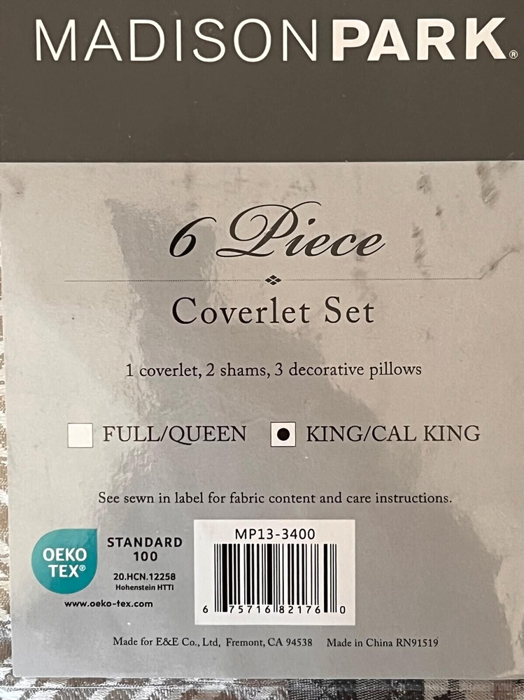 Madison Park Rhapsody 6 Piece Reversible Jacquard Coverlet Set King/Cal King Enhance the appearance of your with the 6-piece Harmony Polyester Jacquard Quilted Coverlet Set. This woven jacquard stripe showcases various small within the stripe, adding to this collection. 100% Same as the Picture! 100% Satisfaction Guarantee. If for any reason you not satisfied with our product, you may return any un-opened merchandise (except Skincare, and Makeup items due to health reasons ) in its original condition, including original packaging and packing slip within 7 days of receipt and you will receive a refund less shipping charges. 15% restocking fee will apply. Shipping cost is non-refundable for undelivered, unclaimed or returned packages, unless we made an error. *********************************************** Payment must be received within seven (7) days of auction close. Unpaid auction wins will be forfeited after seven (7) days and a Non-Payer report will be filed with eBay to recover the closing fees of the auction. If you wish to combine multiple auctions for shipping, please make sure the closing dates from the first auction to the last auction are within seven (7) days Sellers are not responsible for service transit time. Transit times are provided by the carrier, exclude weekends and holidays, and may vary with package origin and destination, particularly during peak periods. ******************************************************************************************* PLEASE CONTACT ME FIRST IF YOU ARE NOT SATISFIED WITH YOUR PURCHASE. I WILL BE HAPPY TO SOLVE ANY PROBLEM. CUSTOMER SATISFACTION IS MY NUMBER ONE PRIORITY. ************************************** PLEASE GIVE US THE OPPORTUNITY TO SERVE YOU !!!