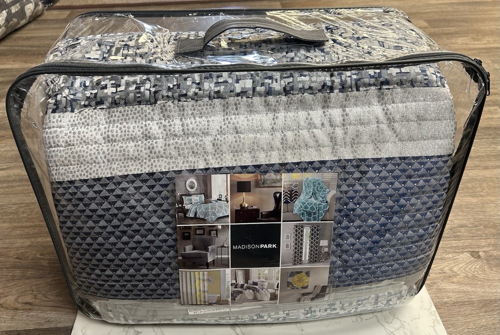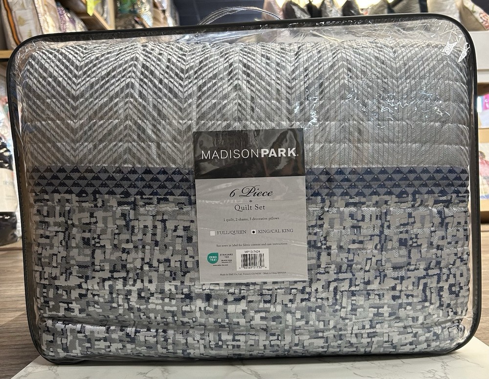 Elevate your bedroom decor with the Madison Park Rhapsody 6 Piece Reversible Jacquard Quilt Set. This luxurious set includes a king/cal king size quilt, decorative pillow, and two pillow shams, all in a stunning navy color with stripes pattern. The fill material is made of cotton blend and the fabric is hypoallergenic, making it perfect for adults who want to have a comfortable and allergy-free sleep. This quilt set is machine washable and easy to care for, ensuring its durability and longevity. The reversible design adds an extra touch of style and versatility, allowing you to switch up the look of your bedroom without having to buy a new set. The set is a perfect fit for any bedroom, and it is a great addition to your home and garden.