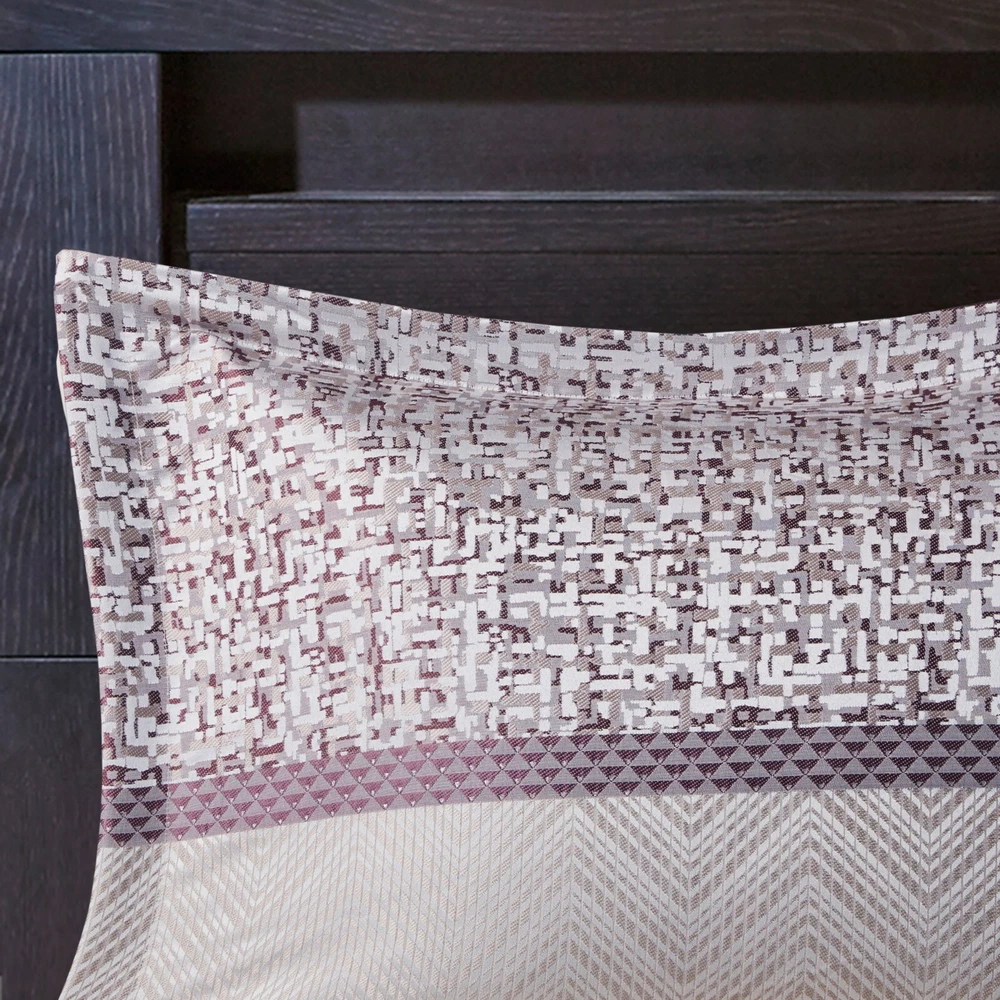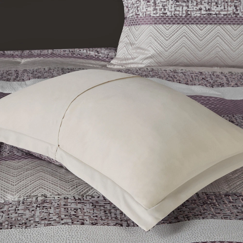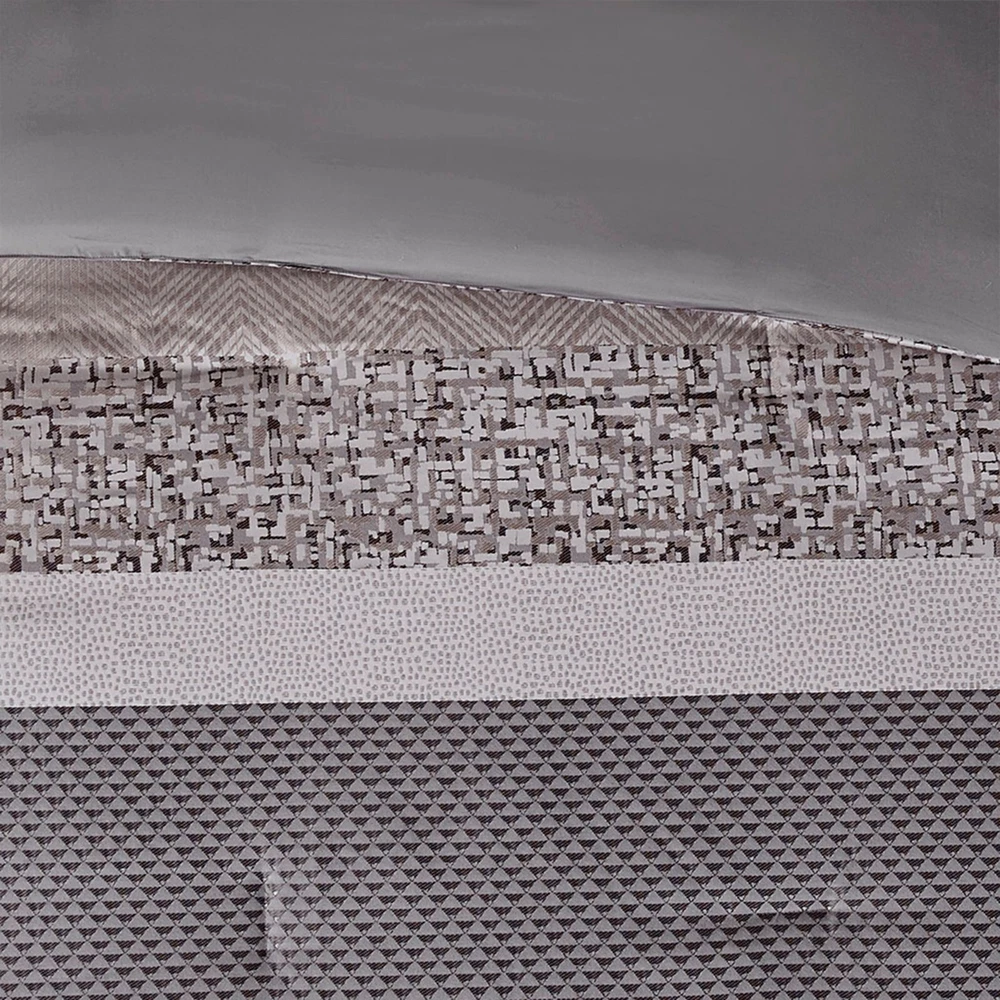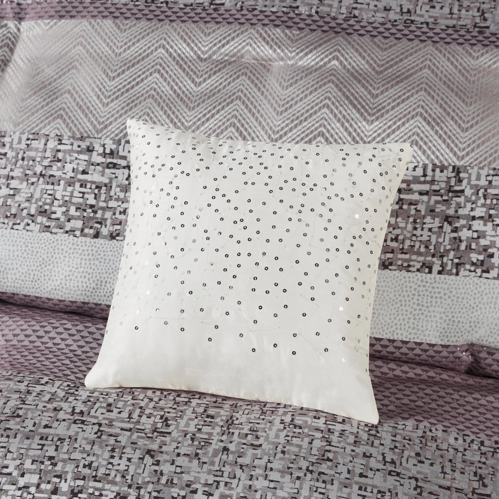 Store Categories Store Categories Bedding Comforters Decorative Pillows Duvet Covers Quilts & Coverlets Sheets Blankets & Throws Mattress Pads Pillows Home Decor Window Treatments Wall Art Home Accents Furniture Beds Dining Seating Ottomans & Benches Accent Chairs Accent Tables Dining Tables Sofas Bath Bath Robes Shower Curtains Towels Bath Rugs Bath Accessories Apparel Pajama Sets Nightgowns Rugs Rugs & Carpets Lighting Lamp Pendant Other Product Overview Details DESCRIPTION Give your bedroom a new luxurious look with the Madison Park Rhapsody 7 Piece Jacquard Comforter Set. This jacquard comforter features a navy and grey stripe design of several different motifs on the face with a solid grey reverse, for a chic transitional look. The 2 matching shams complement the design of the comforter to complete this glam comforter set. Also included is a solid navy bed skirt and 3 decorative pillows with embroidery and pleated details provide the finishing touches. Machine washable for easy care, this jacquard comforter set brings a sophisticated update to your bedroom decor. Items in the set may come in a rolled or compressed packaging, which will need to be fluffed up or steam ironed before use to remove wrinkles. FEATURES • Luxurious and transitional style jacquard 7 piece comforter set • Polyester jacquard and stripe design on top of comforter • Embroidery and pleated details on decorative pillows • Set includes comforter, 2 matching shams, 3 decorative pillows and 1 bed skirt • Machine washable and steam iron for wrinkle removal • Items in this set may come in rolled or compressed packaging and will need to be fluffed up MATERIAL Poly jacqaurd, soft microfiber solid reverse comforter and shams, 8oz/sq yard polyester filling, polyester bedskirt and pillows Available Sizes: Queen Comforter Set includes: 1 Comforter: 90"W x 90"L 2 Standard Shams: 20"W x 26"L + 1.5"D 1 Bed Skirt: 60"W x 80"L + 15"D 1 Decorative Pillow: 16"W x 16"L 1 Decorative Pillow: 12"W x 18"L 1 Decorative Pillow: 18"W x 18"L King Comforter Set includes: 1 Comforter: 104"W x 92"L 2 King Shams: 20"W x 36"L + 1.5"D 1 Bed Skirt: 78"W x 80"L + 15"D 1 Decorative Pillow: 16"W x 16"L 1 Decorative Pillow: 12"W x 18"L 1 Decorative Pillow: 18"W x 18"L California King Comforter Set includes: 1 Comforter: 104"W x 92"L 2 King Shams: 20"W x 36"L + 1.5"D 1 Bed Skirt: 72"W x 84"L + 15"D 1 Decorative Pillow: 16"W x 16"L 1 Decorative Pillow: 12"W x 18"L 1 Decorative Pillow: 18"W x 18"L Bedding Comforters Decorative Pillows Duvet Covers Quilts & Coverlets Sheets Blankets & Throws Mattress Pads Pillows Home Decor Window Treatments Wall Art Home Accents Furniture Beds Dining Seating Ottomans & Benches Accent Chairs Accent Tables Dining Tables Sofas Bath Bath Robes Shower Curtains Towels Bath Rugs Bath Accessories Rugs Rugs & Carpets Lighting Lamp Pendant Product Overview Product Details DESCRIPTION Give your bedroom a new luxurious look with the Madison Park Rhapsody 7 Piece Jacquard Comforter Set. This jacquard comforter features a navy and grey stripe design of several different motifs on the face with a solid grey reverse, for a chic transitional look. The 2 matching shams complement the design of the comforter to complete this glam comforter set. Also included is a solid navy bed skirt and 3 decorative pillows with embroidery and pleated details provide the finishing touches. Machine washable for easy care, this jacquard comforter set brings a sophisticated update to your bedroom decor. Items in the set may come in a rolled or compressed packaging, which will need to be fluffed up or steam ironed before use to remove wrinkles. FEATURES • Luxurious and transitional style jacquard 7 piece comforter set • Polyester jacquard and stripe design on top of comforter • Embroidery and pleated details on decorative pillows • Set includes comforter, 2 matching shams, 3 decorative pillows and 1 bed skirt • Machine washable and steam iron for wrinkle removal • Items in this set may come in rolled or compressed packaging and will need to be fluffed up MATERIAL Poly jacqaurd, soft microfiber solid reverse comforter and shams, 8oz/sq yard polyester filling, polyester bedskirt and pillows Available Sizes: Queen Comforter Set includes: 1 Comforter: 90"W x 90"L 2 Standard Shams: 20"W x 26"L + 1.5"D 1 Bed Skirt: 60"W x 80"L + 15"D 1 Decorative Pillow: 16"W x 16"L 1 Decorative Pillow: 12"W x 18"L 1 Decorative Pillow: 18"W x 18"L King Comforter Set includes: 1 Comforter: 104"W x 92"L 2 King Shams: 20"W x 36"L + 1.5"D 1 Bed Skirt: 78"W x 80"L + 15"D 1 Decorative Pillow: 16"W x 16"L 1 Decorative Pillow: 12"W x 18"L 1 Decorative Pillow: 18"W x 18"L California King Comforter Set includes: 1 Comforter: 104"W x 92"L 2 King Shams: 20"W x 36"L + 1.5"D 1 Bed Skirt: 72"W x 84"L + 15"D 1 Decorative Pillow: 16"W x 16"L 1 Decorative Pillow: 12"W x 18"L 1 Decorative Pillow: 18"W x 18"L