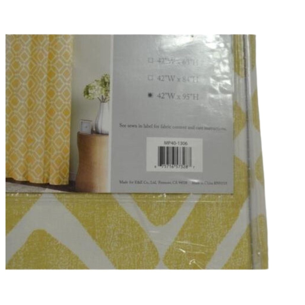 Product is new, package may be slightly damaged. Dimensions: 241cm L x 107cm W (95"x 42"). Our Madison Park Delray Diamond Window Curtain Panel revitalizes your home with modern style and colour. A printed diamond motif is featured in a pop of yellow, for the perfect touch of fresh colour to any room. Made from a Cotton twill blend, this window panel has a soft textured feel, creating a natural allure that compliments any room. Simply hang on rod pocket or back tabs for a simple finish. Fits up to a 3.2cm (1.25") diameter rod. Panel measures: 241cm x 107cm. 65% Polyester / 35% Cotton. Rod Pocket/Back Tabs. Machine Wash Cold.
