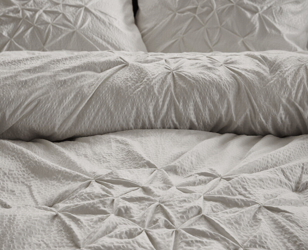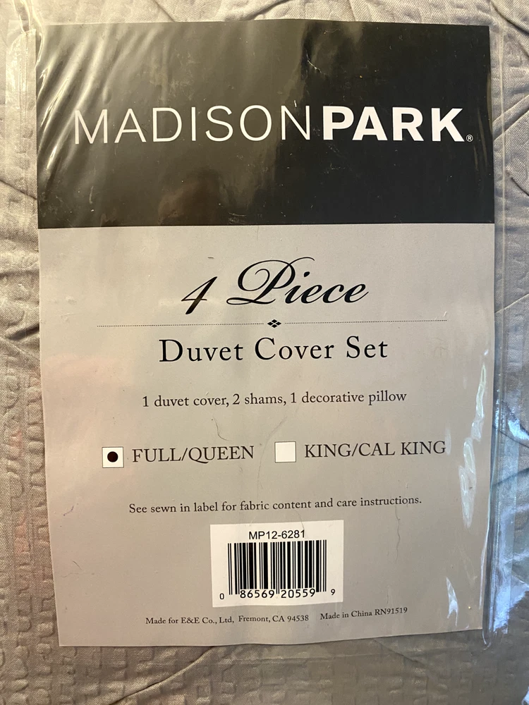 For sale - Madison Park Roselle Tufted Seersucker Duvet Cover Set - 4 pc - Grey - Full / Queen Set includes: 1 - Duvet Cover 2 - Pillow Shams 1 - Decorative Pillow 100% Polyester Thanks for looking.