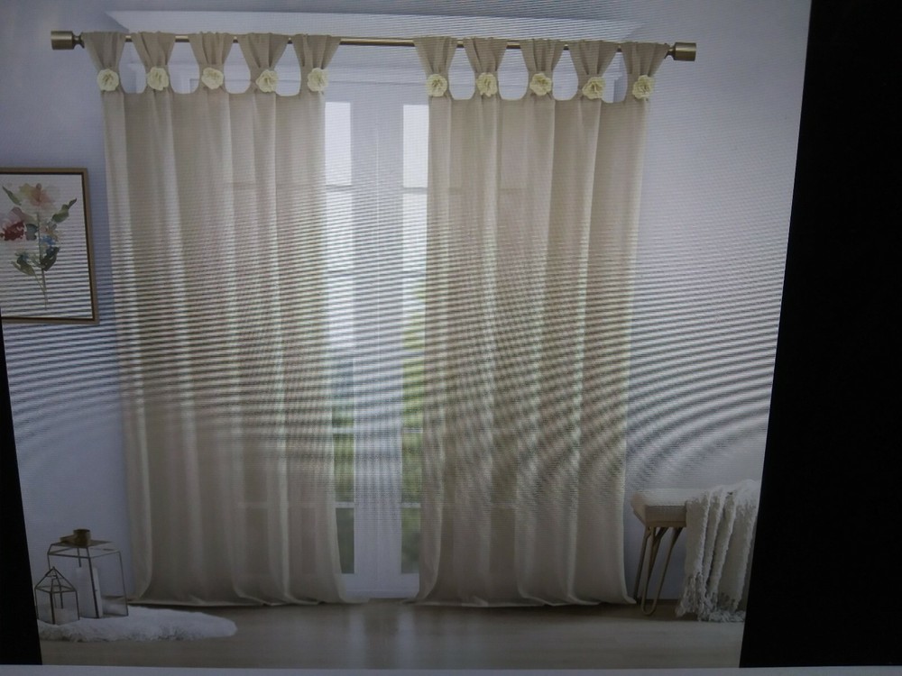 Madison Park Rosette Floral Embellished Cuff Tab Top Solid Window Panel. Condition is New. Shipped with USPS Priority Mail....