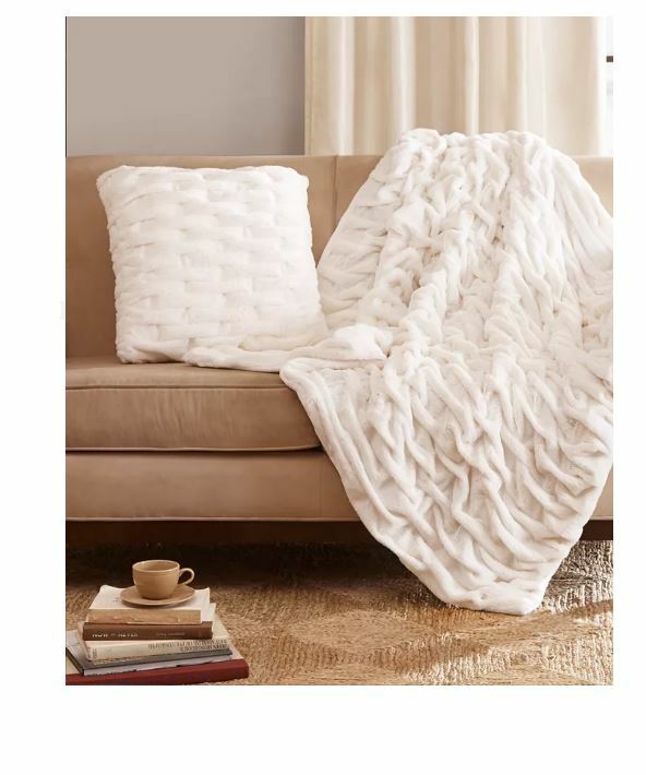 Madison Park Ruched 20" X 20" Square Faux-Fur Ivory Decorative Pillow T4102106 Add a touch of luxurious texture and contemporary sophistication to your bed or seating with the supple ruched styling and ultra soft faux fur of this stunning decorative pillow from Madison Park. Each decorative pillow sold individually Dimensions: 20" x 20" Faux-fur face: polyester 220 grams per square meter; Faux-fur reverse: polyester 180 grams per square meter; polyester fill Spot clean only. Imported
