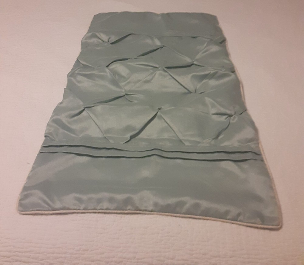 Add elegance to your bedroom decor with these Madison Park Ruched Diamond Sateen Pillow Shams. The beautiful seafoam blue and cream color combination is sure to complement any bedding style. These rectangular shams are designed for king size beds and made of high-quality polyester material that ensures durability and comfort. The slip closure type makes it easy to remove and wash them. Perfect for any bedroom, these pillow shams will give your home a luxurious touch.Approximately:19x35.5"