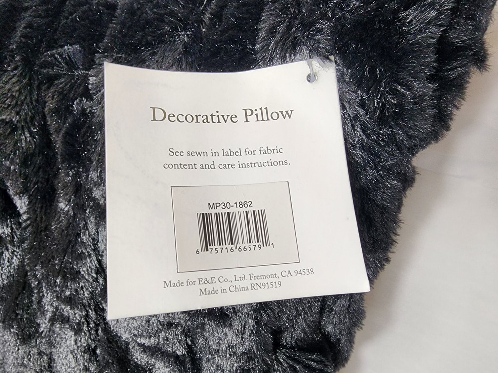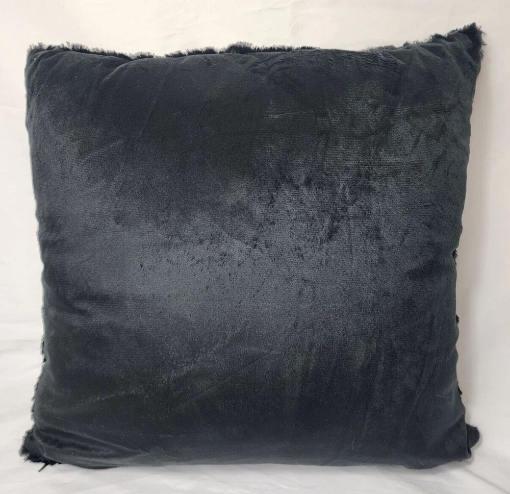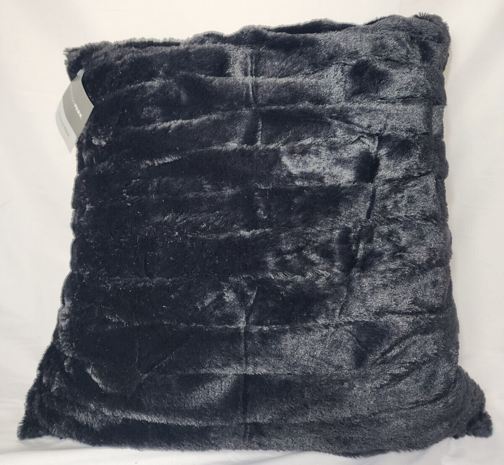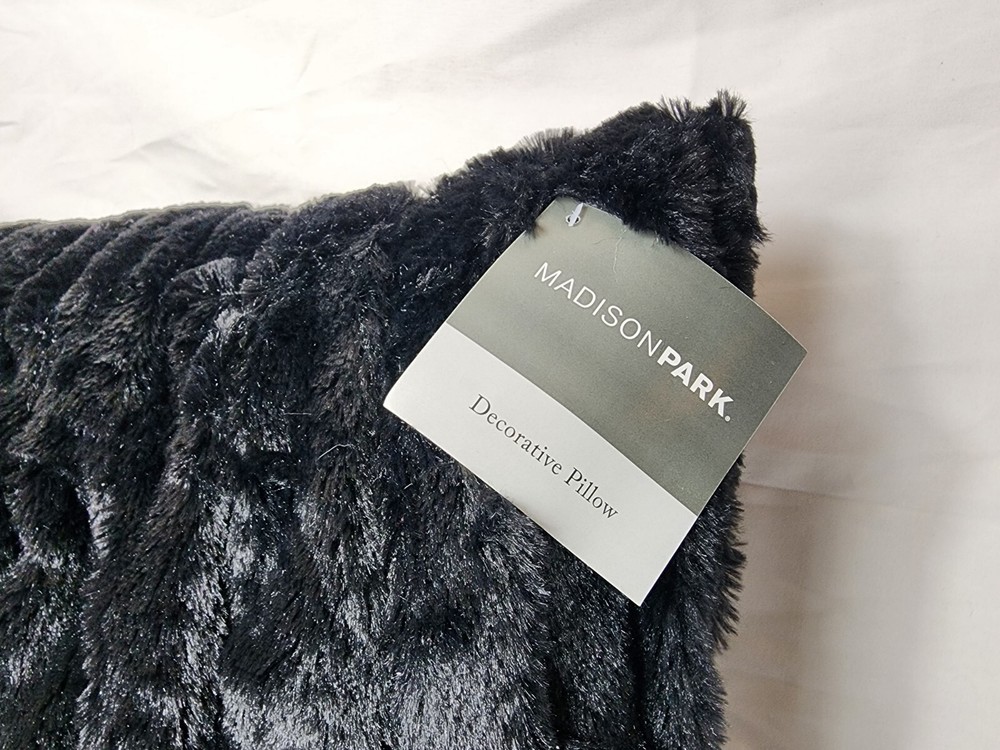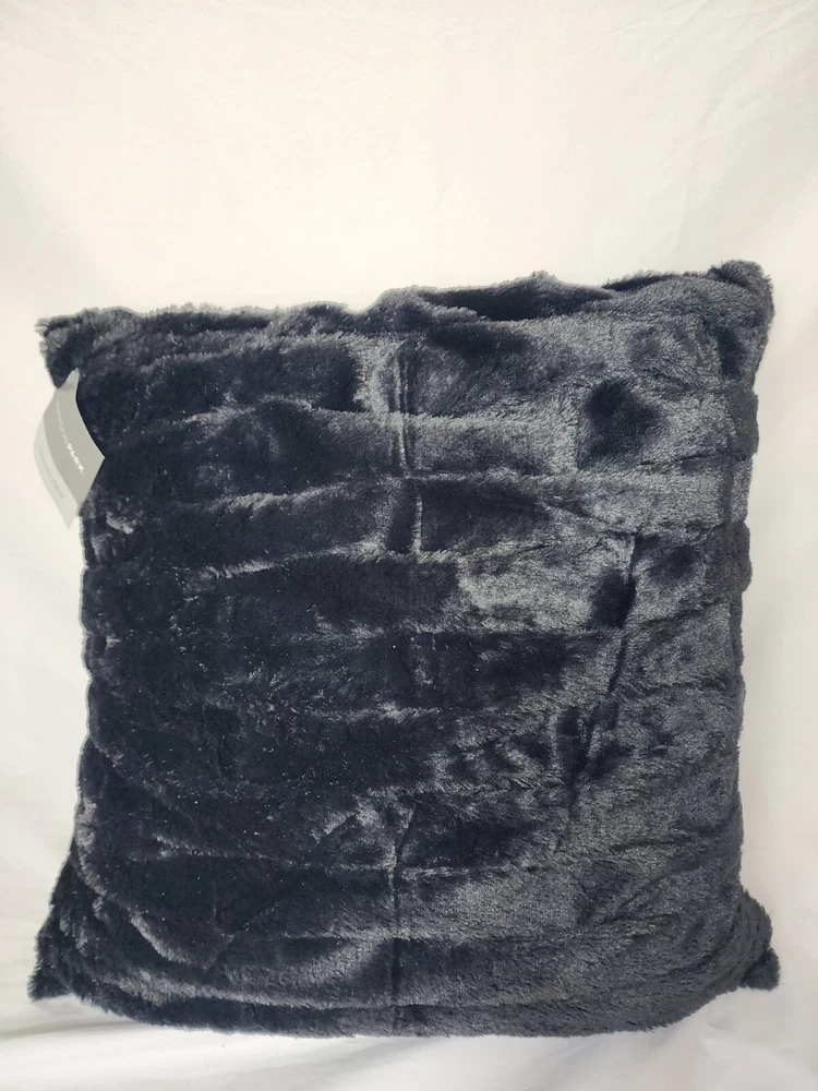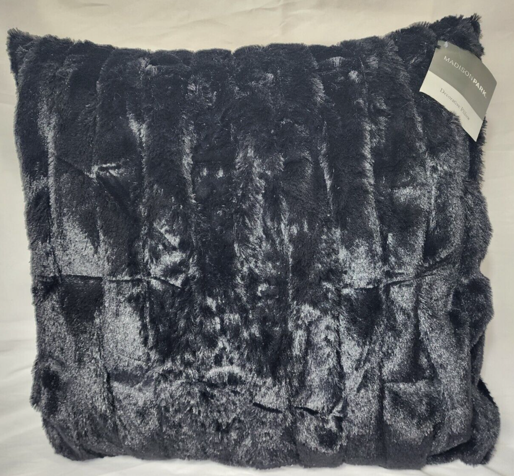 Madison Park Ruched Faux-Fur Ultra Soft Decorative Throw Pillow, Black, Square PRODUCT DESCRIPTION: Add a touch of luxurious texture and contemporary sophistication to your bed or seating with the supple ruched styling and ultra soft faux fur of this stunning decorative pillow from Madison Park. Dimensions: 20" x 20" Faux-fur face: polyester 220 grams per square meter; Faux-fur reverse: polyester 180 grams per square meter; polyester fill Spot clean only.