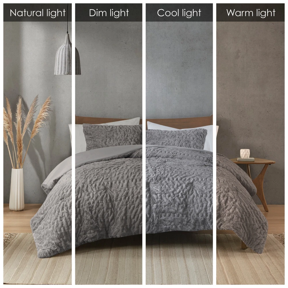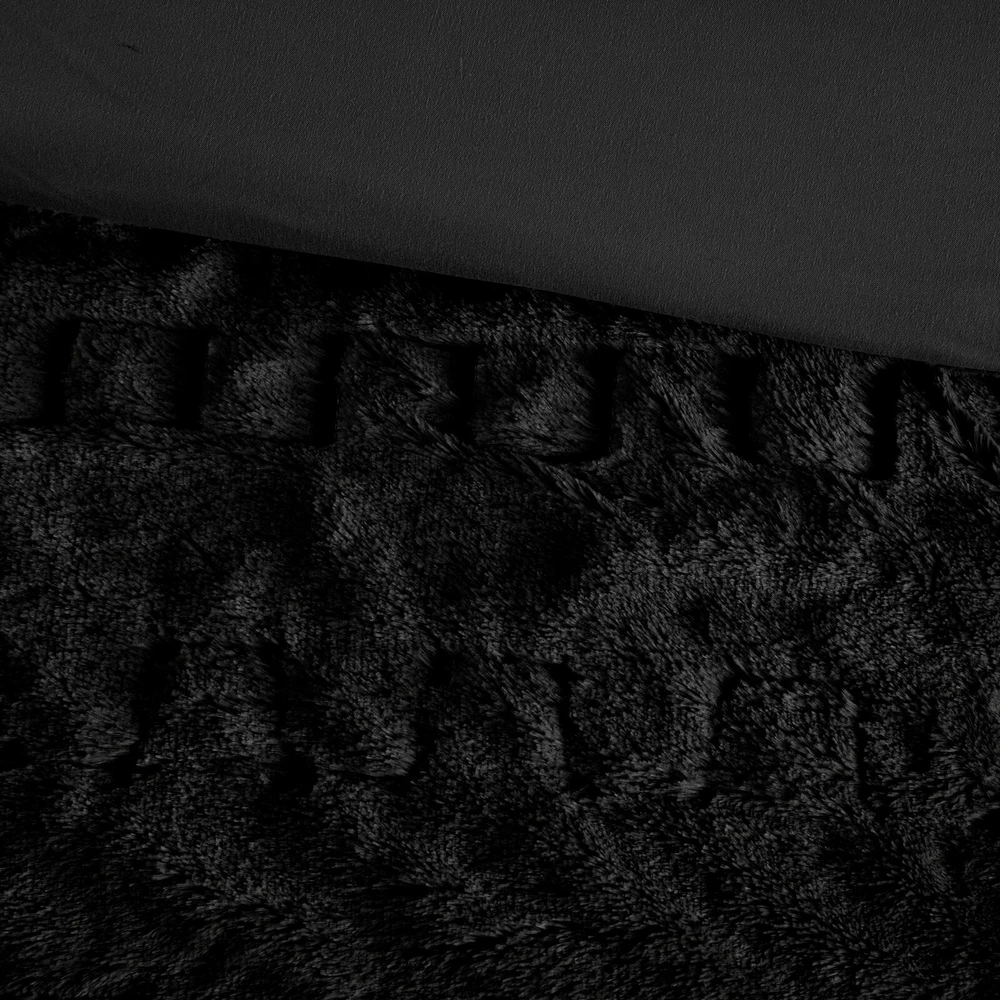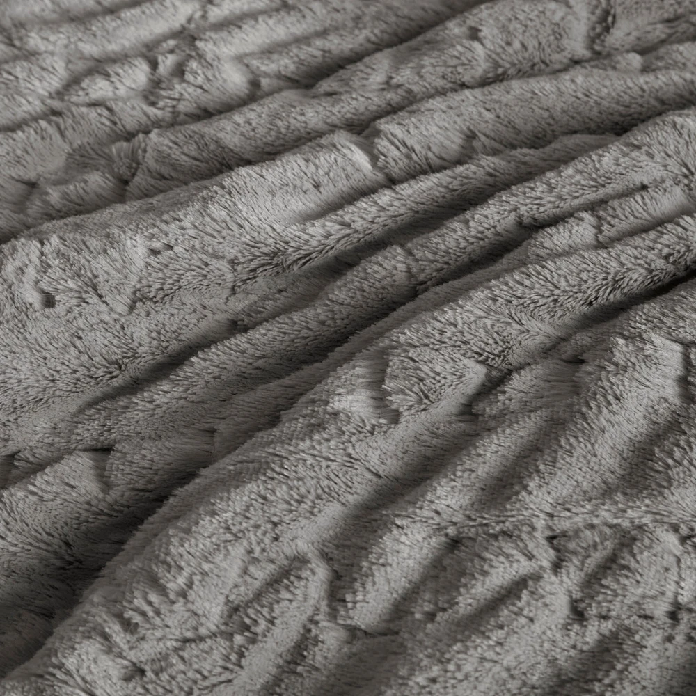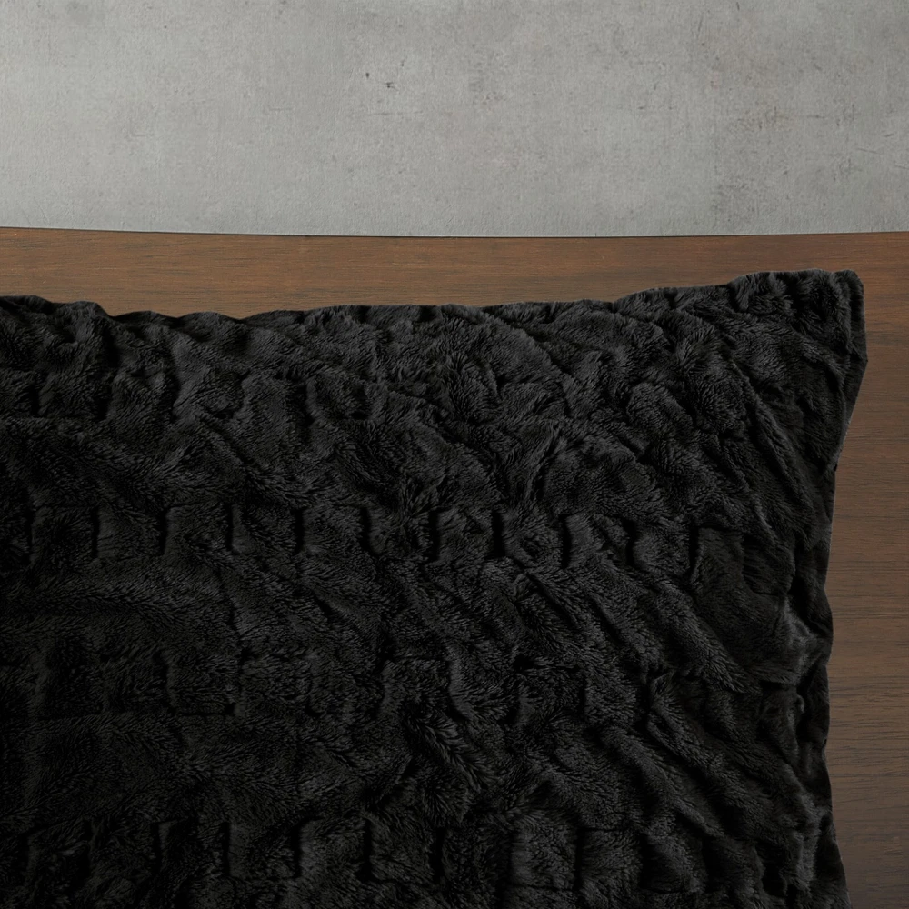 Madison Park Ruched Fur Down Alternative Comforter Set Full Queen King Size DESCRIPTION Add glamorous style and comfort to your bedroom with the Madison Park Blair Down Alt Ruched Faux Fur Comforter Set. This stylish comforter will liven up your bedroom with its unique texture and beauty. The face features a luxuriously soft faux fur with a stunning ruched design and a solid microfiber reverse. This bedding set includes 1 hypoallergenic polyester filled comforter and 2 shams to complete the look. This comforter set is also OEKO-TEX certified, meaning it does not contain any harmful substances or chemicals to ensure quality comfort and wellness. All pieces are machine washable for easy care. Items in the set may come in a rolled or compressed packaging, which will need to be fluffed up or steam ironed before use to remove wrinkles. FEATURES • Luxurious and cozy faux fur face with a microfiber reverse • Hypoallergenic down alternative filling for optimized comforter • Medium weight for all seasons • Three piece mini set includes a comforter and 2 shams • Oeko-Tex Certified, includes no harmful substances or chemicals • Machine washable. Minor shedding is expected with faux fur material and should subside after 3-4 washes • Items come in rolled packaging and will need to be fluffed upon opening MATERIAL Comforter: face: 100% Polyester ruched fur; reverse: 100% polyester microfiber; filling: 100% polyester fiber fill; Jump tack stitched, knife edge Sham: face: 100% Polyester ruched fur; reverse: 100% polyester microfiber; knife edge, overlap open on back Available Sizes: Full/Queen Comforter Set includes: 1 Comforter: 90"W x 90"L 2 Standard Shams: 20"W x 26"L King/California King Comforter Set includes: 1 Comforter: 104"W x 90"L 2 King Shams: 20"W x 36"L