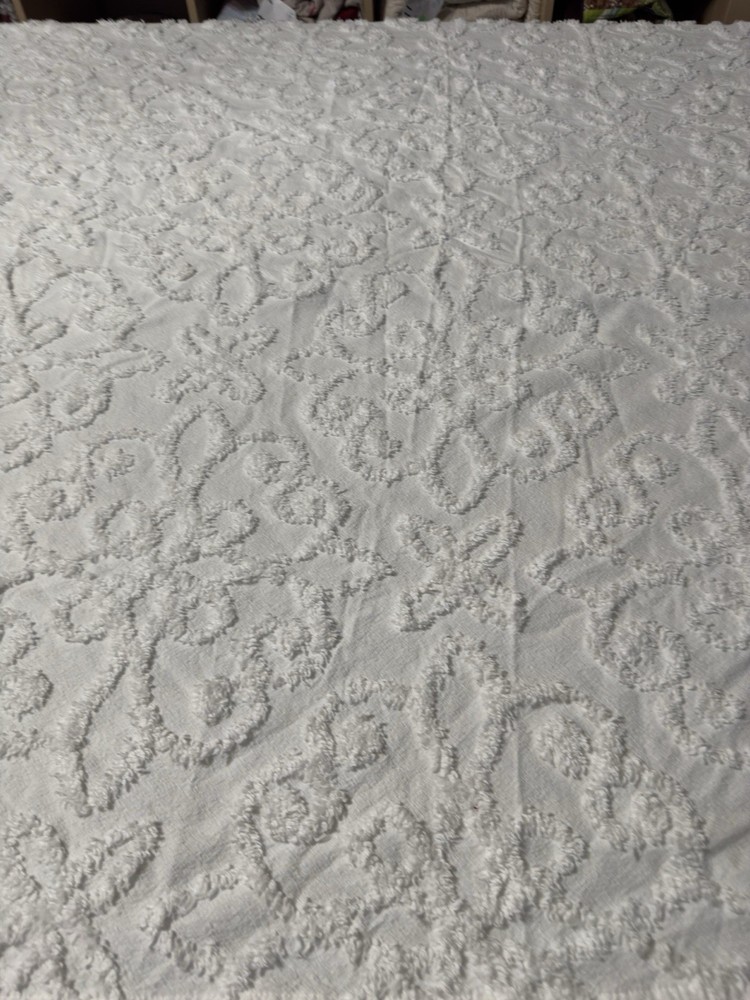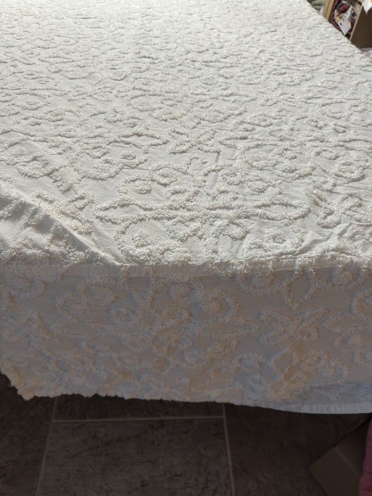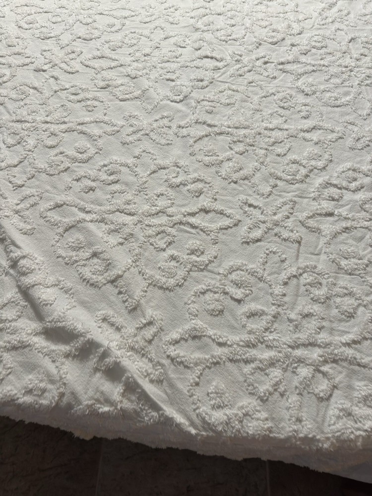 Elevate your bedroom decor with the Madison Park Sabrina White Cotton Tufted Chenille Bedspread. Designed for a Twin size day bed, this luxurious bedspread features an all-over pattern with a vintage touch, bringing a timeless elegance to any room. The high-quality chenille fabric offers a soft and plush feel, ensuring a comfortable and inviting atmosphere. VISIT MY STORE TO SEE ALL QUILTS LISTED vickysvintageestatesale ITEM #330 SELLER NOTES TO BUYERS: We are a husband and wife team not an amazon seller I COMBINE DOMESTIC SHIPPING WITHIN 3 DAYS. I do combined shipping on items purchased (the heaviest plus $10 for each additional Quilt) within 3 days, please email me. DON'T PAY! TILL I SEND COMBINED INFO As a reminder I have to buy the merchandise I am selling, and I have to pay fee on the total sale, merchandise.. shipping...and tax, to sell it. COLORS SHOW UP DIFFERENT ON MONITORS...CHECK THE "ITEM COLOR" UNDER ITEM SPECIFICS . Don't assume, if you need something specific then ask me, like thickness or colors. All items are used unless otherwise stated, as such they are NOT new so if you want perfect this might not be for you. Photos are a small representation of the item, please read ITEM DESCRIPTION. Not all condition ISSUES will be shown in the photos. Cutter quilts have multiple issues not all issues are shown in the pics. Please measure you bed to see if the quilt will fit. Quilts cover top mattress, mattresses come in all thickness, this effects the sizing. I SHIP THE CHEAPEST I CAN .. NO PO BOX. ....A HOME STREET ADDRESS MUST BE USED AT CHECK OUT.....I USE EBAY SHIPPING LABELS THEY CAN'T BE CHANGED ...YOUR SALE WILL BE CANCELLED. I CAN NOT HOLD PAID PURCHASES AS PER EBAY THEY MUST BE SHIPPED OUT 24 HOURS FROM PAYMENT. NON SMOKING HOME ALL QUILTS ARE USED UNLESS NOTED. $14 extra shipping charge for Alaska and Hawaii THANK YOU VERY MUCH FOR SHOPPING WITH ME.