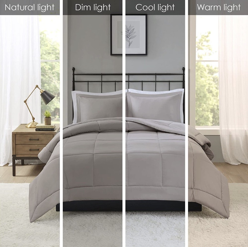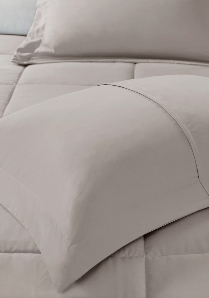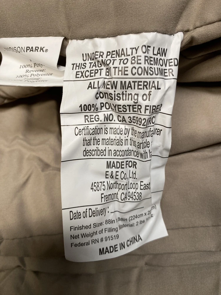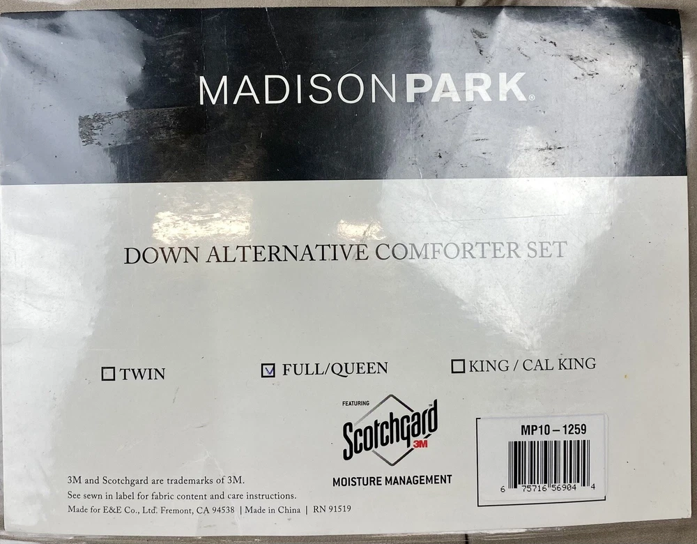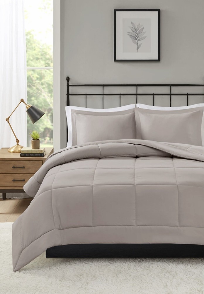 Madison Park Sarasota Microcell Down Alternative Full/Queen Comforter Mini Set. Brand new but the bag has some sticker residue on the outside, this does not affect the comforter or anything inside, still new. Update your space with the natural style of Madison Park's Sarasota Microcell Down Alternative Comforter Mini Set. This ultra-soft microcell comforter is extremely soft and presents a simple design for a casual update. Matching shams complete the bedding set. The down alternative filling provides extra warmth and comfort, while the sewn-through box-quilting prevents the fill from shifting. Available in several colors, this comforter set is perfect for sprucing up your bedroom. This bedding set is also OEKO-TEX certified(20180K091 AITEX), meaning it does not contain any harmful substances or chemicals to ensure quality comfort and wellness. Full/Queen Comforter Set Includes: Comforter: 88" W × 88" L 2 Standard Shams: 20" W x 26" L + 2" drop