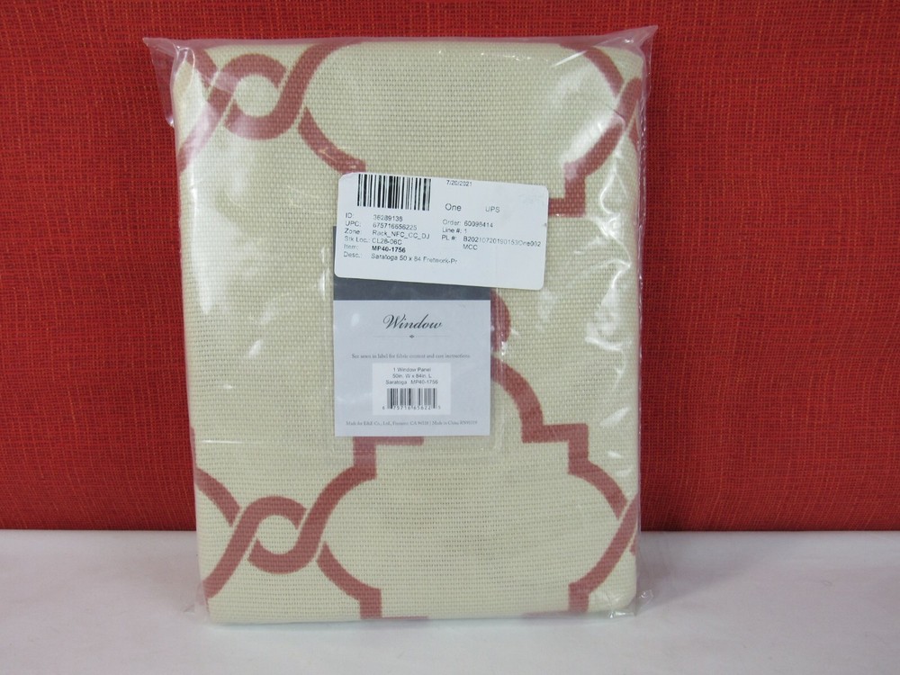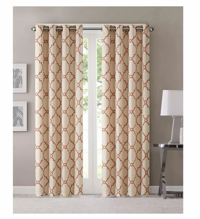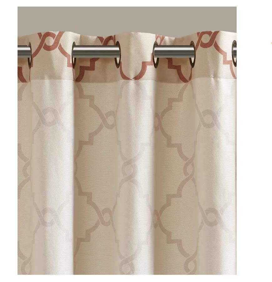 Madison Park Saratoga 50" X 84" Fretwork-Print Grommet Curtain Panel T4102776 Brighten any room's look and feel while simultaneously enhancing your privacy with this Saratoga curtain panel from Madison Park, featuring a stylishly textured basketweave ground embellished with an elegant fretwork print and an easy-to-open-and-close grommet top. Dimensions: 50" x 84" Grommet top header Fits rods up to 1.25" diameter Basketweave ground with fretwork print NOTE: photo displays two panels for a finished look, but this item contains only 1 panel. Each panel is sold individually. Polyester/cotton/rayon Machine washable Imported