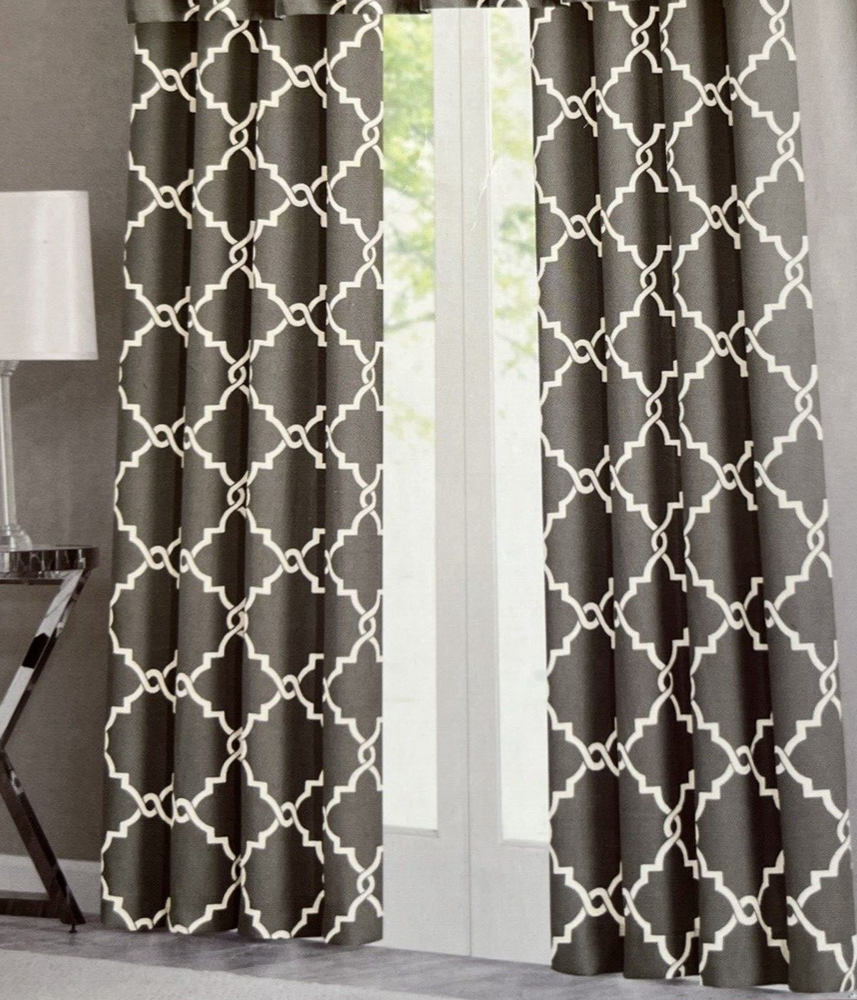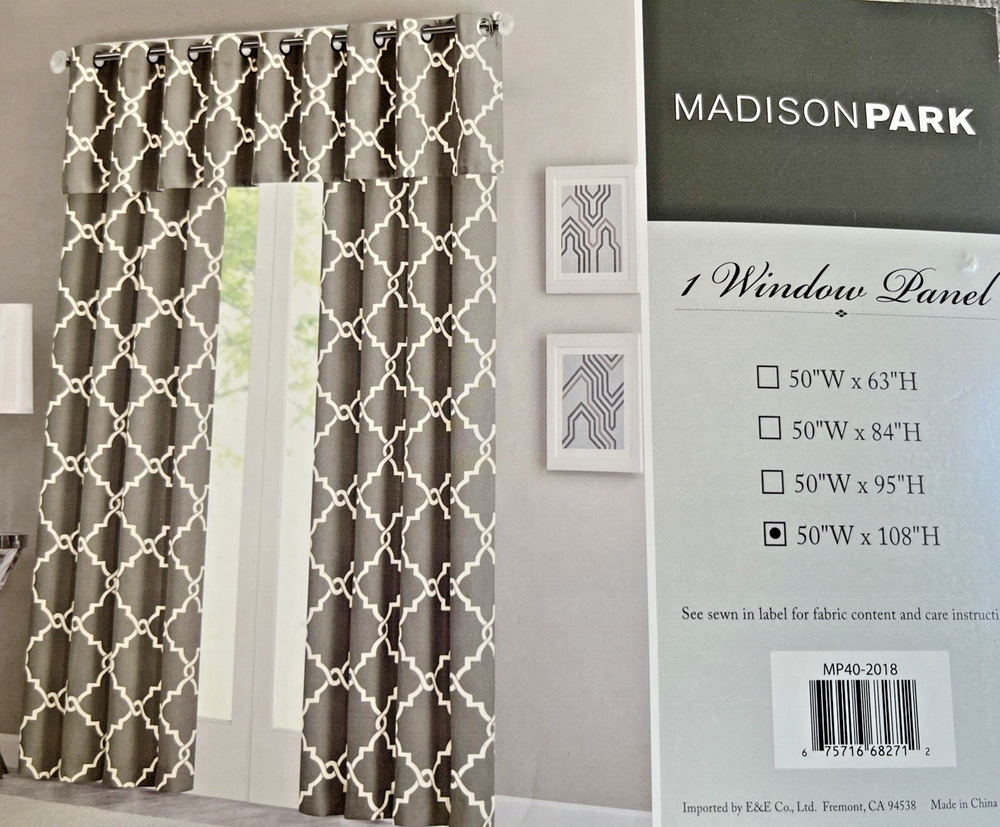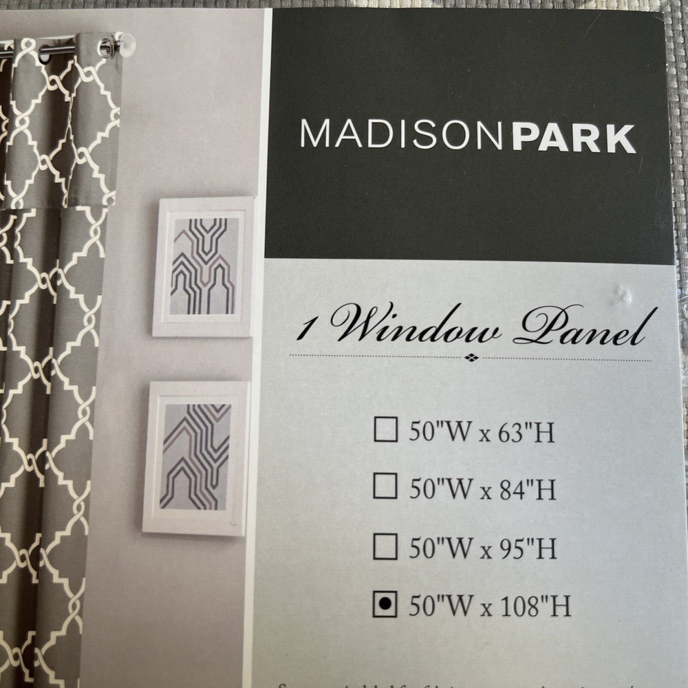 Enhance the look of any room with this modern Madison Park Saratoga panel. The gray frettwork design adds a touch of elegance to your space. The panel is made of high-quality polyester material and features grommets for easy installation and handling. Measuring 50 inches in width and 108 inches in length, this panel is perfect for any window treatment. This opaque panel is machine washable and easy to maintain. The geometric pattern adds a unique touch to your décor. Whether you want to drape it over your bed or hang it in your living room, this Madison Park Saratoga panel is a perfect fit.