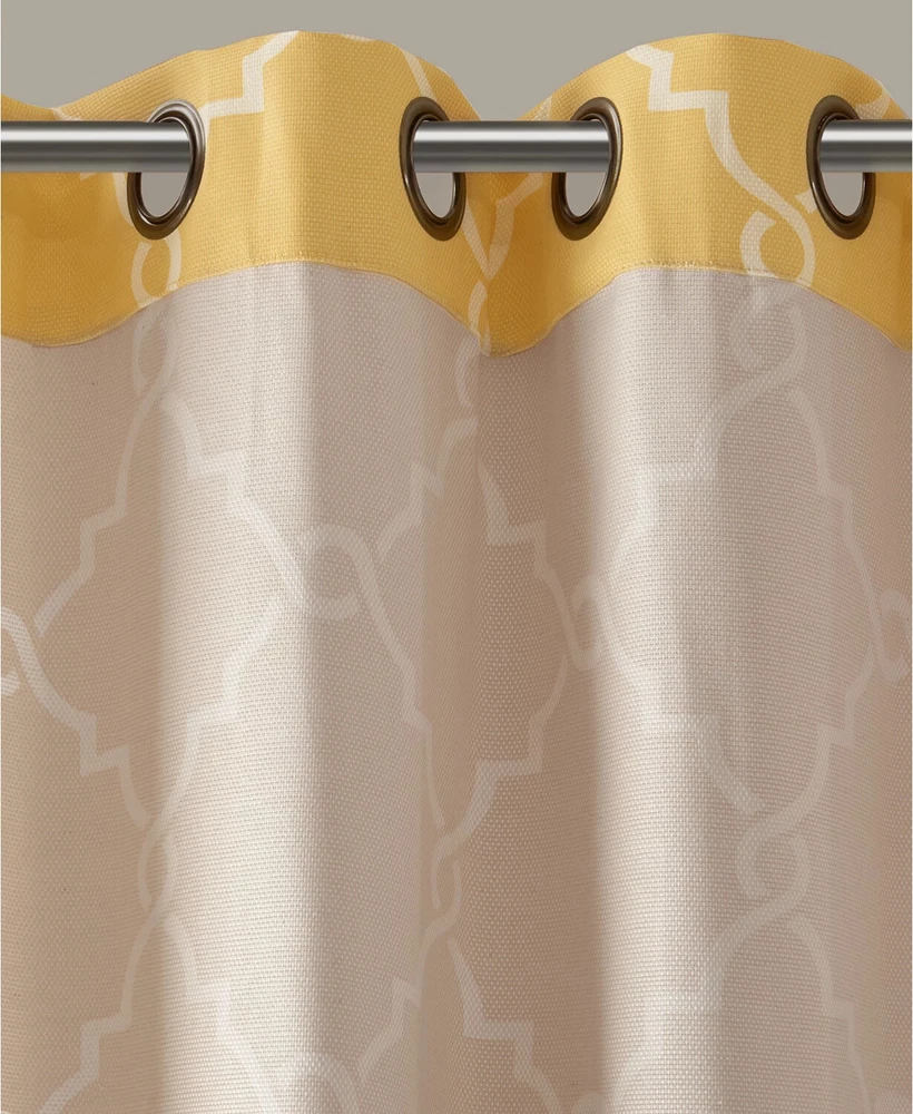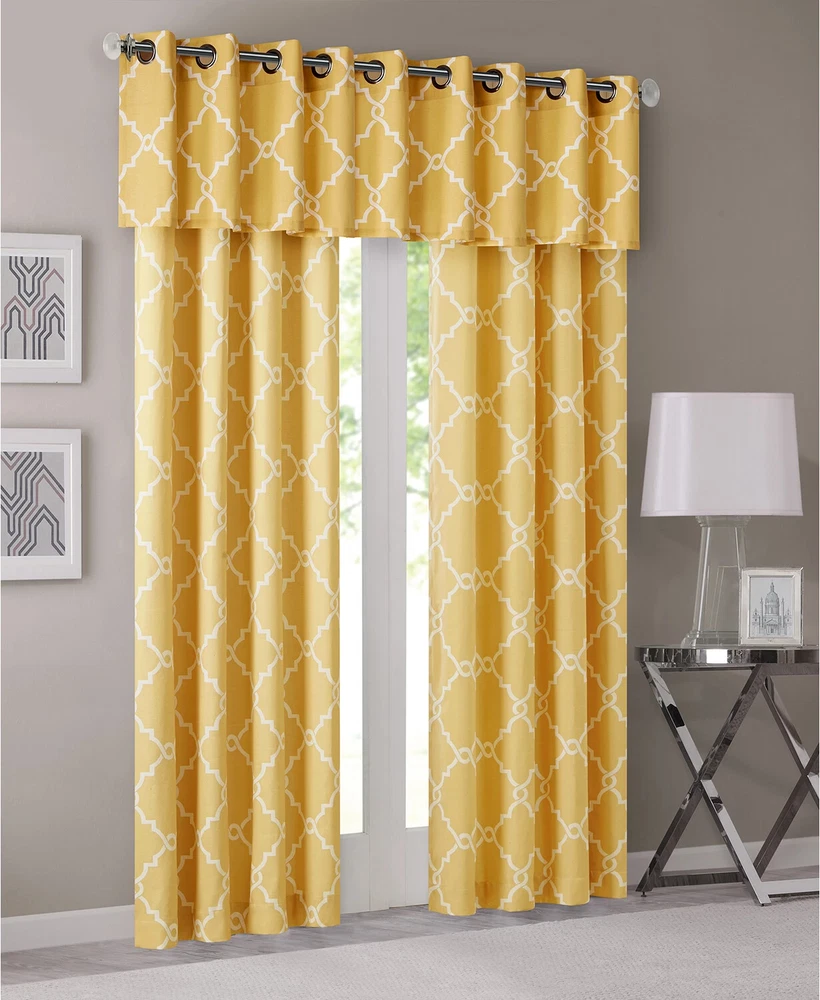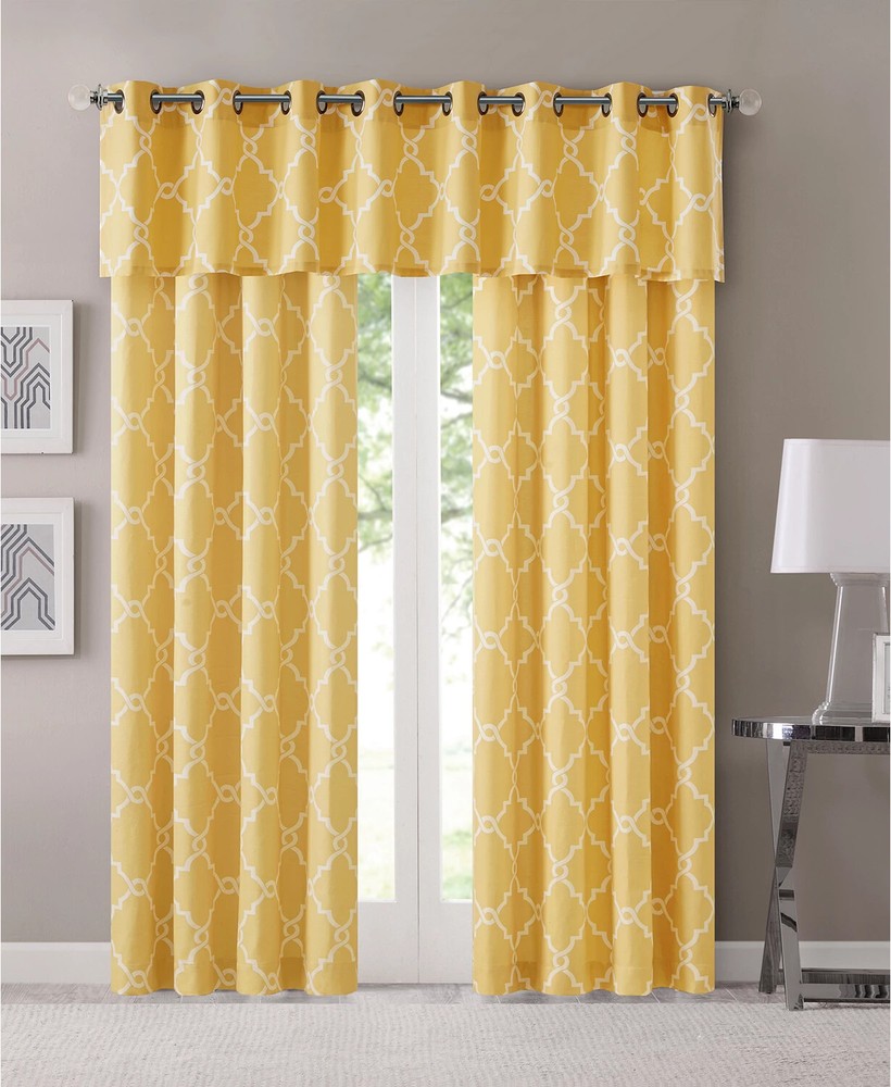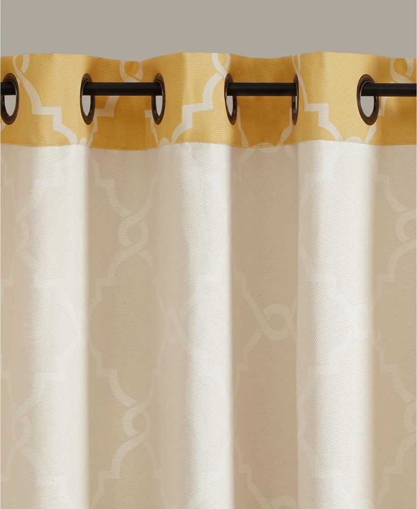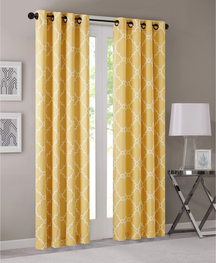 Color: Yellow / White Size: 50" x 63" Brighten any room's look and feel while simultaneously enhancing your privacy with this Saratoga curtain panel from Madison Park, featuring a stylishly textured basketweave ground embellished with an elegant fretwork print and an easy-to-open-and-close grommet top. Dimensions: 50" x 63" Grommet top header Fits rods up to 1.25" diameter Basketweave ground with fretwork print NOTE: photo displays two panels for a finished look, but this item contains only 1 panel. Each panel is sold individually. Body: polyester/cotton/rayon Machine washable Imported