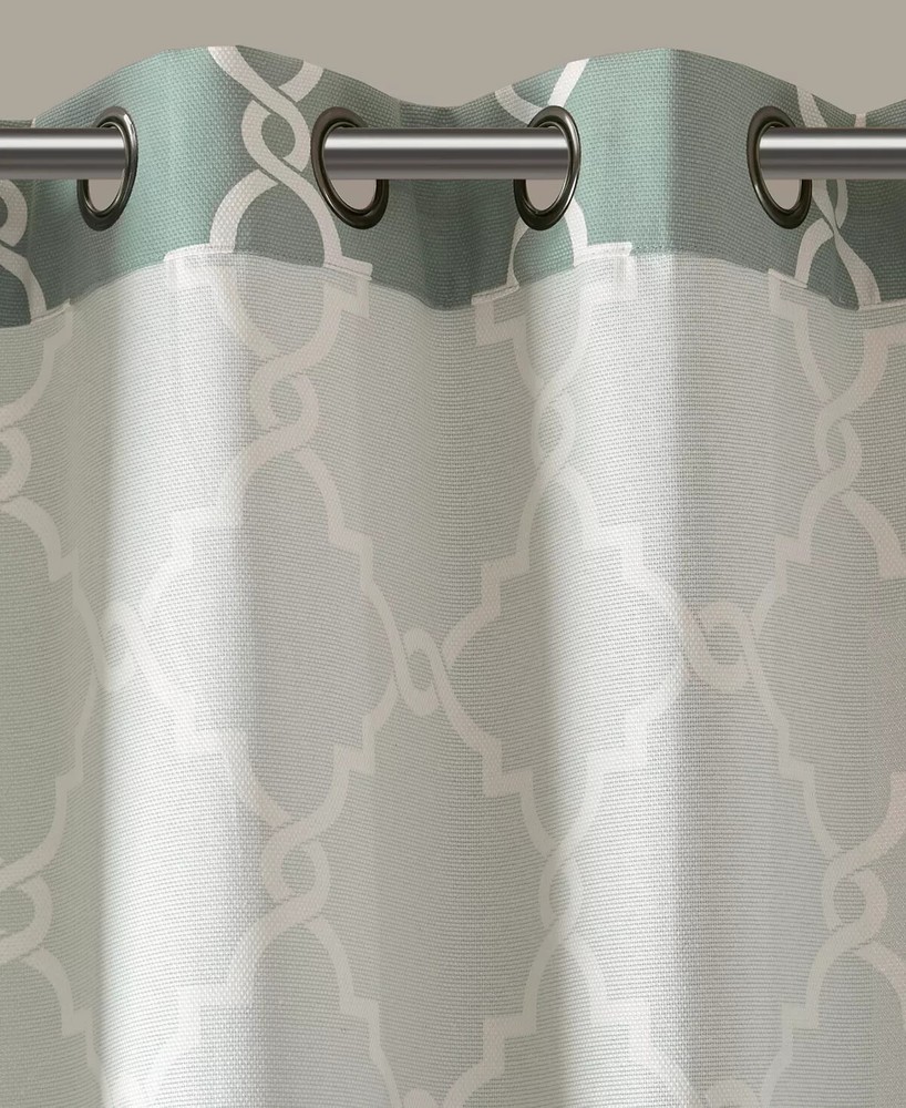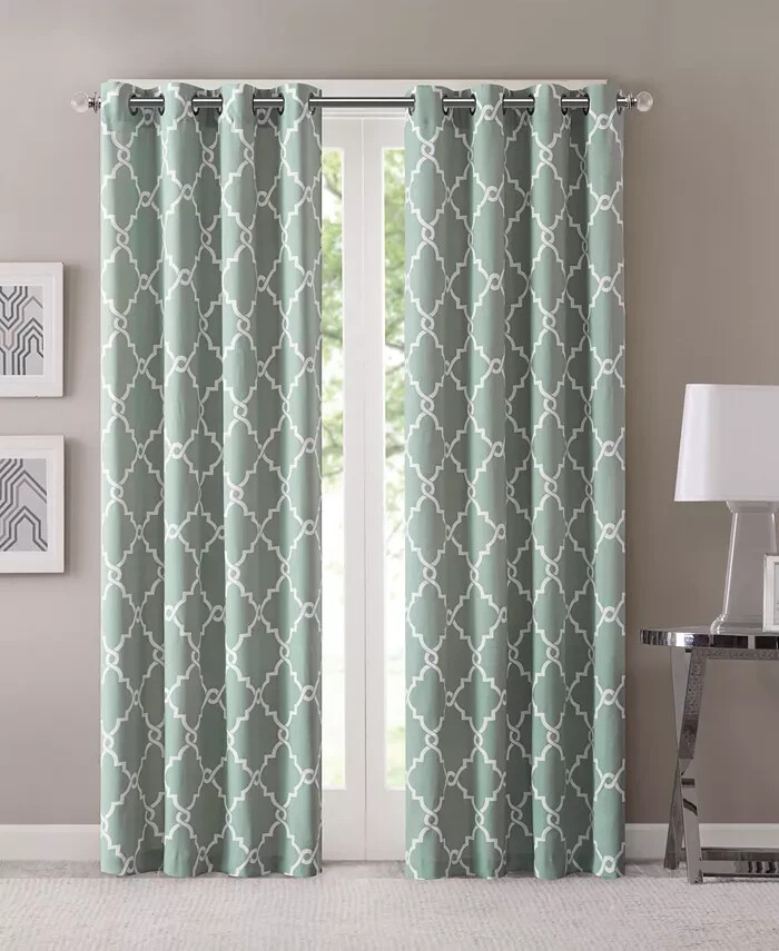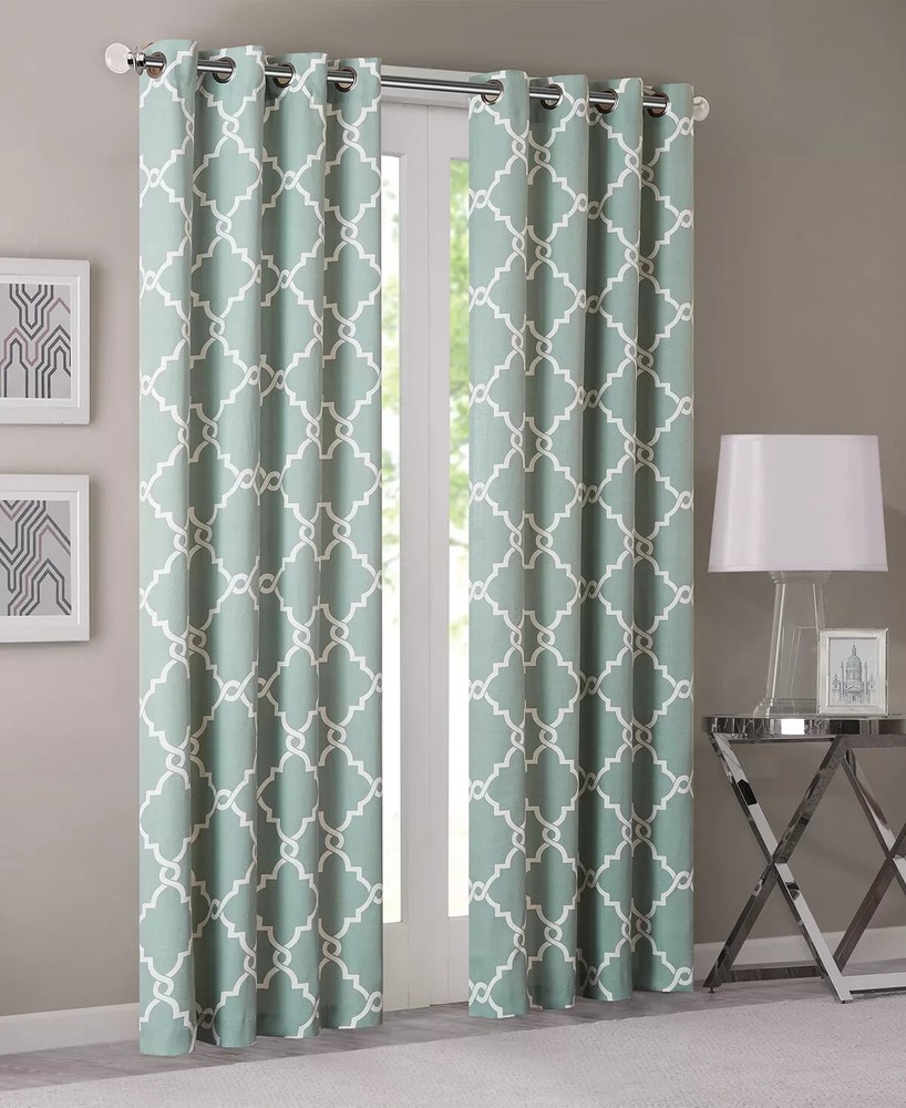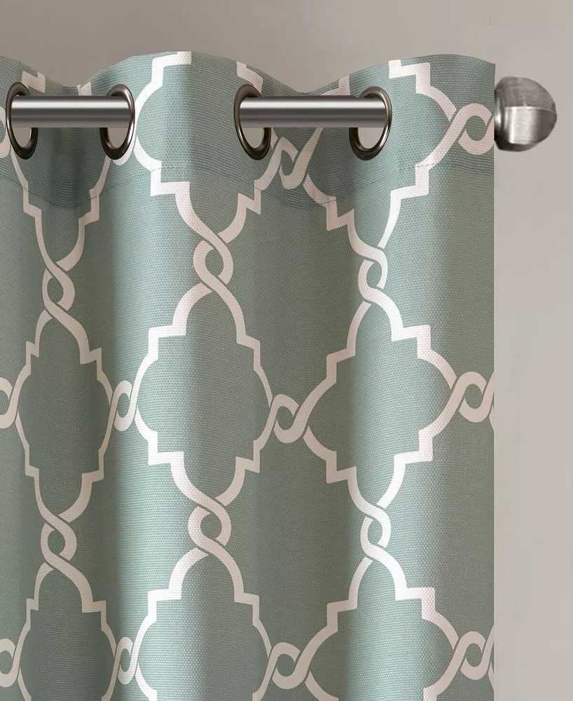 Color: Seafoam Size: 50" x 95" Brighten any room's look and feel while simultaneously enhancing your privacy with this Saratoga curtain panel from Madison Park, featuring a stylishly textured basketweave ground embellished with an elegant fretwork print and an easy-to-open-and-close grommet top. Dimensions: 50" x 95" Grommet top header Fits rods up to 1.25" diameter Basketweave ground with fretwork print NOTE: photo displays two panels for a finished look, but this item contains only 1 panel. Each panel is sold individually. Polyester/rayon/cotton Machine washable Imported