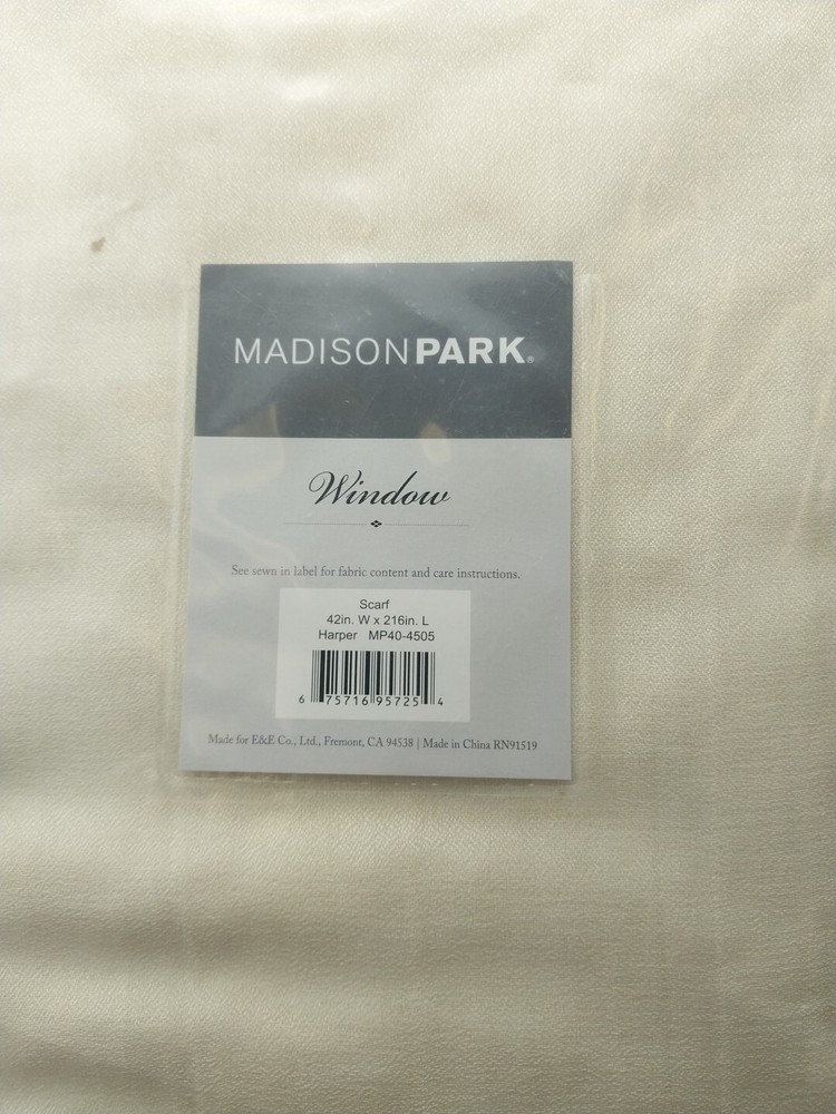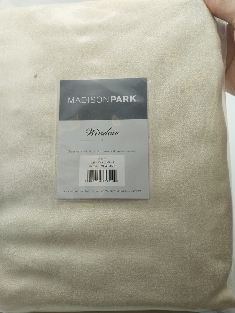 Add a touch of modern elegance to any room with this beautiful Madison Park scarf valance in a creamy color. Measuring 42 inches in width and 216 inches in length, this sheer polyester material is perfect for indoor use and can be easily attached to any wall. The solid pattern and transparent design make it a versatile addition to any home décor, while the brand name adds a touch of quality. Whether you're looking to dress up a window or add a stylish accent to your room, this scarf valance is the perfect choice.