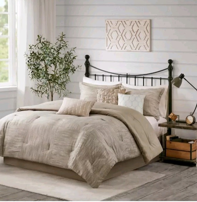 Madison Park Seer suckle Weave Design 7 Piece Comforter Set Size Queen Taupe...