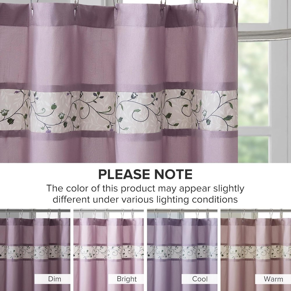 Madison Park Serene Flora Fabric 72"W x 72"L (Pack of 1), Purple Add an elegant addition to your bathroom with the Madison Park Serene shower curtain. Its rich red and delicate embroidery are the perfect combination. Made from polyester, this shower curtain is machine washable for easy care. Various sizes are available to fit any bathroom space. π Product Features β¨ 100% Polyester β¨ Imported β¨ COLOR AND DESIGN β 1 piece shower curtain; soft and pairs with delicate floral embroidery for the perfect combination, add an elegant addition to your bathroom. Complete the look with coordinating bedding available and sold separately. β¨ MATERIAL AND FEATURES βPolyester faux silk, pintucked detailing. Measures 72 (W) x 72 (L) inches long and wide. Simple hook ready design to hang on the rod with the liners. β¨ RECOMMENDED - Liner is recommended. Pretty easy to hang on the hooks of the shower rod. It is great for all season. No vinyl smell. Great look to make the bathtub discreet. Drapes on the outside of the tub β¨ EASY CARE - Machine washable - machine wash cold, gentle cycle, and separately. do not bleach. tumble dry low, remove promptly. do not iron. if there is no free movement in the washer or dryer, use large capacity commercial washer/dryer. β¨ SATISFACTION - We offer 100% satisfaction for our elegant designer microfiber fabric bath accessories sets with 30-day free return for our unique bathroom shower curtains set. π¦ Shipping: Shipping is complimentary within the lower 48 US States. π π« We Do Not Ship to PO/APO Boxes, HI or Alaska π We Do Not Ship Outside of the Continental US β± All items ship within 24-72 hours of Payment π For large items that require Freight shipping, a valid phone number is required to call and schedule your delivery π Terms of Sale and Feedback: β Feedback is extremely important to us and eBay π If you are satisfied with our transaction, please take a moment to leave Positive Feedback. YOUR Satisfaction is our #1 Priority! β If there are any issues, PLEASE contact us BEFORE leaving a neutral or negative rating so that we may resolve any concerns. π We PROMISE we can make you happy if you give us a fair chance. π Returns / Concerns: π All items qualify for returns within 14 - 30 days of receipt. Buyer is responsible for return shipping on any item that is not damaged. π Please be sure this is an item you want before making your purchase. Customer Satisfaction is our TOP priority! π¦ All items are IN STOCK at time of listing. π Inventory on eBay changes constantly and it is impossible to maintain a perfectly accurate count of all items. πβοΈ Please do not penalize us if we have to issue you a refund! π Thank You For Your Business!