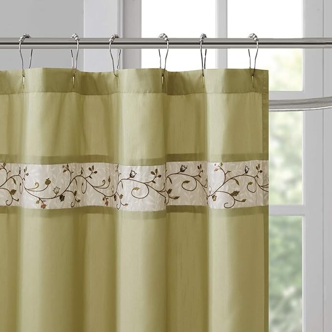 Madison Park Serene Shower Curtain 72x72 Green Floral Faux Silk Embroidered BED1 Description Madison Park Serene Shower Curtain 72x72 Green Floral Faux Silk Embroidered BED1 . Product Detail • Brand : Madison Park • Type: Shower Curtain • Department : Adults • Color: Green
