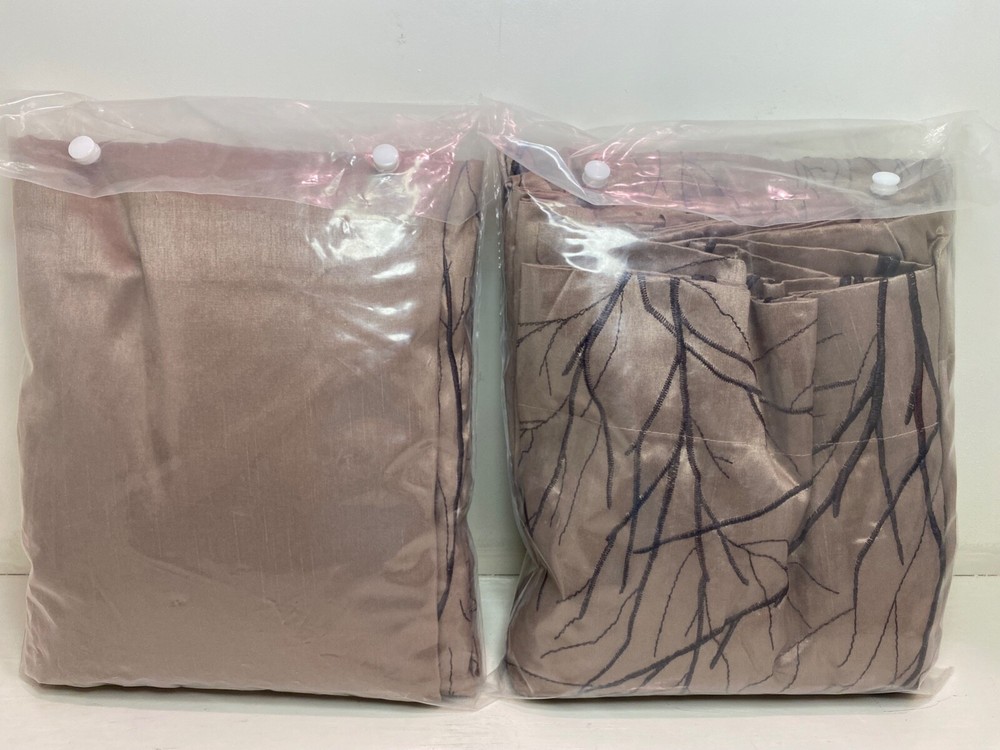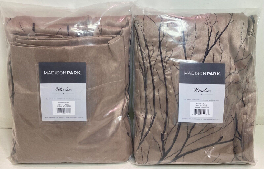New Madison Park ~Set of 2 panels~ Andora Rod Pocket Curtain Panels in Tan color with small Branches at bottom half nice for a cabin or country home 50" x 84" each panel check out our other great deals