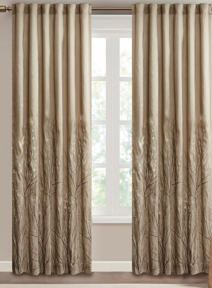 New Madison Park ~Set of 2 panels~ Andora Rod Pocket Curtain Panels in Tan color with small Branches at bottom half nice for a cabin or country home 50" x 84" each panel check out our other great deal...